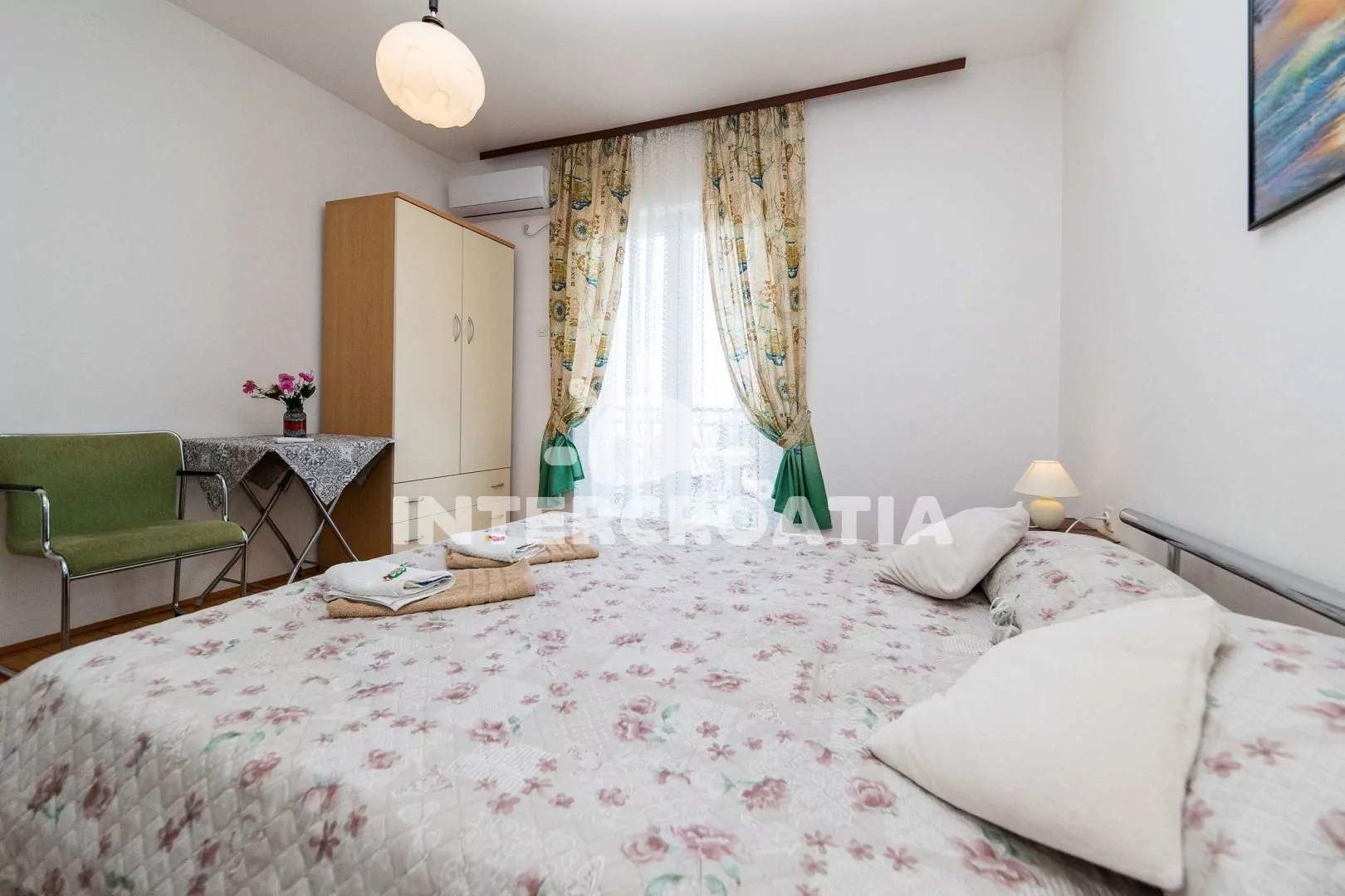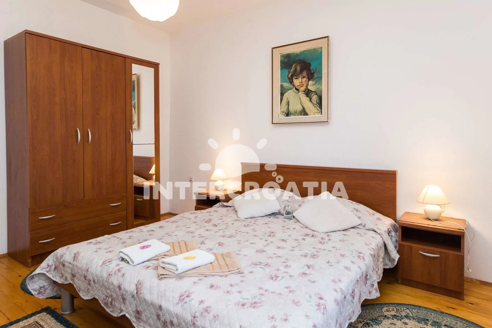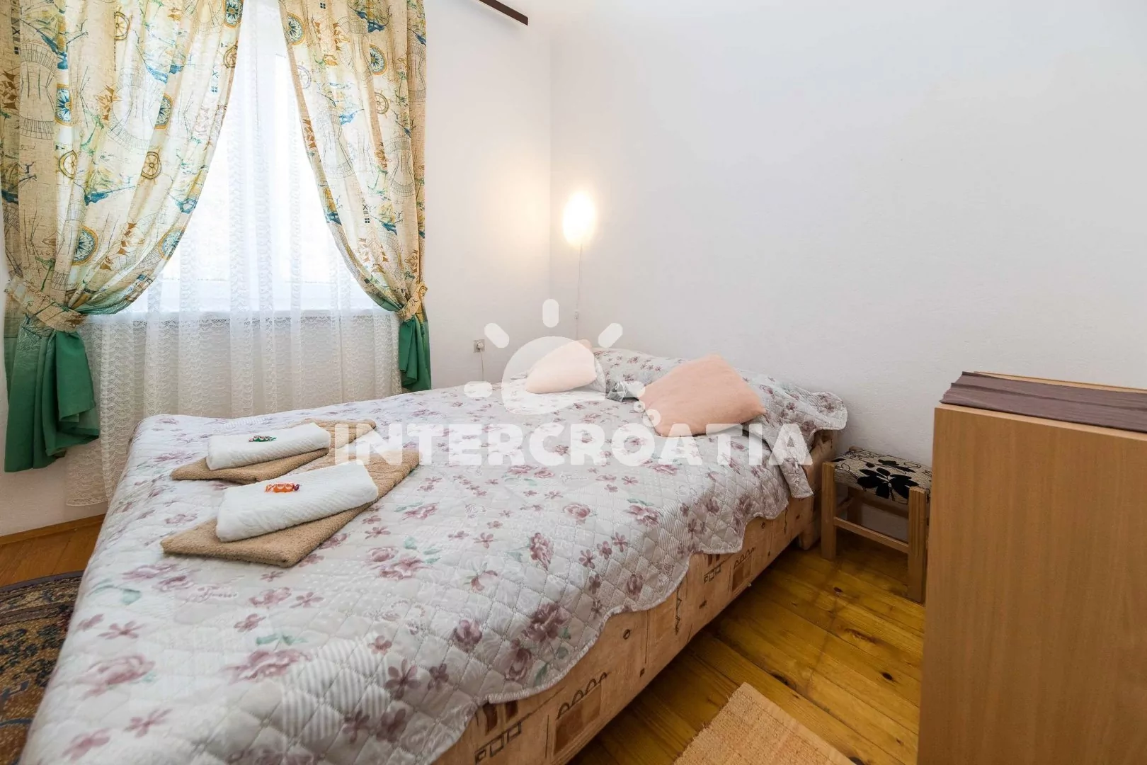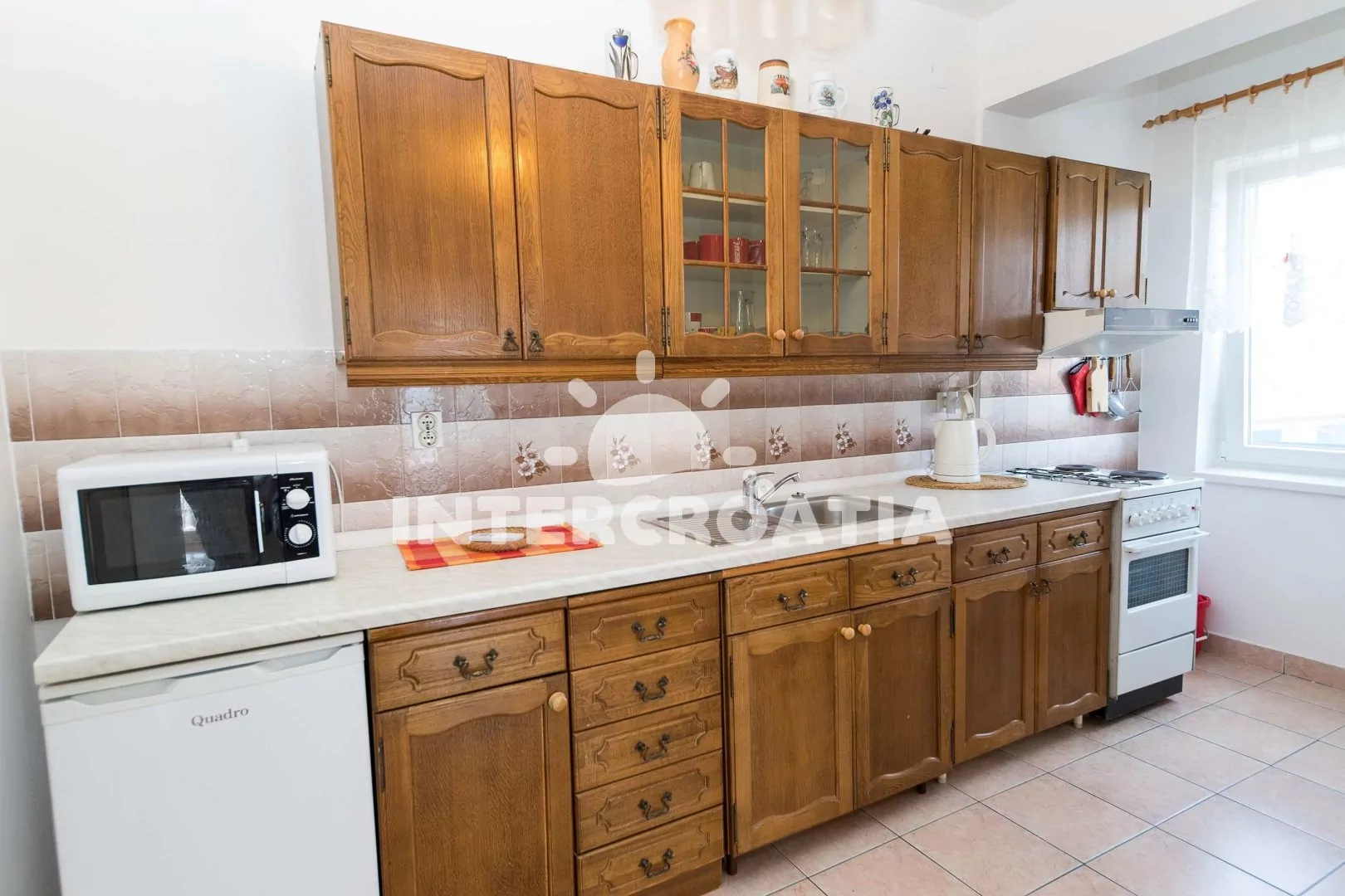 Apartmán (80 m2) s balkonem, posezením a výhledem na moře se nachází v 2. patře domu a je vhodný pro 6 až 8 osob. Obývací pokoj je spojený s kuchyní. Kuchyňská linka je vybavena sporákem s troubou,…