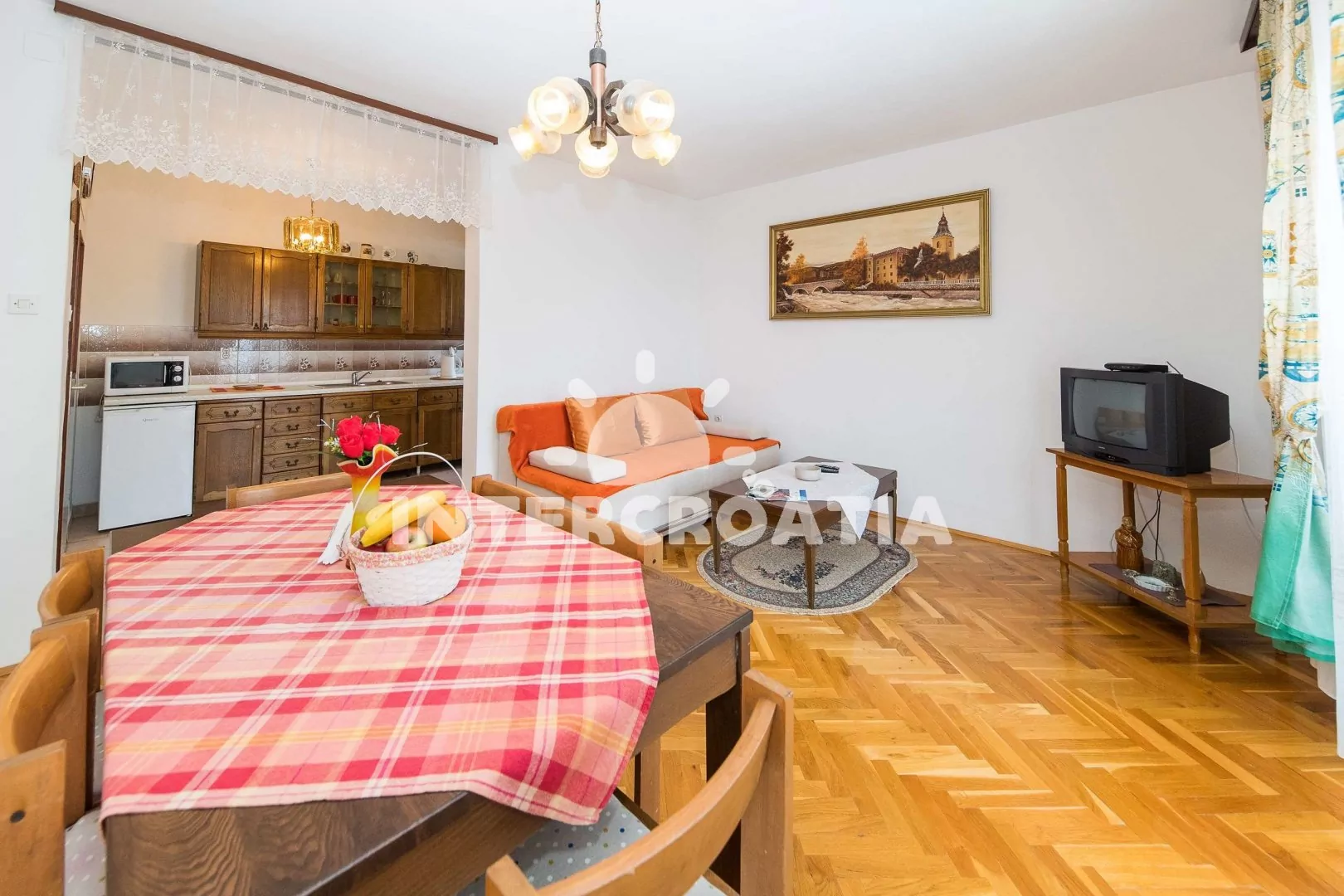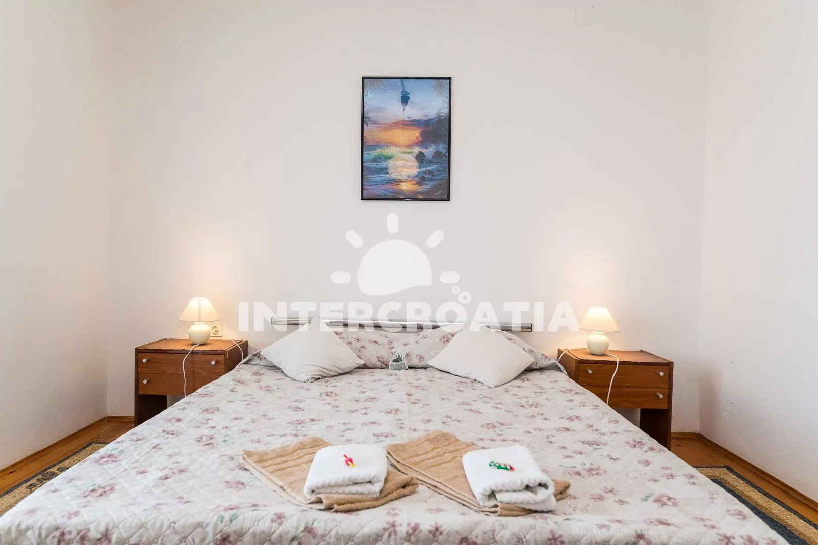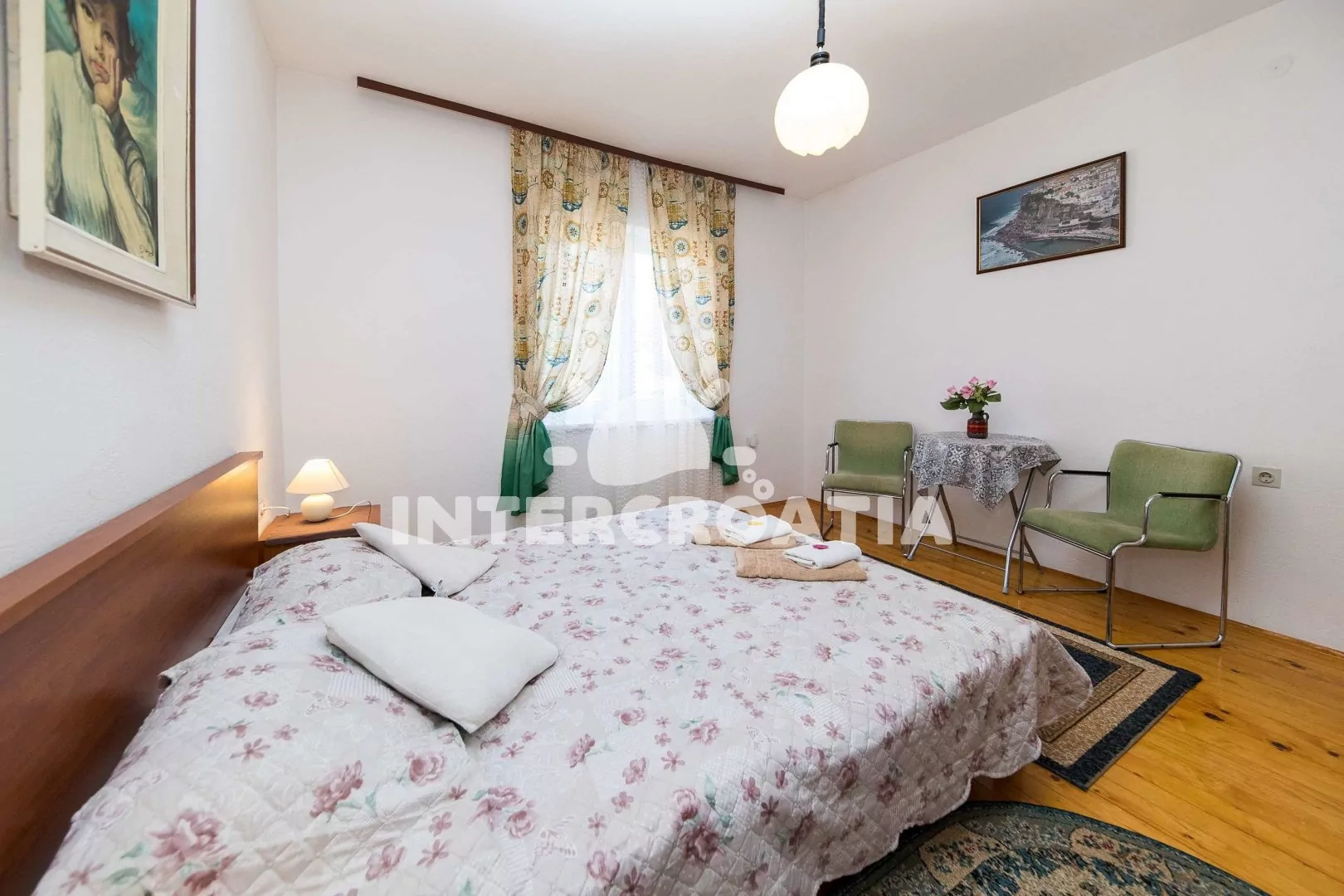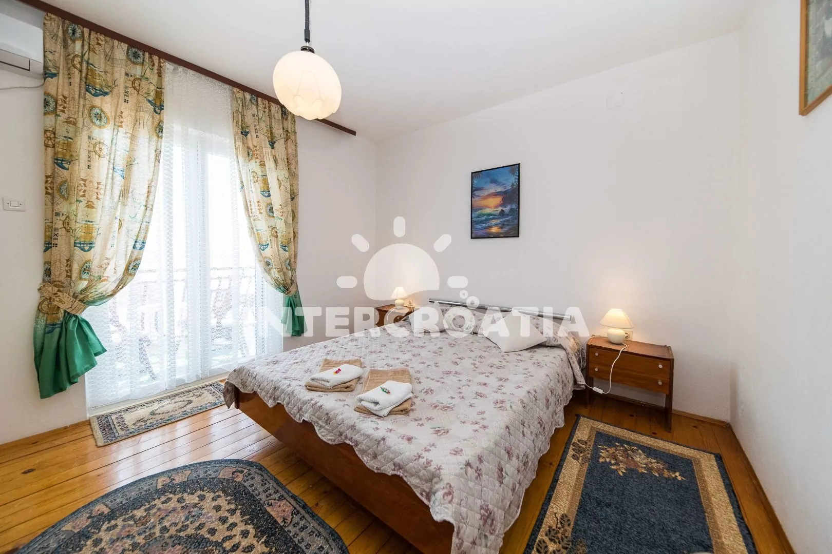 Apartmán (80 m2) s balkonem, posezením a výhledem na moře se nachází v 2. patře domu a je vhodný pro 6 až 8 osob. Obývací pokoj je spojený s kuchyní. Kuchyňská linka je vybavena sporákem s troubou,…