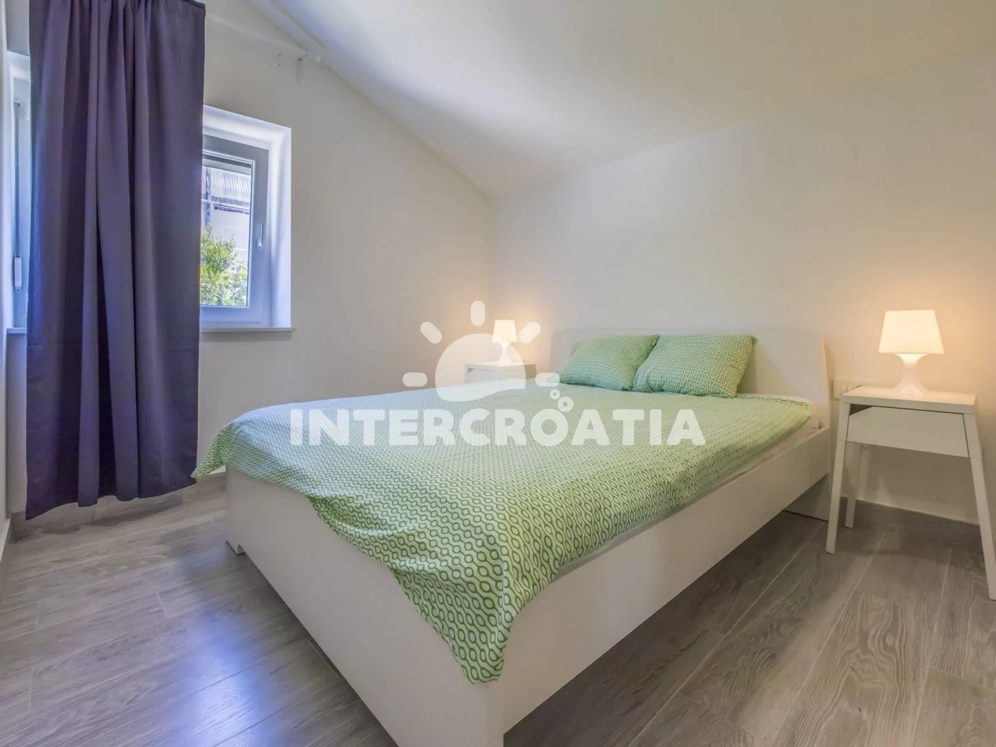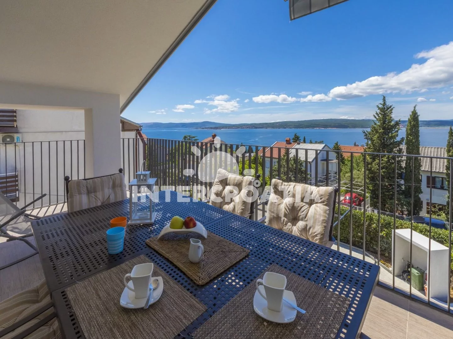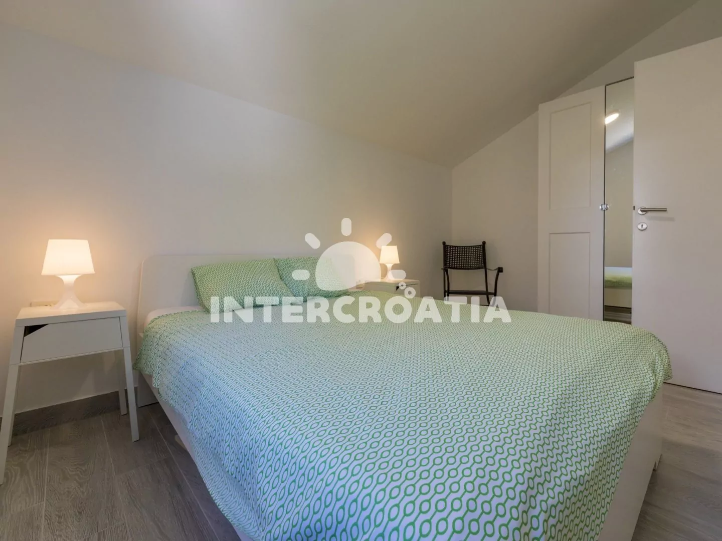 Apartmán (85 m2) s terasou a výhledem na moře se nachází v 2. patře vily a je vhodný pro 4 osoby. Kuchyňská linka je vybavena sklokeramickou varnou deskou, digestoří, vestavěnou troubou, myčkou na…
