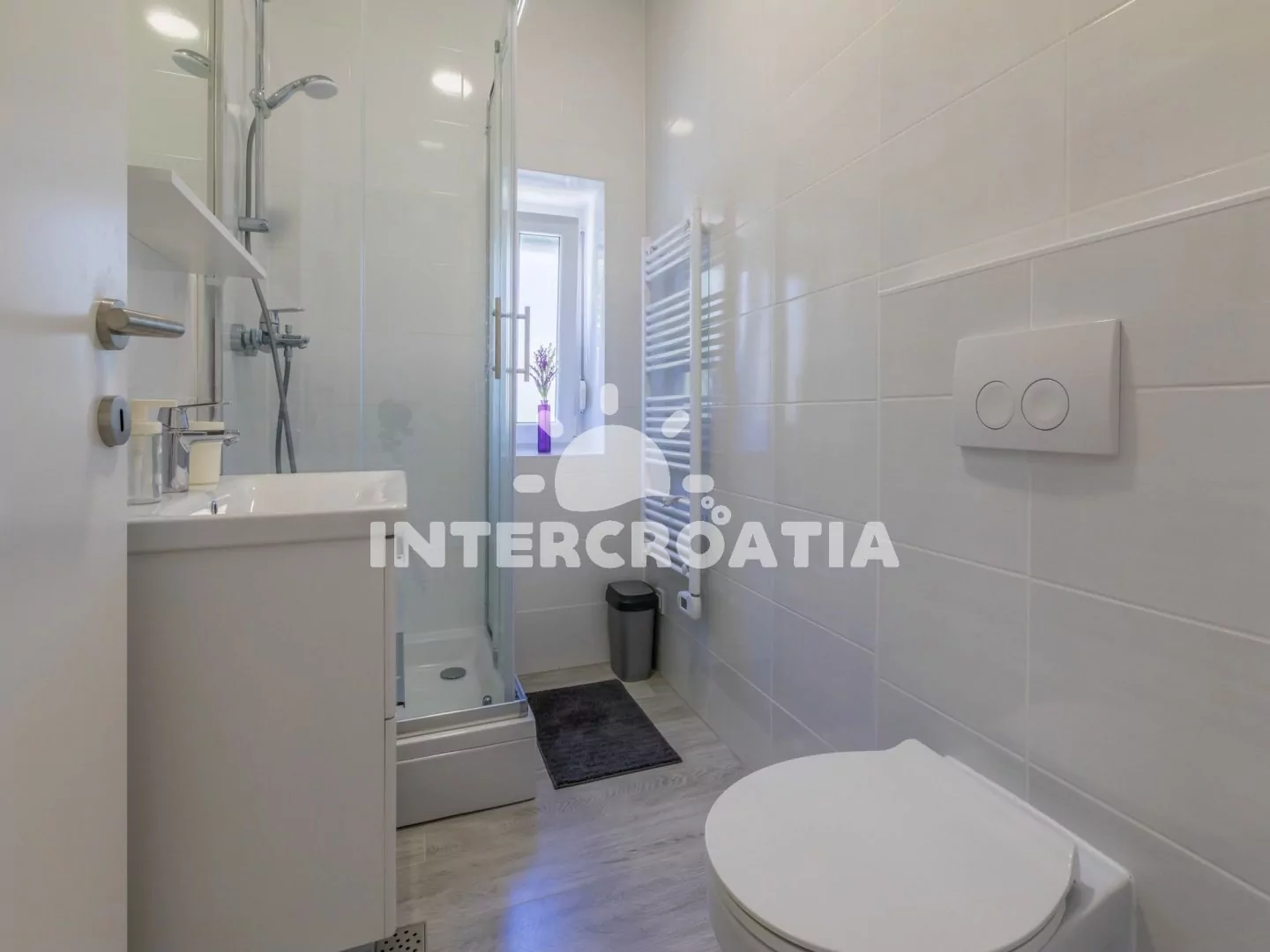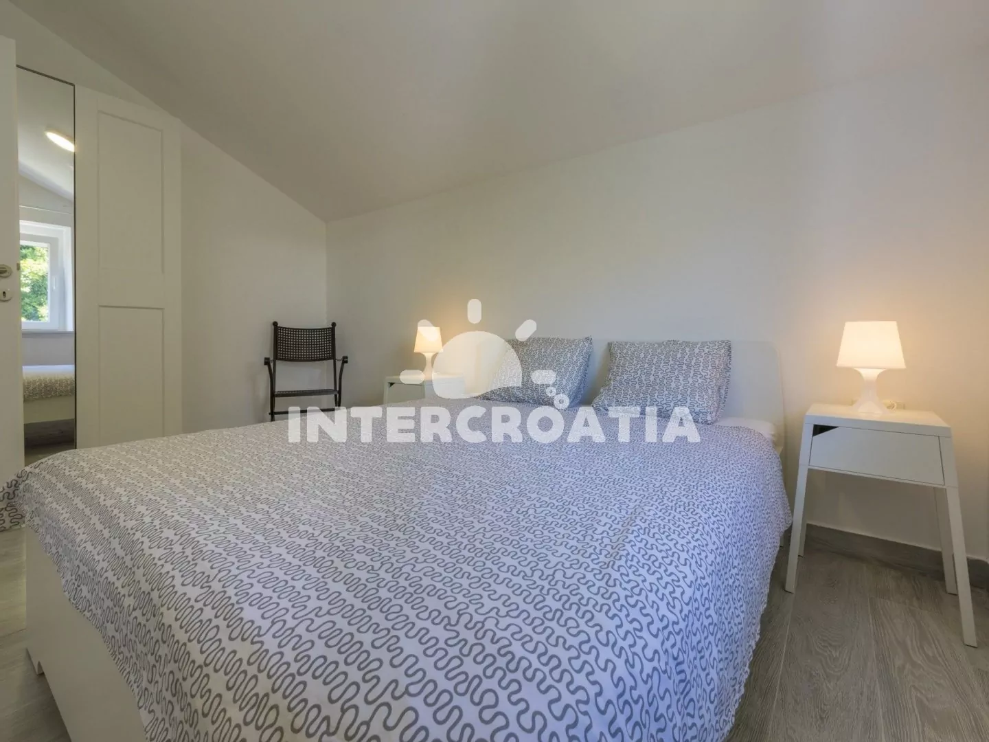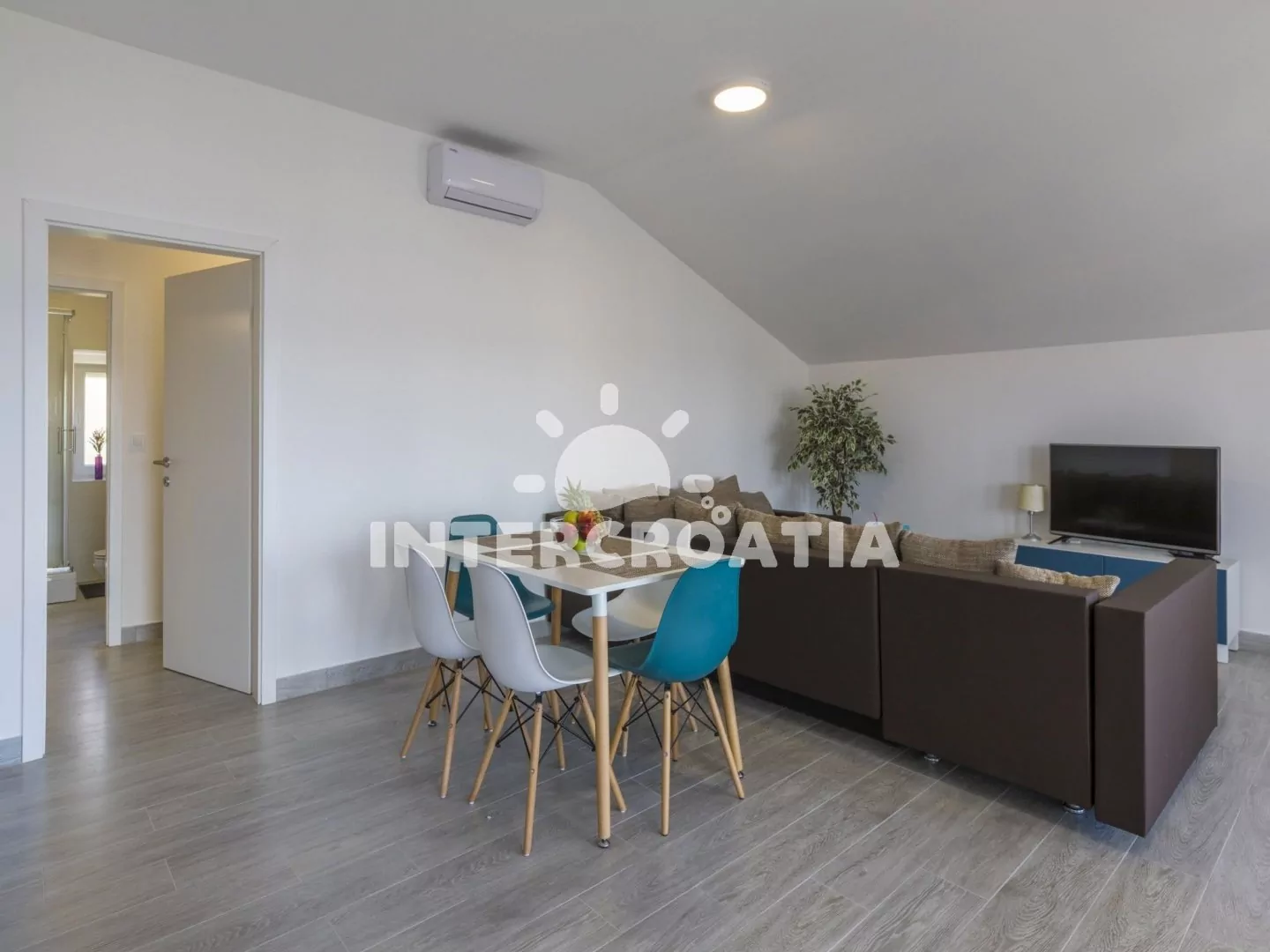 Apartmán (85 m2) s terasou a výhledem na moře se nachází v 2. patře vily a je vhodný pro 4 osoby. Kuchyňská linka je vybavena sklokeramickou varnou deskou, digestoří, vestavěnou troubou, myčkou na…