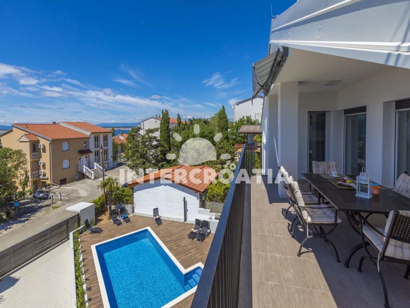 Luxusní a moderně zařízená vila s bazénem a výhledem na moře. Vila disponuje vlastním oploceným pozemkem, parkovacími místy pro automobily, lehátky u bazénu, společnou terasou s posezením a grilem. Vila nabízí ubytování ve 4 luxusních apartmánech s lodžiemi a venkovním posezením.