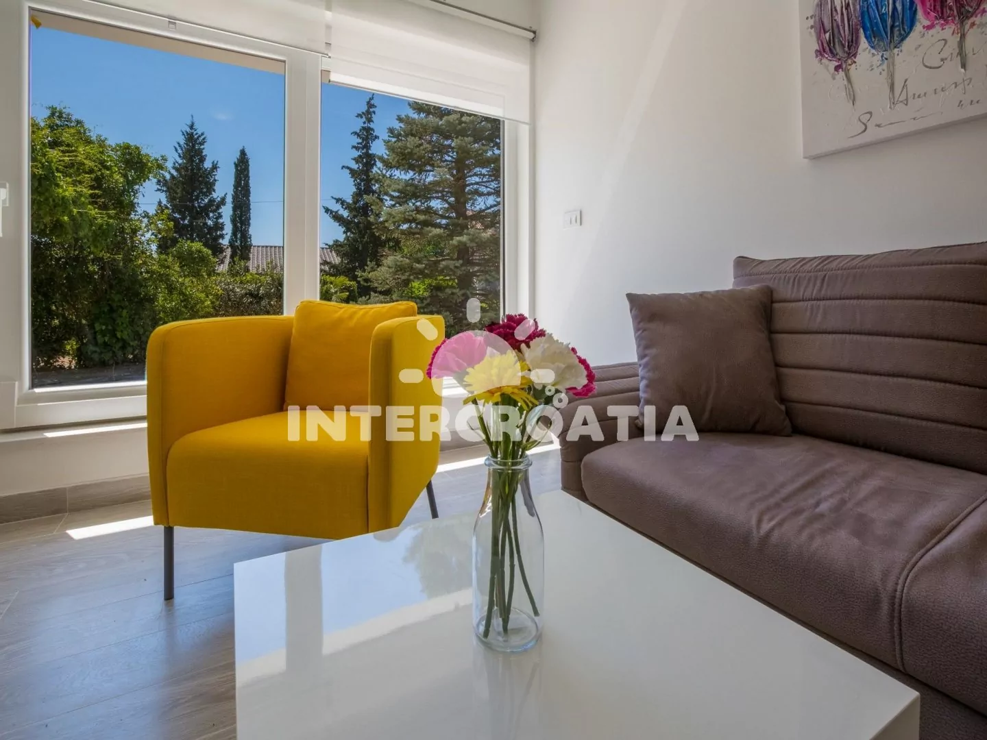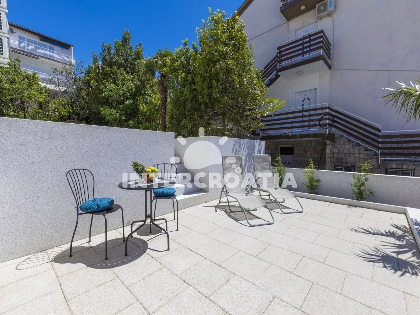 Apartmán (45 m2) s terasou se nachází v přízemí vily a je vhodný pro 2 osoby. Obývací pokoj je spojený s kuchyní. Kuchyňská linka je vybavena sklokeramickou varnou deskou, digestoří, vestavěnou troubou, rychlovarnou konvicí, kávovarem, nádobím a lednicí s mrazákem. Obývací pokoj s barovým stolem, pohovkou, televizí se satelitním programem, radiem, klimatizací a vstupem na terasu. Ložnice je vybavena jedním dvoulůžkem. Koupelna se sprchovým koutem, umyvadlem a wc. Hostům je k dispozici parkování u objektu zdarma.