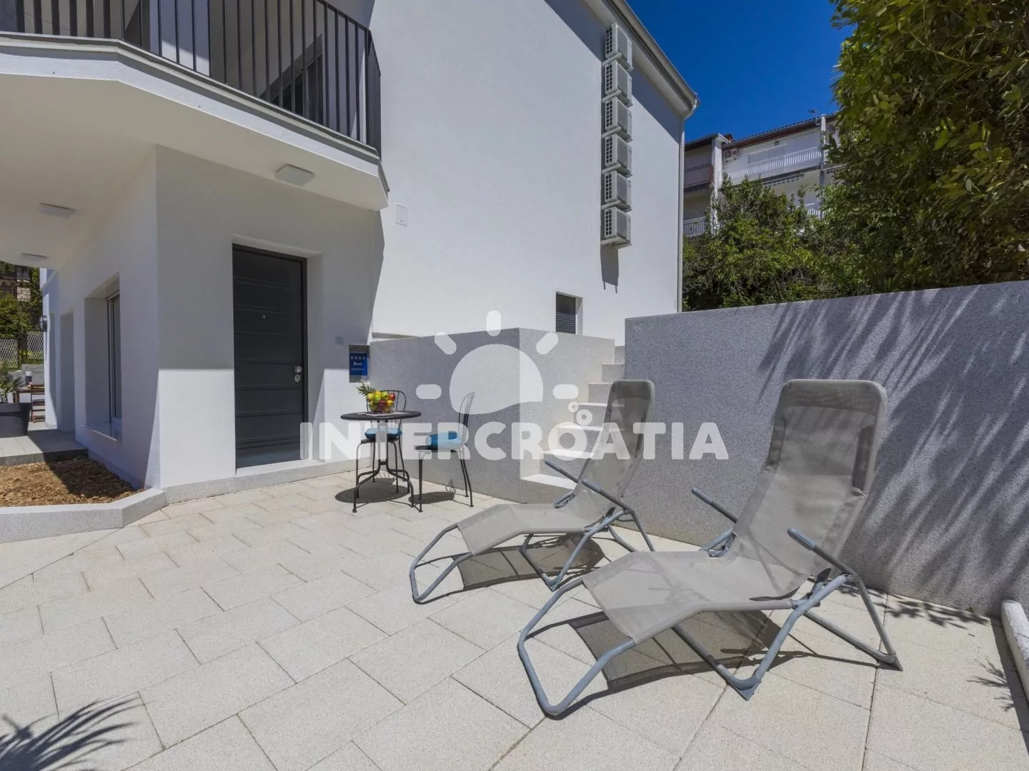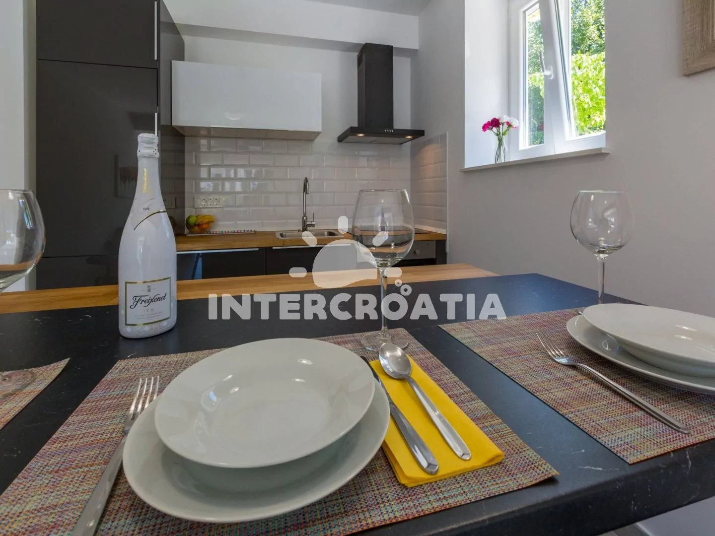 Apartmán (45 m2) s terasou se nachází v přízemí vily a je vhodný pro 2 osoby. Obývací pokoj je spojený s kuchyní. Kuchyňská linka je vybavena sklokeramickou varnou deskou, digestoří, vestavěnou…