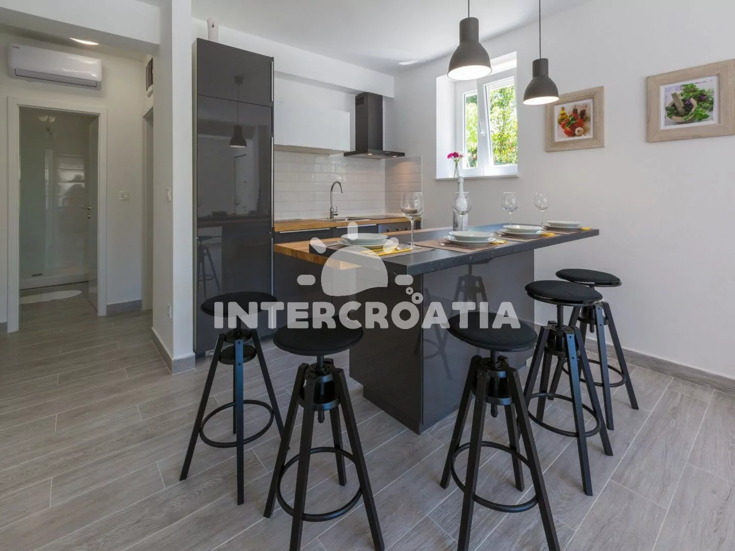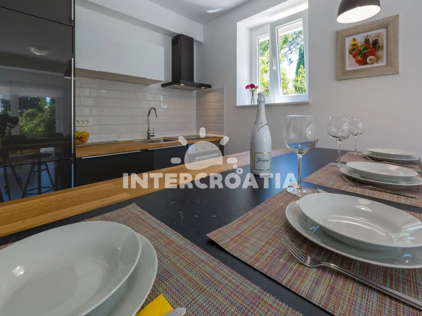 Luxusní a moderně zařízená vila s bazénem se nachází v docházkové vzdálenosti od moře a pláže. Vila disponuje vlastním oploceným pozemkem, parkovacími místy pro automobily, lehátky u bazénu, společnou terasou s posezením a grilem. Vila nabízí ubytování ve 4 luxusních apartmánech s lodžiemi a venkovním posezením.
