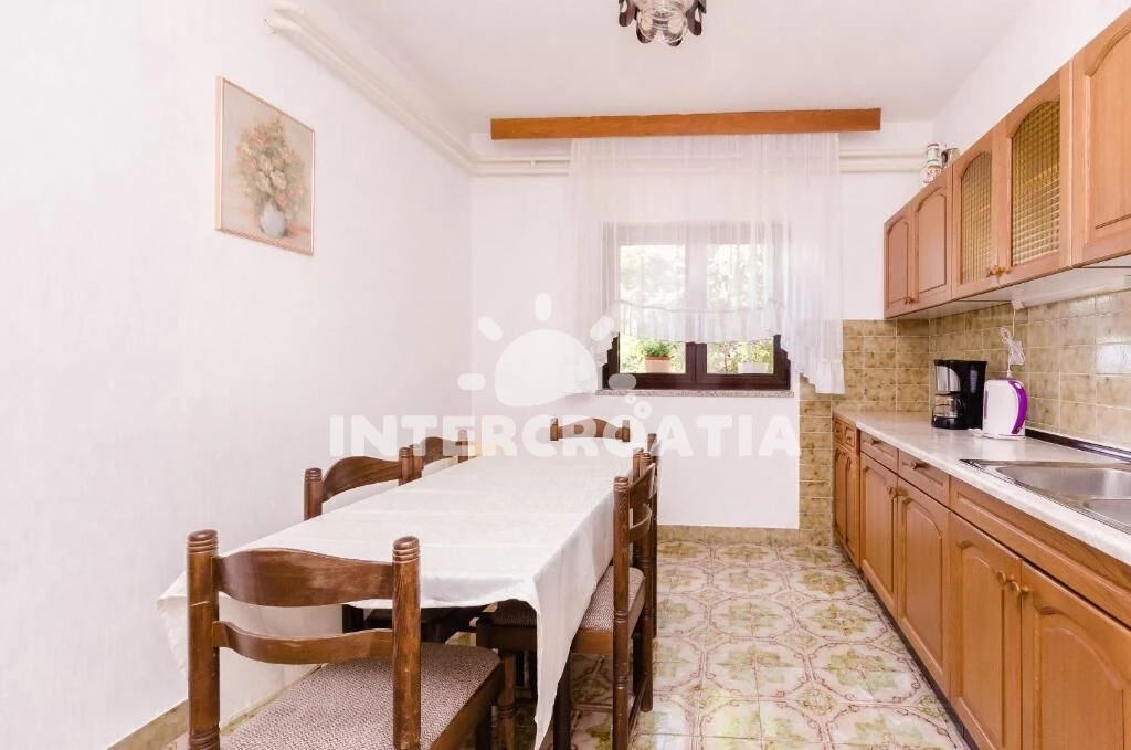 Apartmán (80 m2) s terasou a výhledem na moře se nachází v přízemí domu a je vhodný pro 4 až 6 osob. Kuchyň s jídelním stolem pro 6 osob, kuchyňskou linkou vybavenou sporákem s troubou, digestoří,…