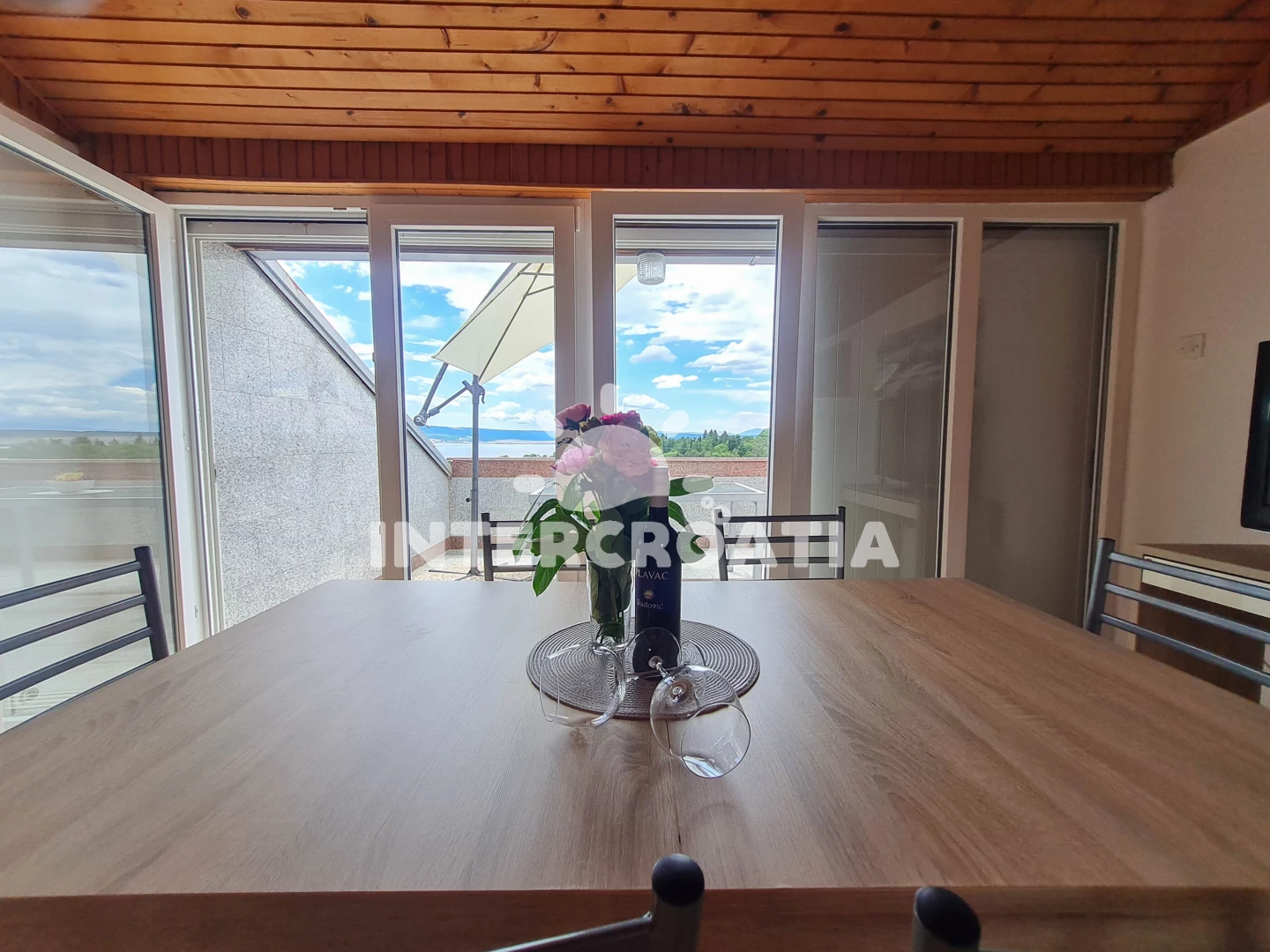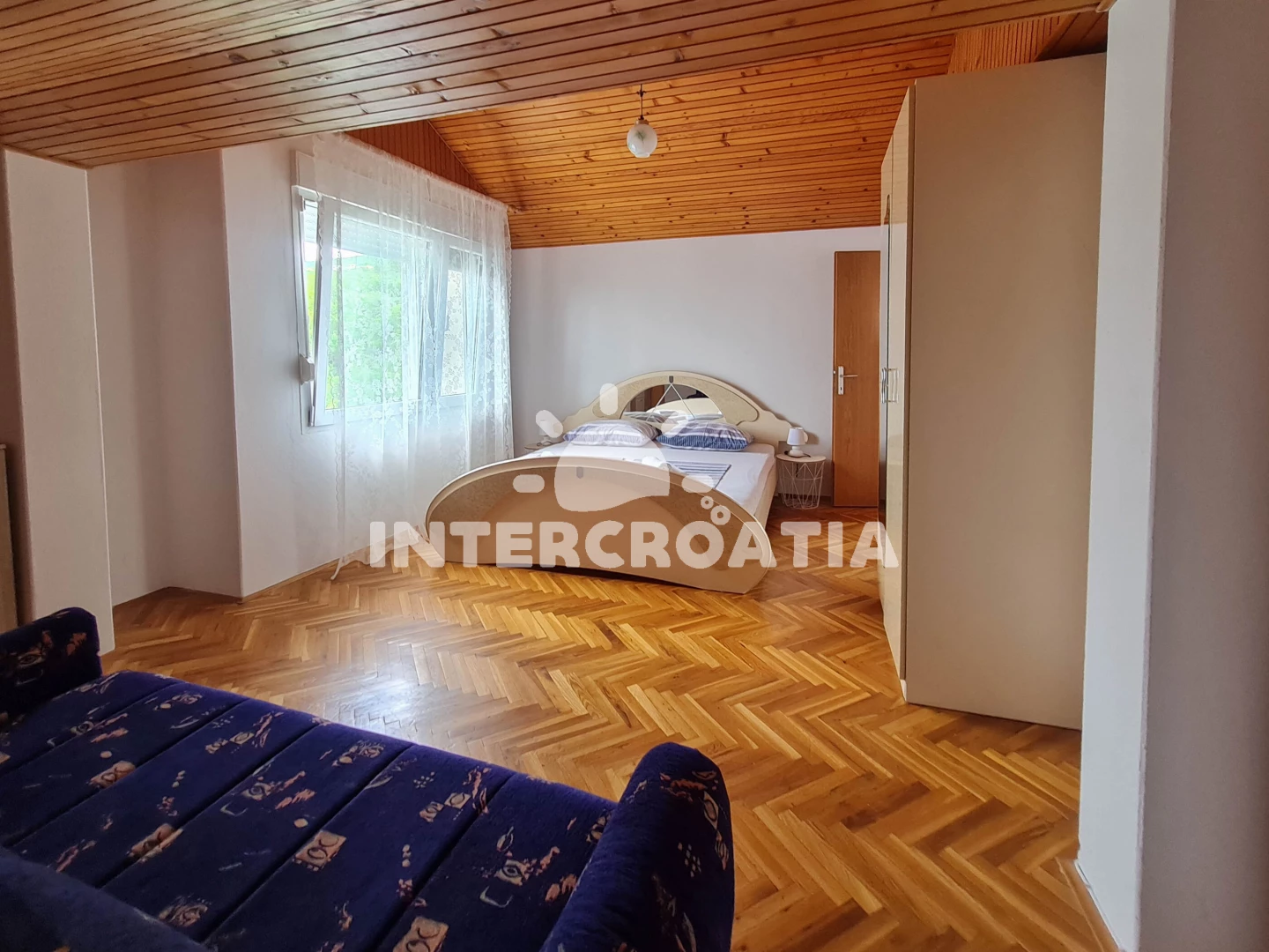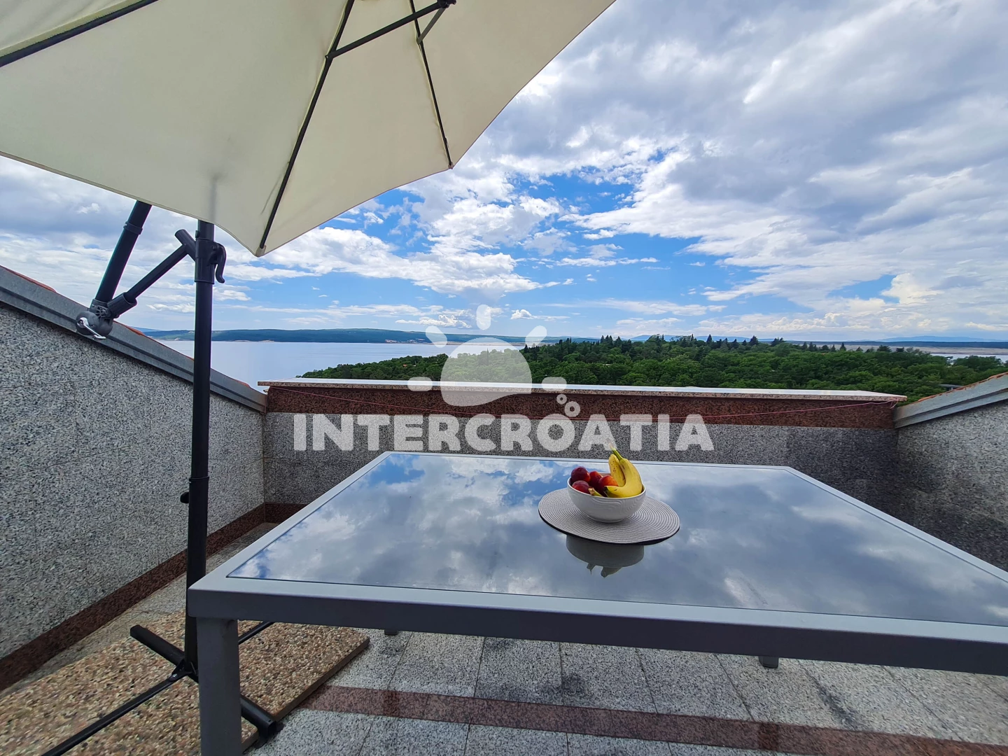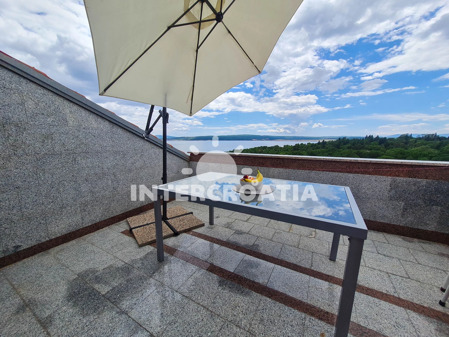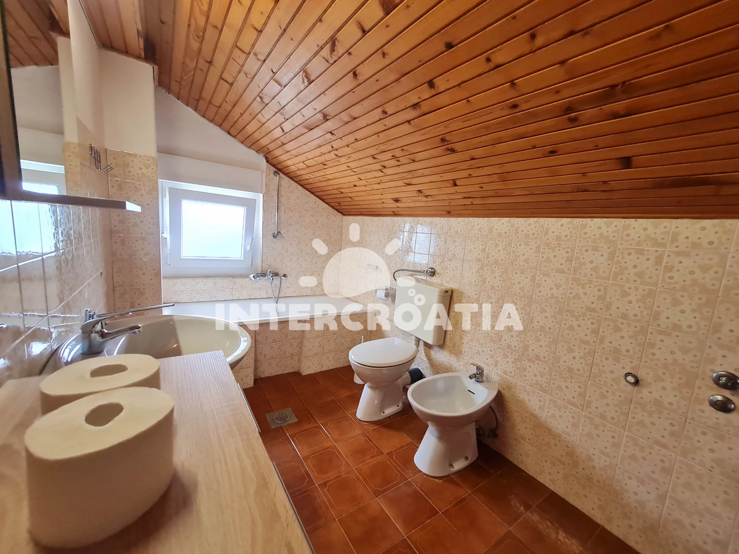 Podkrovní apartmán (75 m2) s terasou, venkovním posezením a výhledem na moře. Apartmán má 3 ložnice a je vhodný pro 6 až 7 osob. Obývací pokoj je spojený s kuchyní. Kuchyňská linka je vybavena varnou…