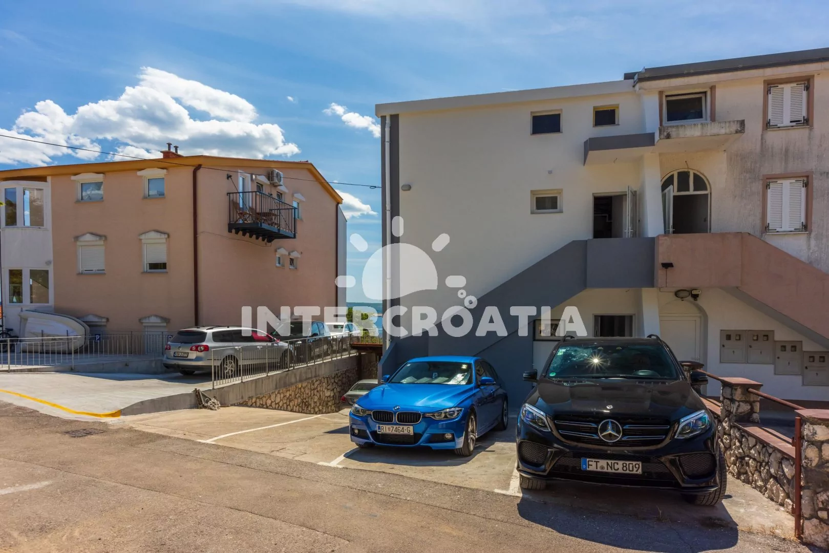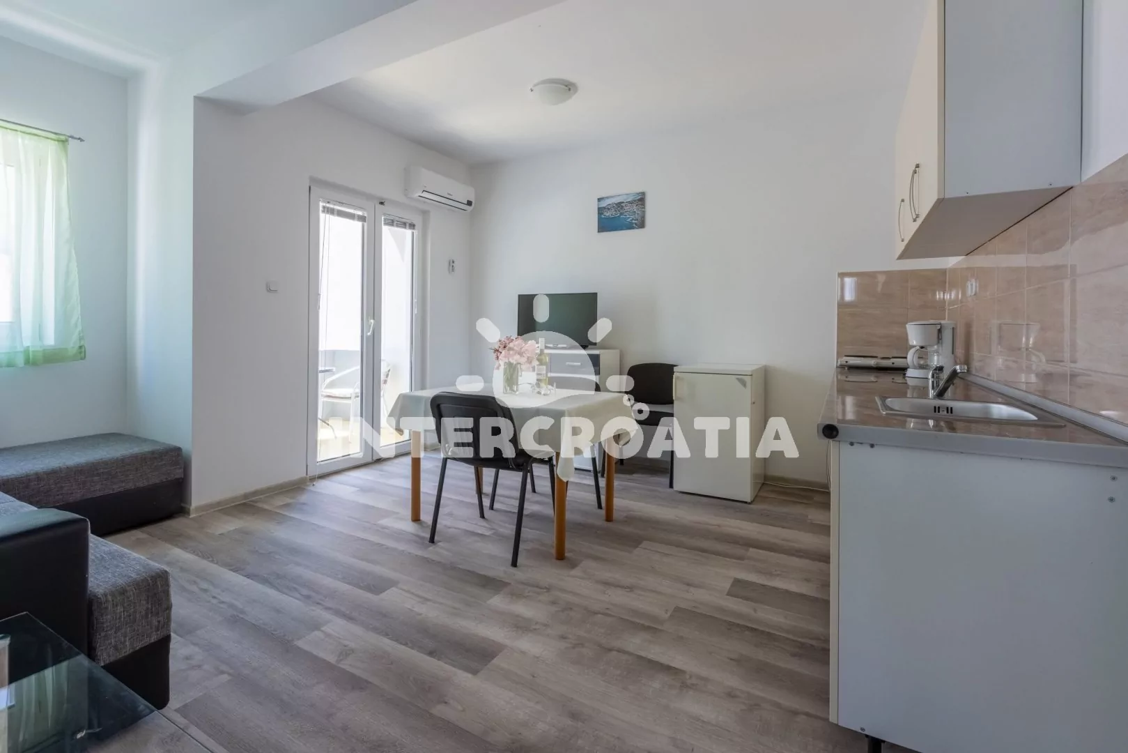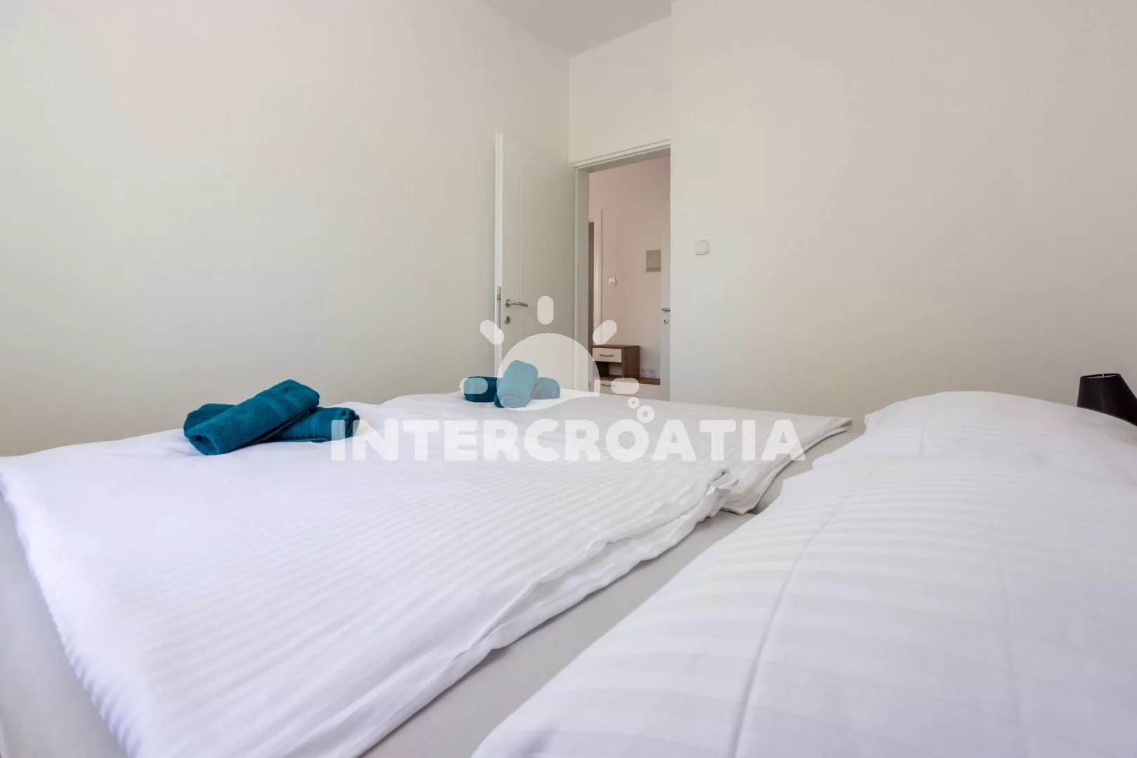 Apartmán (36 m2) s balkonem a bočním výhledem na moře se nachází v 1. patře domu. Apartmán má 1 ložnici a je vhodný pro 2 až 4 osoby. Obývací pokoj je spojený s kuchyní. Kuchyňská linka je vybavena dvouplotýnkovým vařičem, rychlovarnou konvicí, kávovarem, nádobím a lednicí s mrazákem. Obývací pokoj s jídelním stolem, rohovou pohovkou (rozložitelná na extra lůžko pro 2 osoby), televizí se satelitním programem, klimatizací a vstupem na balkon. Ložnice s jedním dvoulůžkem. Koupelna se sprchovým koutem, umyvadlem a wc. Hostům je k dispozici parkování u objektu zdarma.