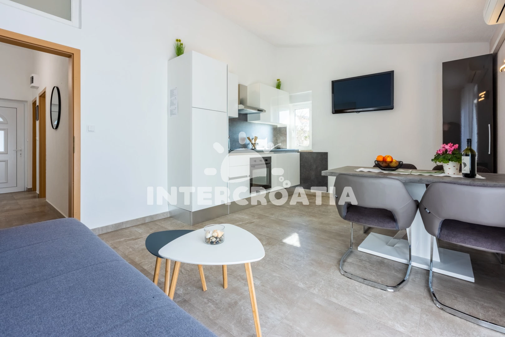 Apartmán (55 m2) s výhledem na moře. Nachází se ve 2. patře objektu. Apartmán má 1 ložnici a je vhodný pro až 4 osoby. Kuchyňská linka je vybavena varnou deskou, kávovarem, rychlovarnou konvicí, nádobím, lednicí, mrazákem. V obývací místnosti je rozložitelná pohovka (extra lůžko pro 2 osoby). K dispozici televize se satelitním programem. Ložnice s dvoulůžkem. Koupelna se sprchovým koutem, umyvadlem, WC.
