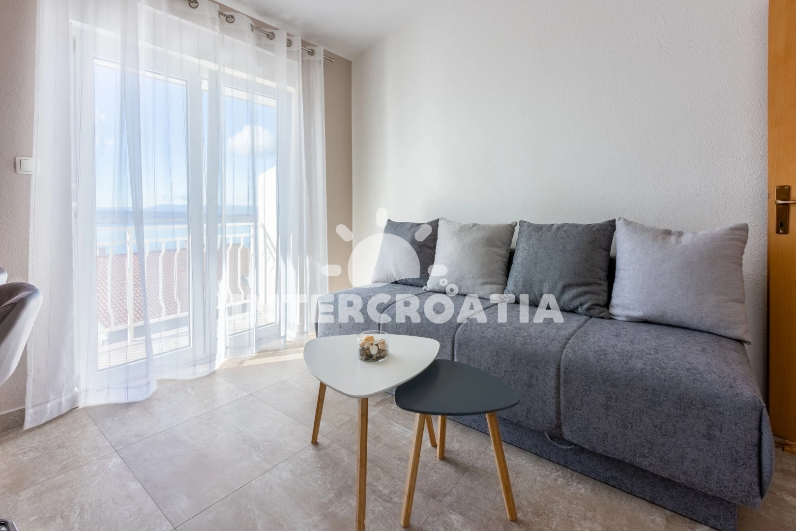 Apartmán (55 m2) s výhledem na moře. Nachází se ve 2. patře objektu. Apartmán má 1 ložnici a je vhodný pro až 4 osoby. Kuchyňská linka je vybavena varnou deskou, kávovarem, rychlovarnou konvicí,…