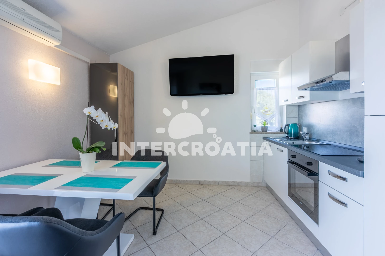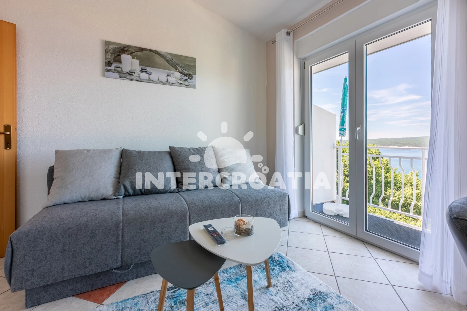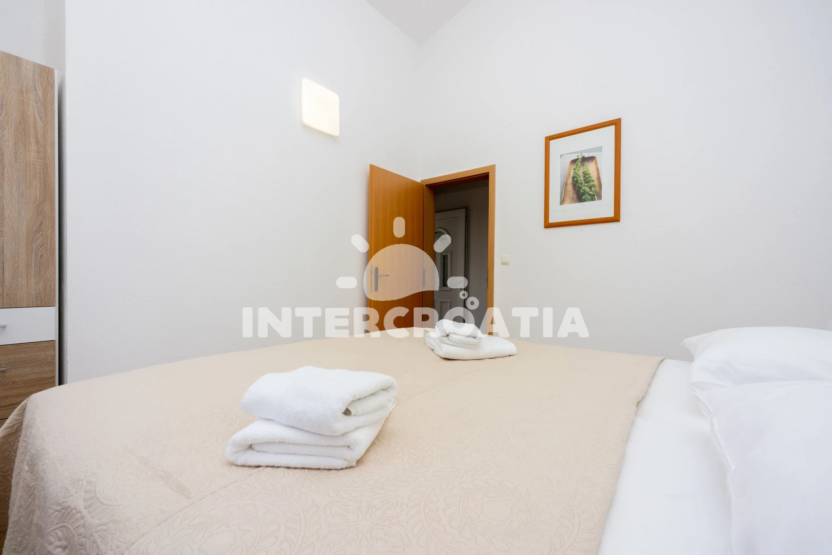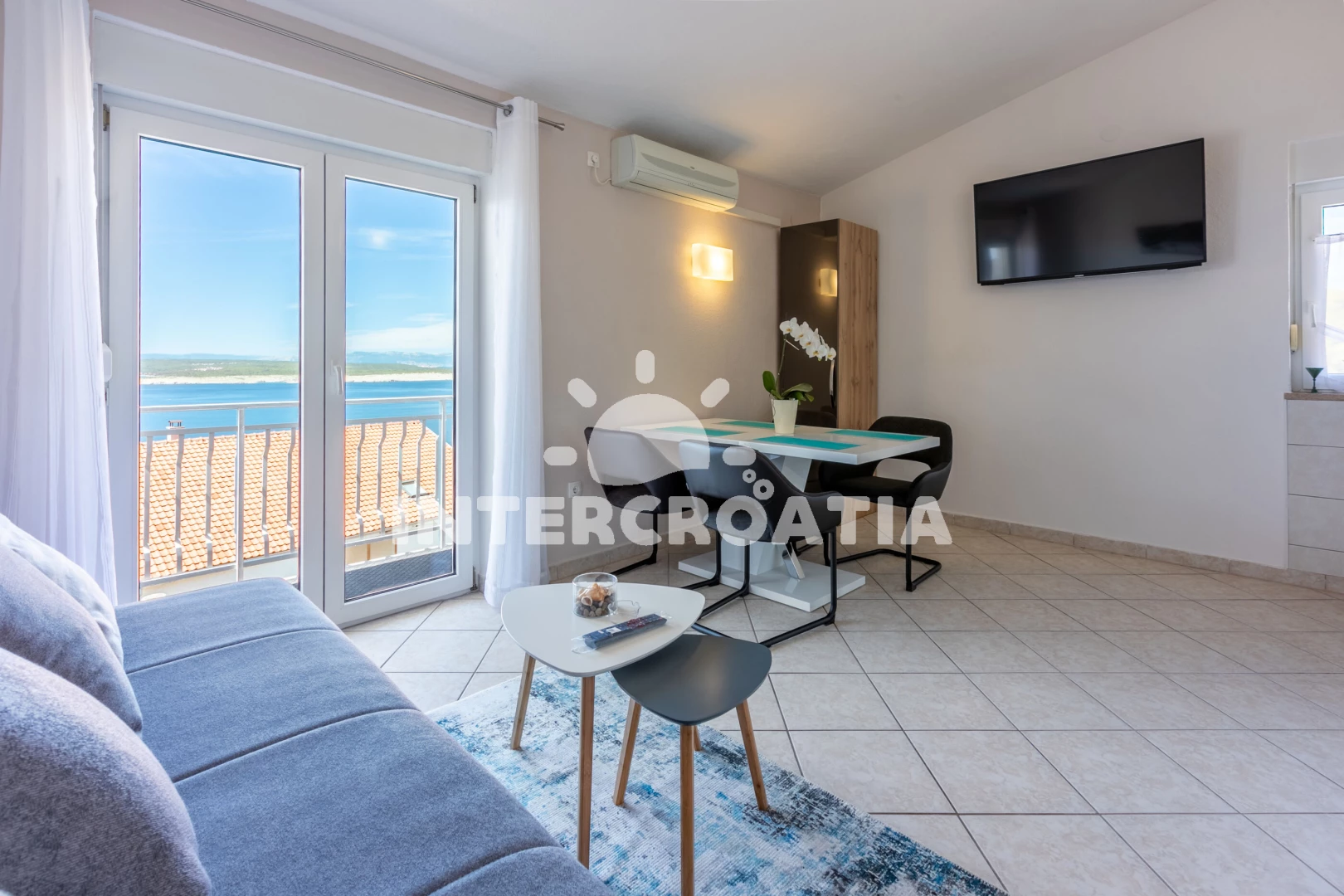 Apartmán (55 m2) s výhledem na moře. Nachází se ve 2. patře objektu. Apartmán má 1 ložnici a je vhodný pro až 4 osoby. Kuchyňská linka je vybavena varnou deskou, rychlovarnou konvicí, nádobím, lednicí, mrazákem. V obývací místnosti je rozložitelná pohovka (extra lůžko pro 2 osoby). K dispozici televize se satelitním programem. Ložnice s dvoulůžkem. Koupelna se sprchovým koutem, umyvadlem, WC.