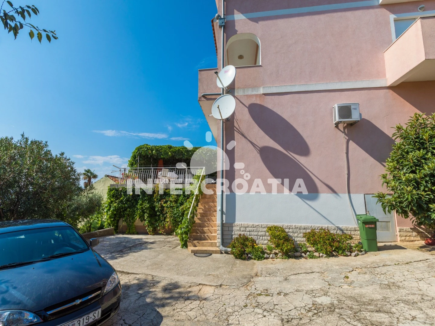 Apartmán se nachází 700 m od moře a pláže. Pláž je skalnatá a větší kamení. U objektu je k dispozici společná zahrada s posezením a grilem. Parkování je před domem.