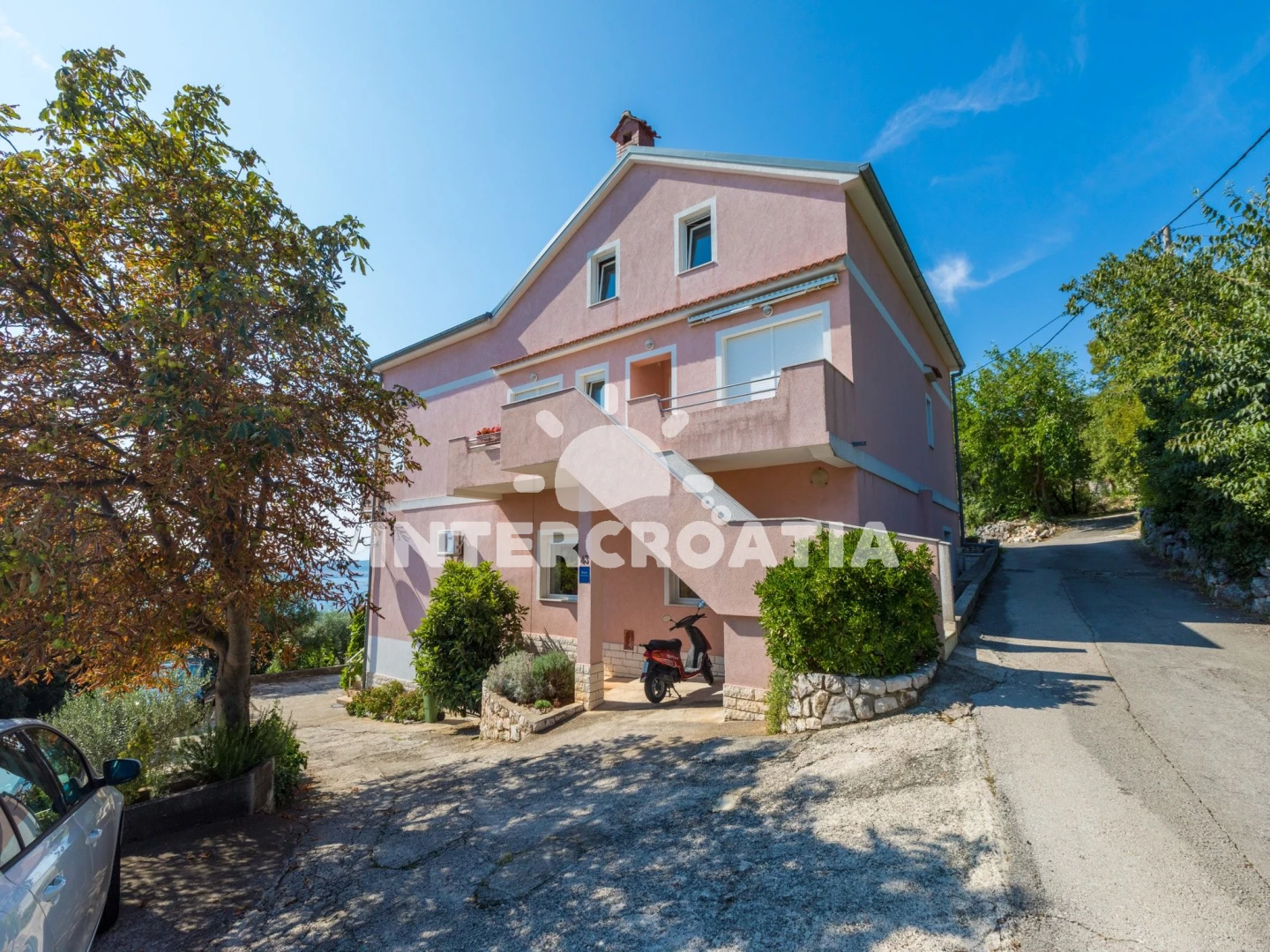 Vzdálenosti: pláž 700 m (skalnatá a větší kamení), restaurace 300 m, pošta 500 m, supermarket 600 m, tenisové kurty 2 km, lékárna 5 km, ambulance 5 km, banka 5 km, diskotéka 5 km, centrum 5 km, letiště (Rijeka) 25 km,