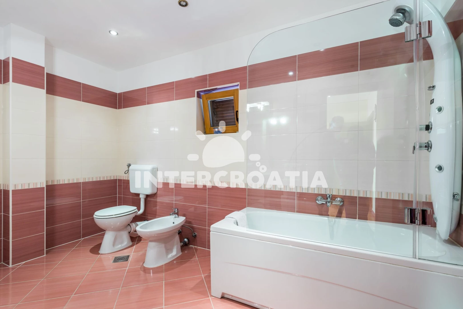 Apartmán (132 m2) s balkonem, a výhledem na moře. Nachází se v podkroví objektu. Apartmán má 3 ložnice a je vhodný pro až 7 osob. Kuchyňská linka je vybavena varnou deskou, kávovarem, troubou, toustovačem, mikrovlnnou troubou, rychlovarnou konvicí, nádobím, lednicí, mrazákem. V obývací místnosti je rozložitelná pohovka (extra lůžko pro osoby). K dispozici televize se satelitním programem, žehlička. První ložnice s dvoulůžkem. Druhá ložnice s dvoulůžkem. Třetí ložnice s jednolůžkem, dvoulůžkem. Koupelna se sprchovým koutem, umyvadlem, WC. Druhá koupelna s vanou, umyvadlem, WC.