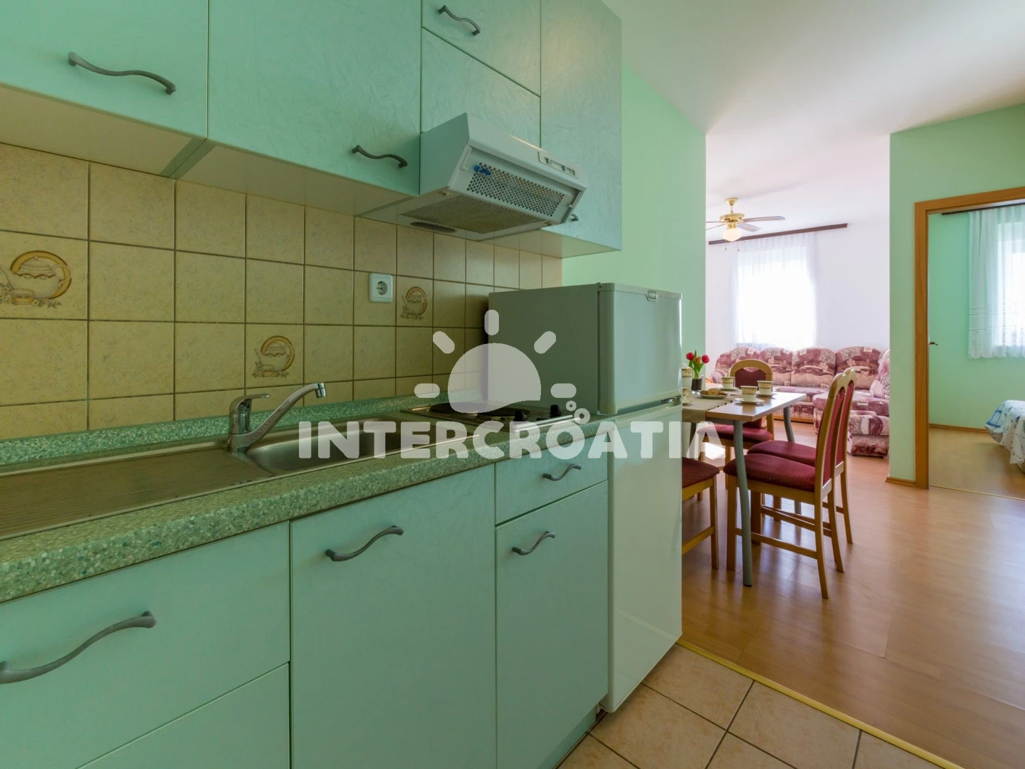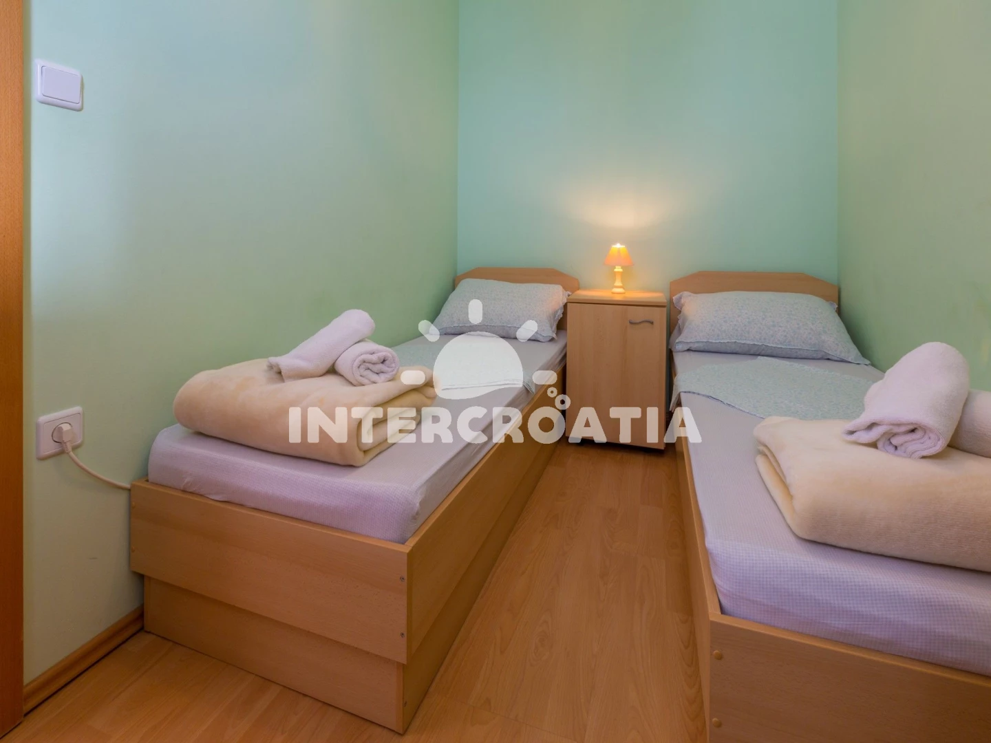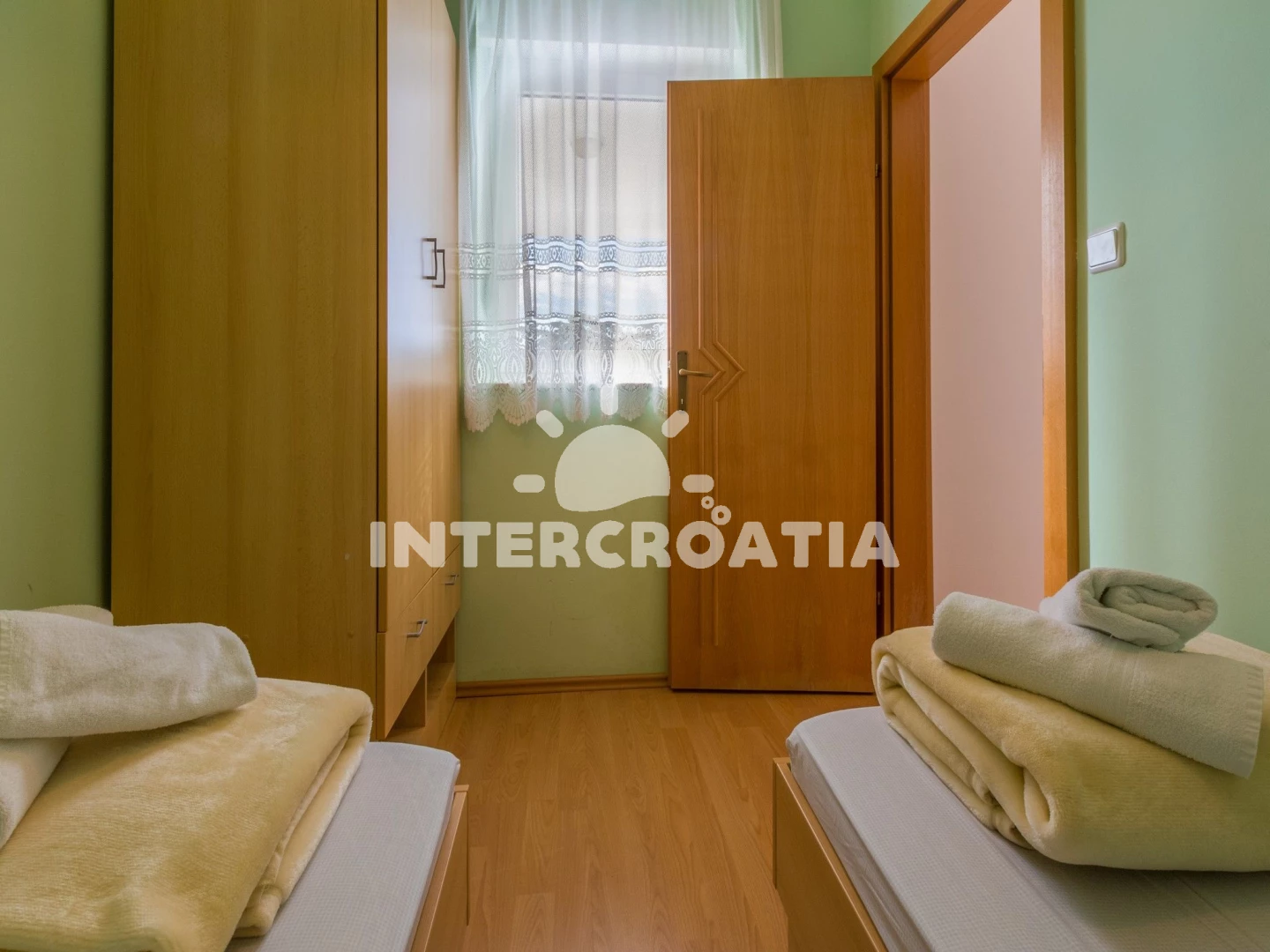 Apartmán se nachází 300 m od moře a pláže. Pláž je oblázková a betonové desky. U objektu je k dispozici společná zahrada s posezením a grilem.