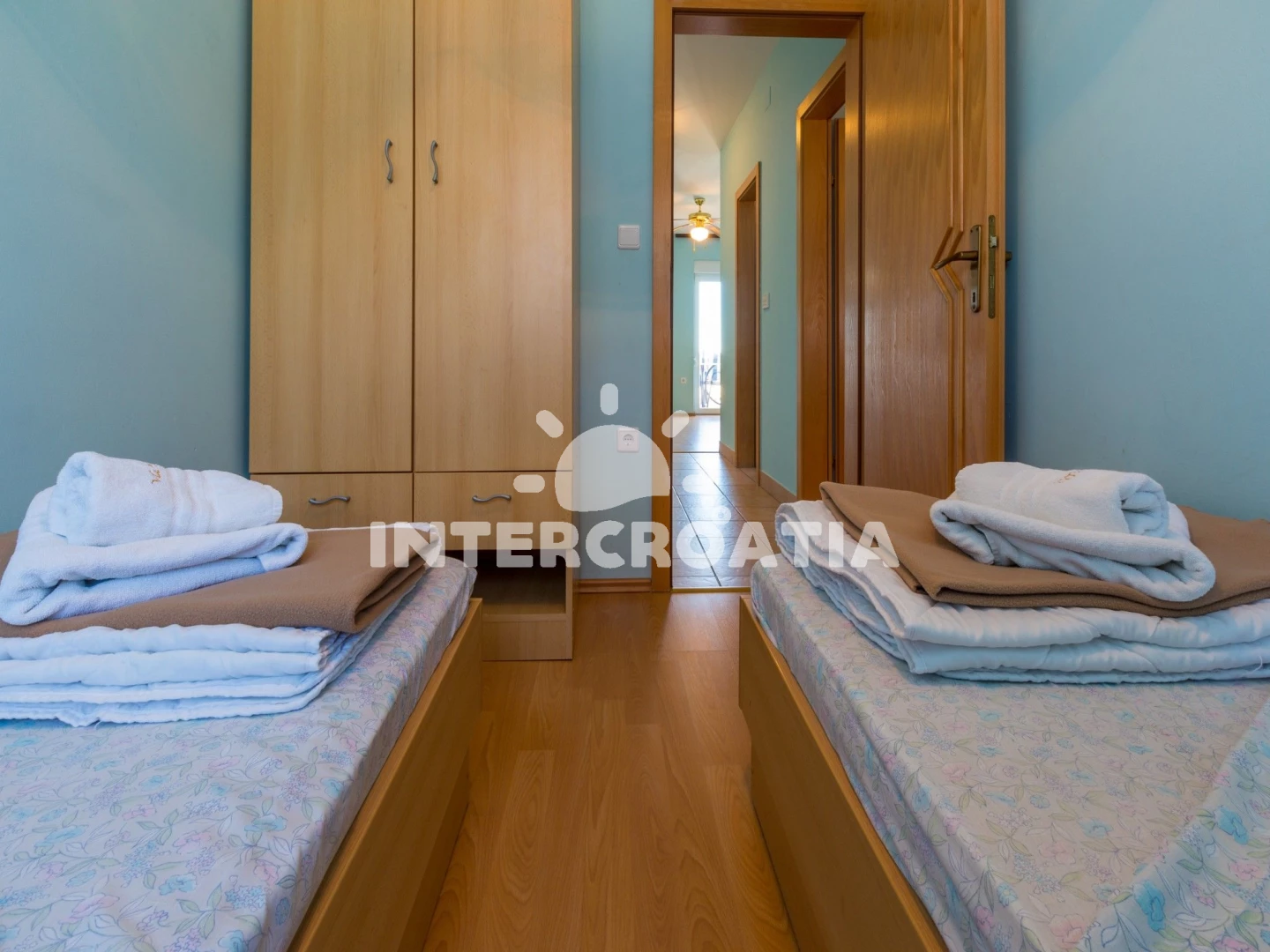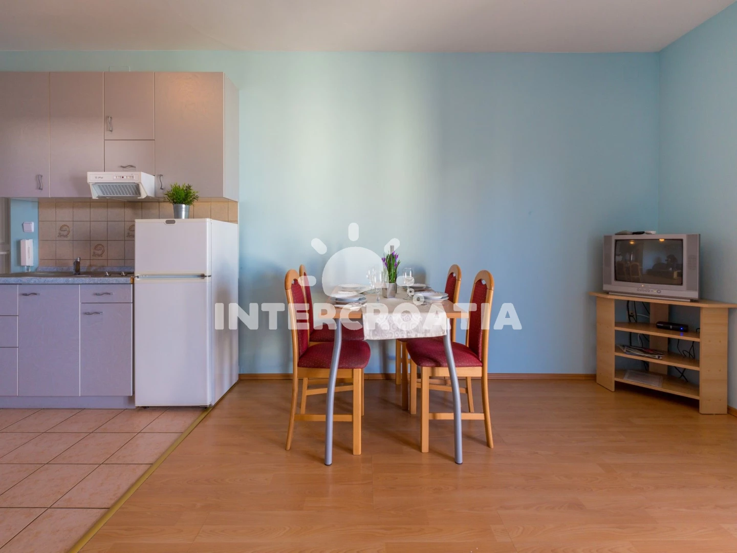Apartmán se nachází 300 m od moře a pláže. Pláž je oblázková a betonové desky. U objektu je k dispozici společná zahrada s posezením a grilem.