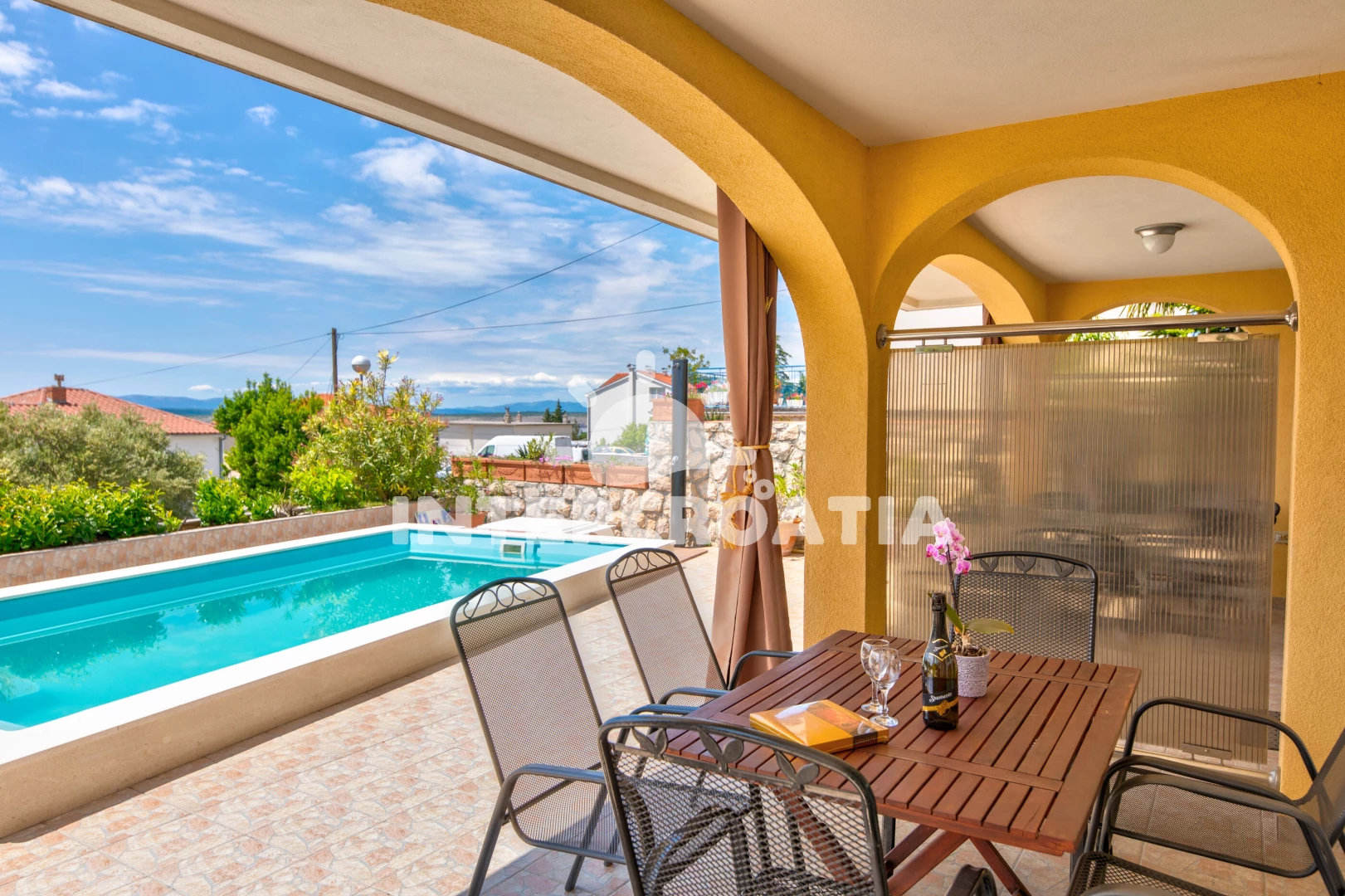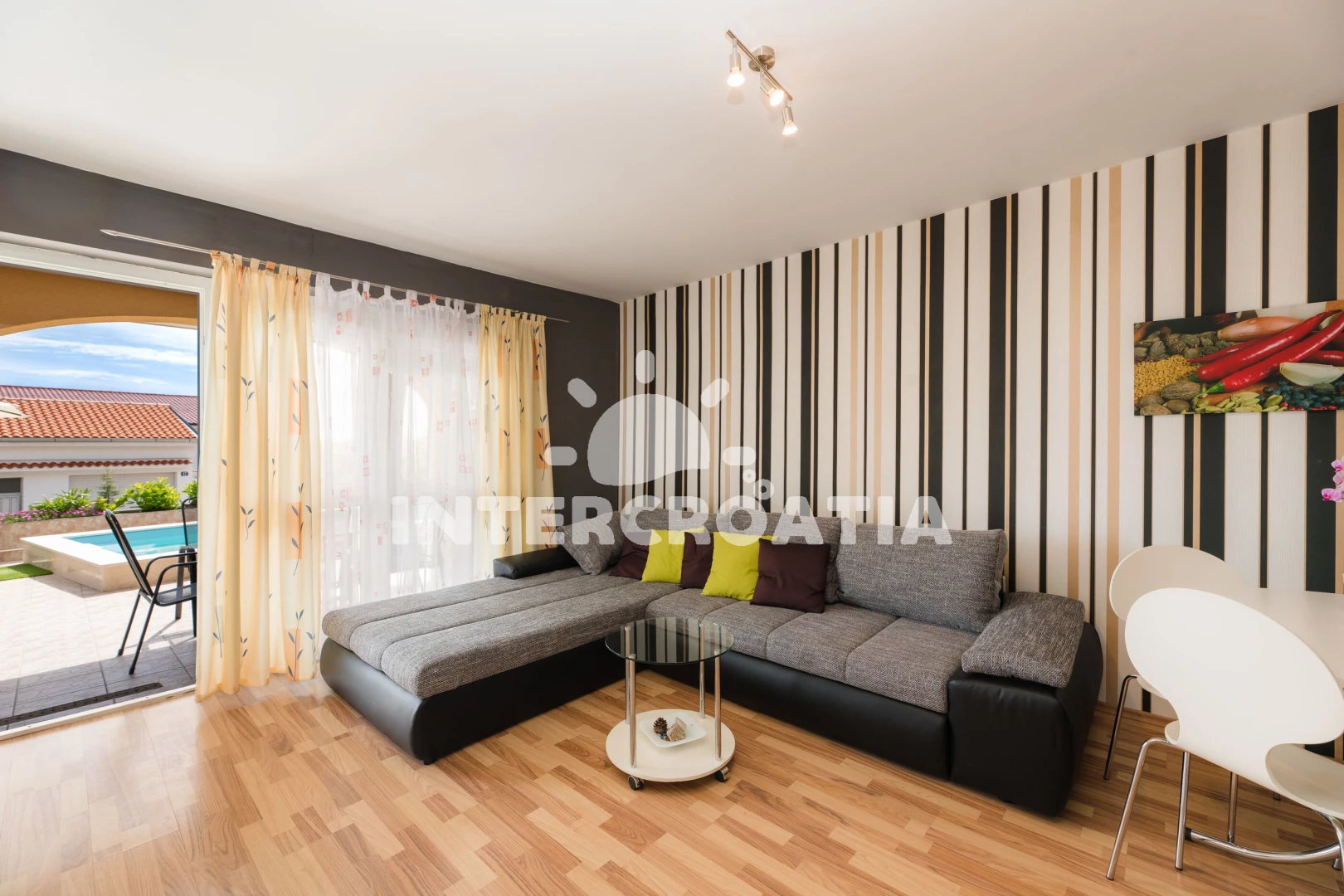 Apartmán se nachází 200 m od moře a pláže. Pláž je skalnatá, oblázková, větší kamení a betonové desky. Apartmán disponuje bazénem s lehátky pro ubytované hosty. U objektu je k dispozici společná zahrada s posezením a grilem. Parkování je před domem.