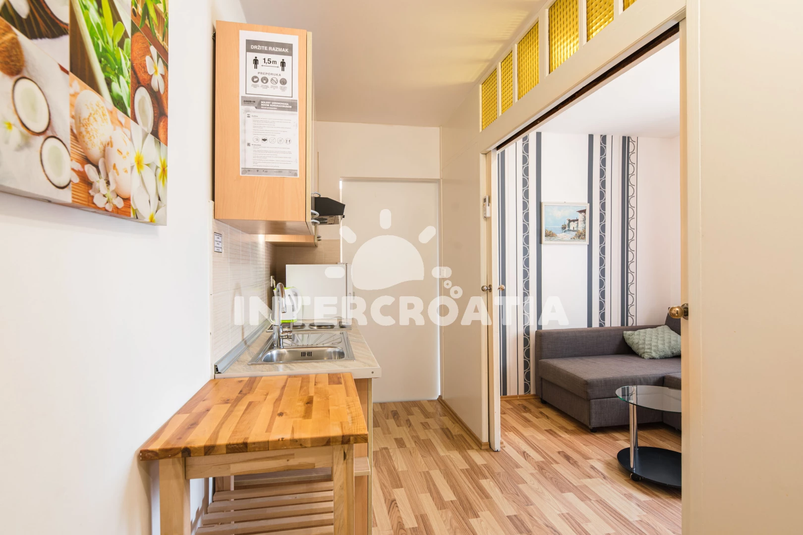 Vzdálenosti: Moře 200 m, pláž 200 m (skalnatá, oblázková, větší kamení a betonové desky), restaurace 130 m, supermarket 150 m, směnárna 150 m, bar 200 m, tenisové kurty 700 m, mini golf 700 m, čerpací stanice 1 km, potápění 1,5 km, banka 3 km, pošta 3 km, lékárna 3 km, muzeum 3 km, diskotéka 3 km, centrum 3 km, ambulance 3,2 km, letiště 19 km, trajekt (Rijeka) 37 km,