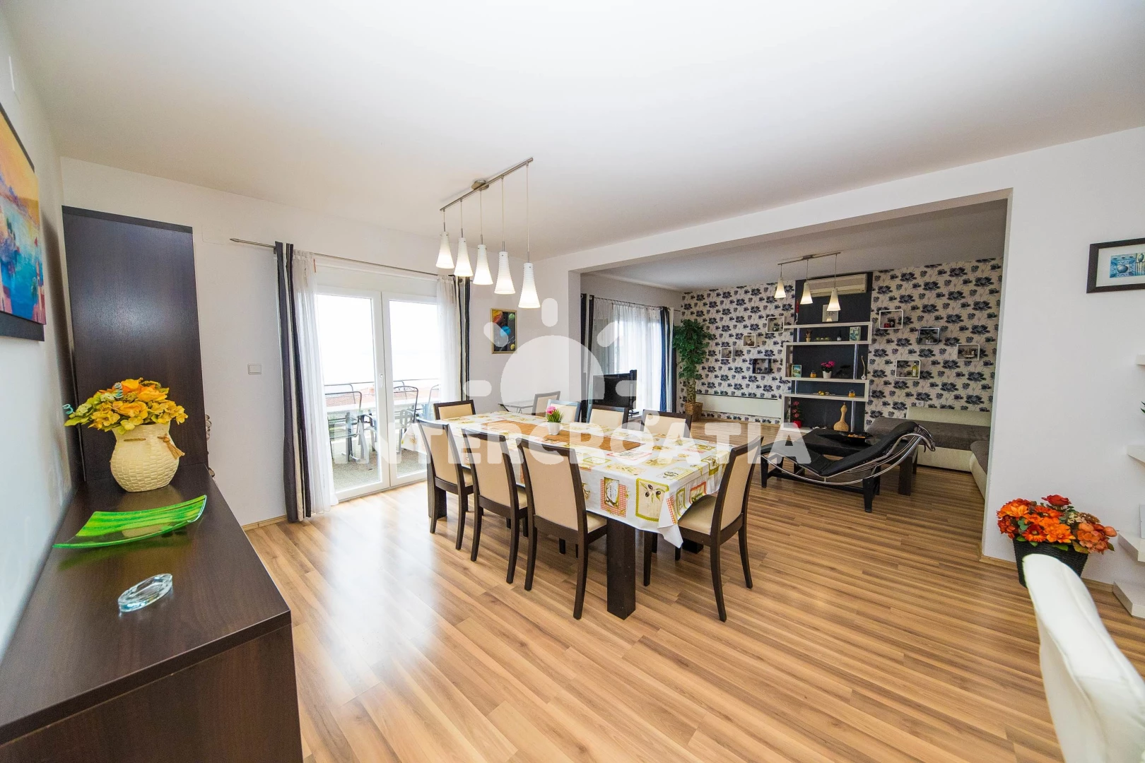 Apartmán se nachází 200 m od moře a pláže. Pláž je skalnatá, oblázková, větší kamení a betonové desky. Apartmán disponuje bazénem s lehátky pro ubytované hosty. U objektu je k dispozici společná zahrada s posezením a grilem. Parkování je před domem.