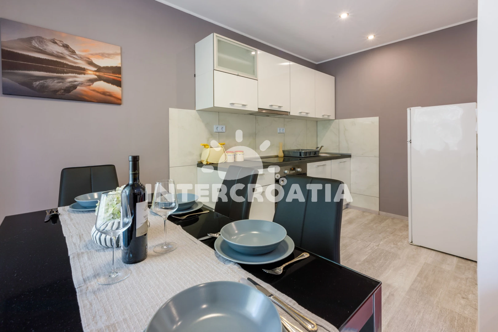 Apartmán se nachází 400 m od moře a pláže. Pláž je oblázková a betonové desky. U objektu je k dispozici společná zahrada s posezením a grilem.
