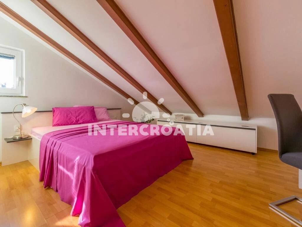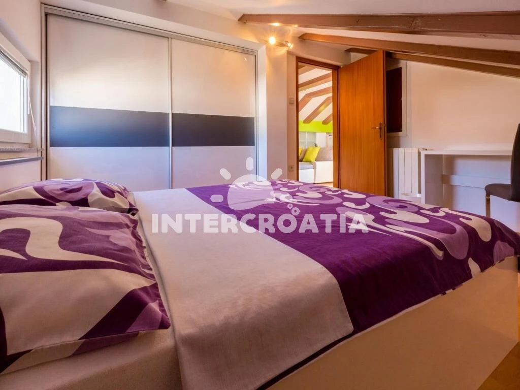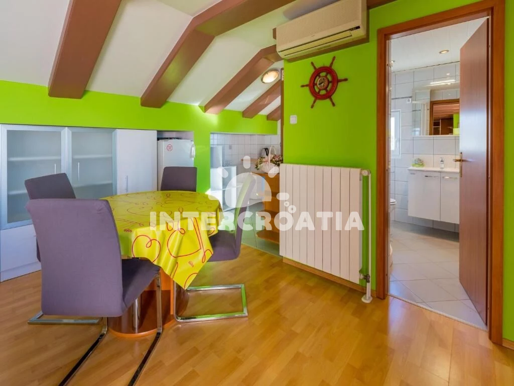 Apartmán se nachází 200 m od moře a pláže. Pláž je skalnatá, oblázková, větší kamení a betonové desky.
