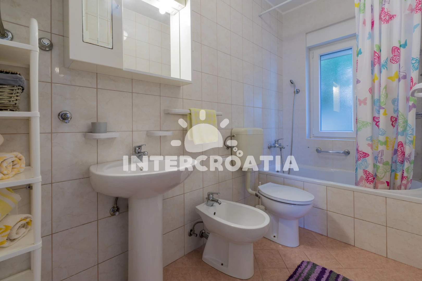 Apartmán se nachází 200 m od moře a pláže. Pláž je oblázková a betonové desky. U objektu je k dispozici společná zahrada s posezením a grilem. Parkování je před domem.