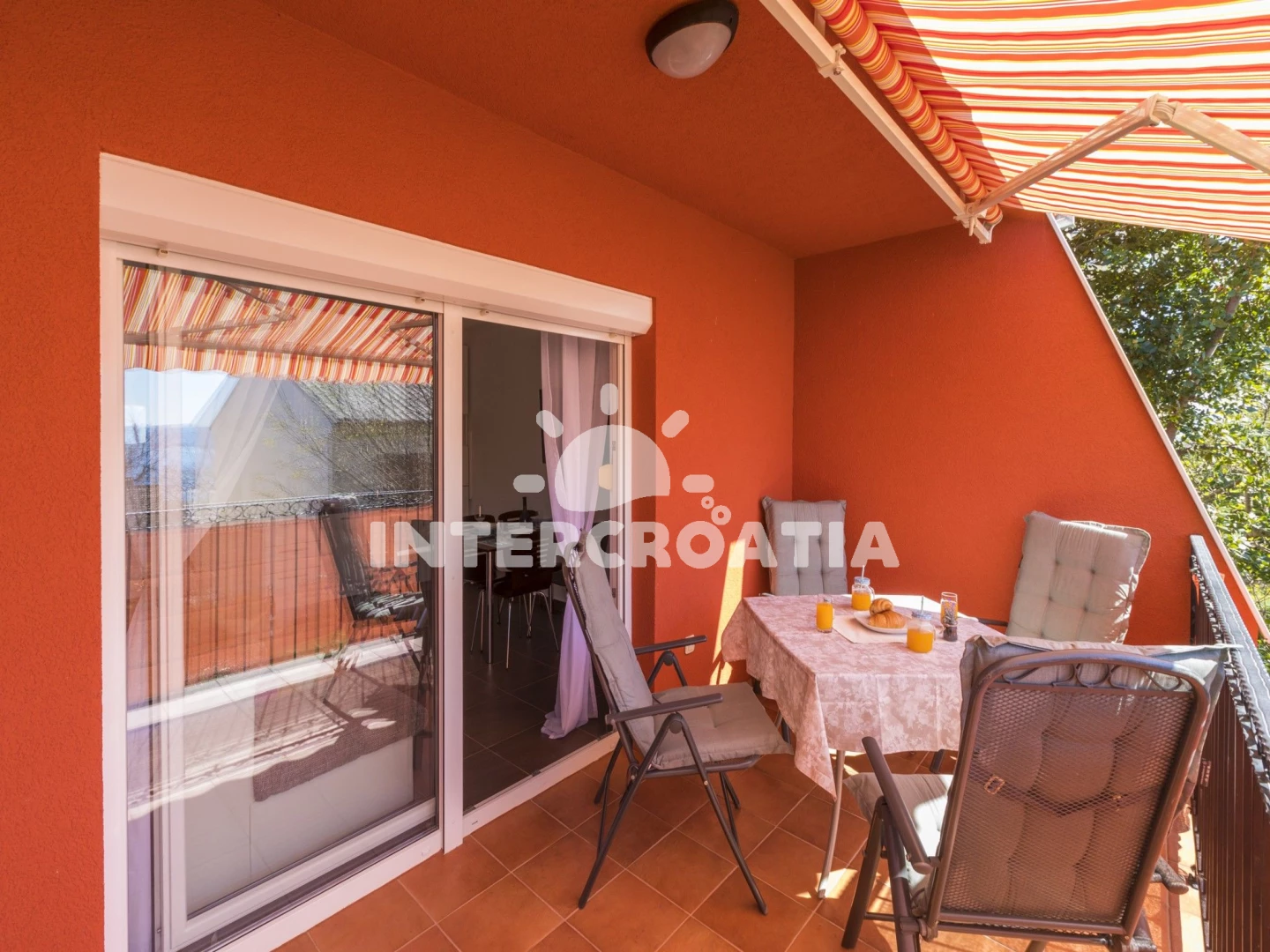 Apartmán se nachází 350 m od moře a pláže. Pláž je oblázková a větší kamení. U objektu je k dispozici společná zahrada s posezením a grilem. Parkování je před domem.