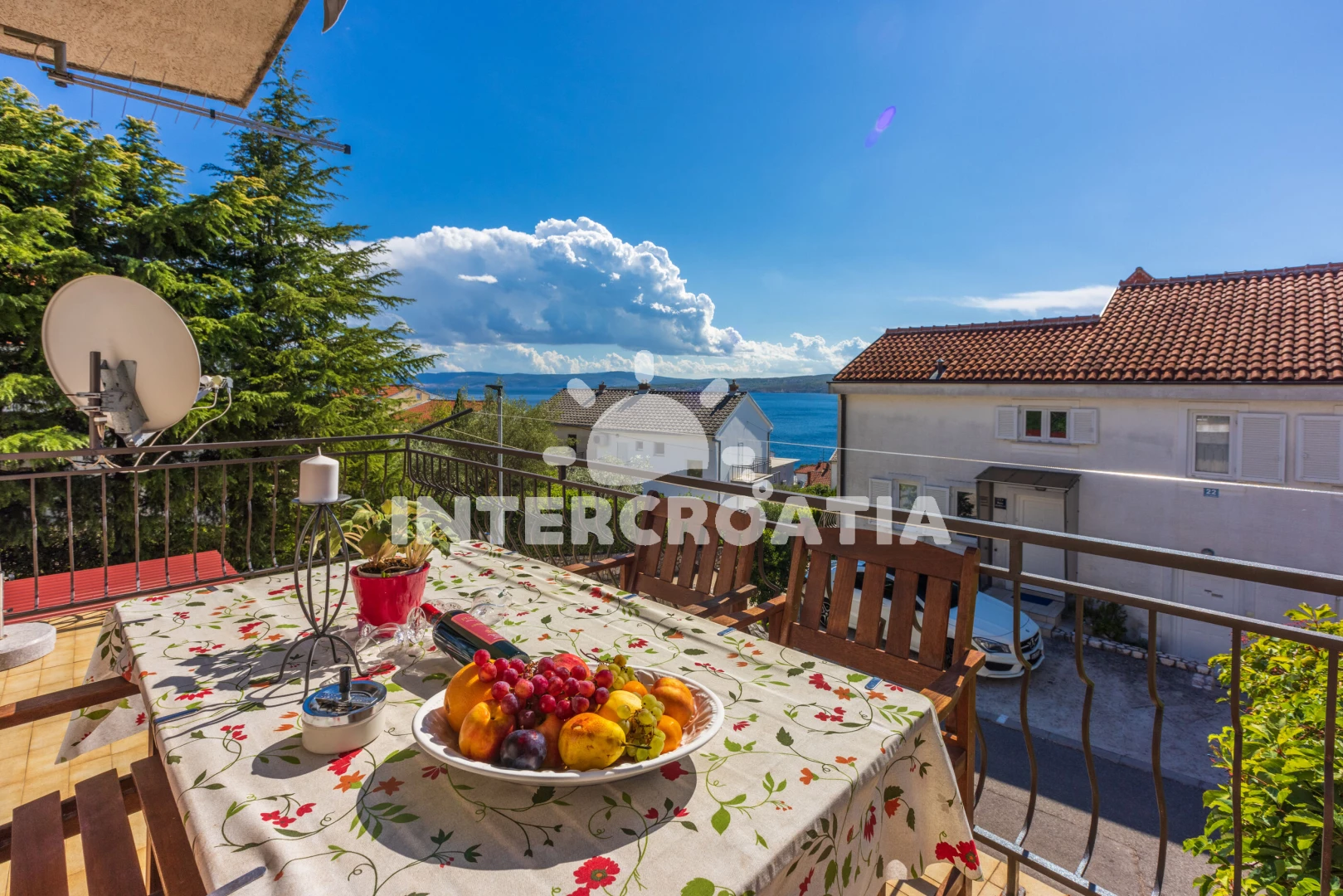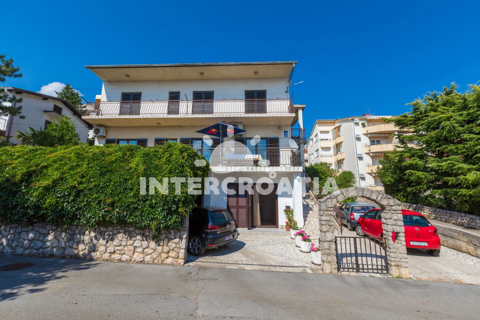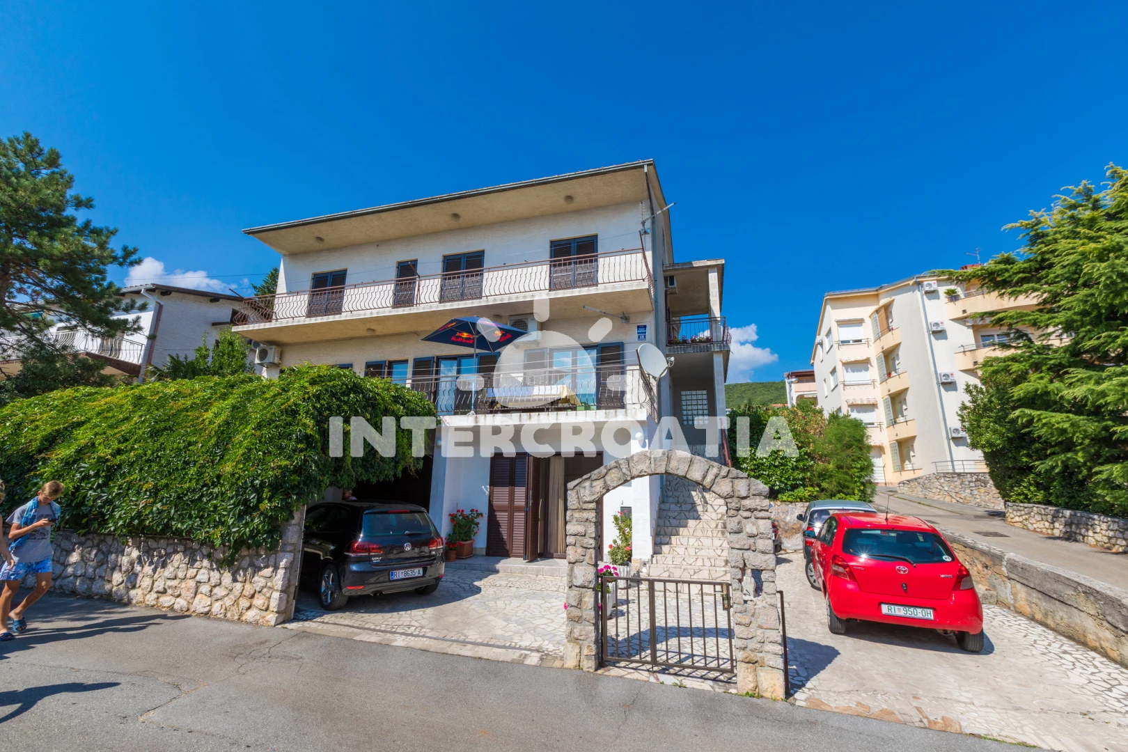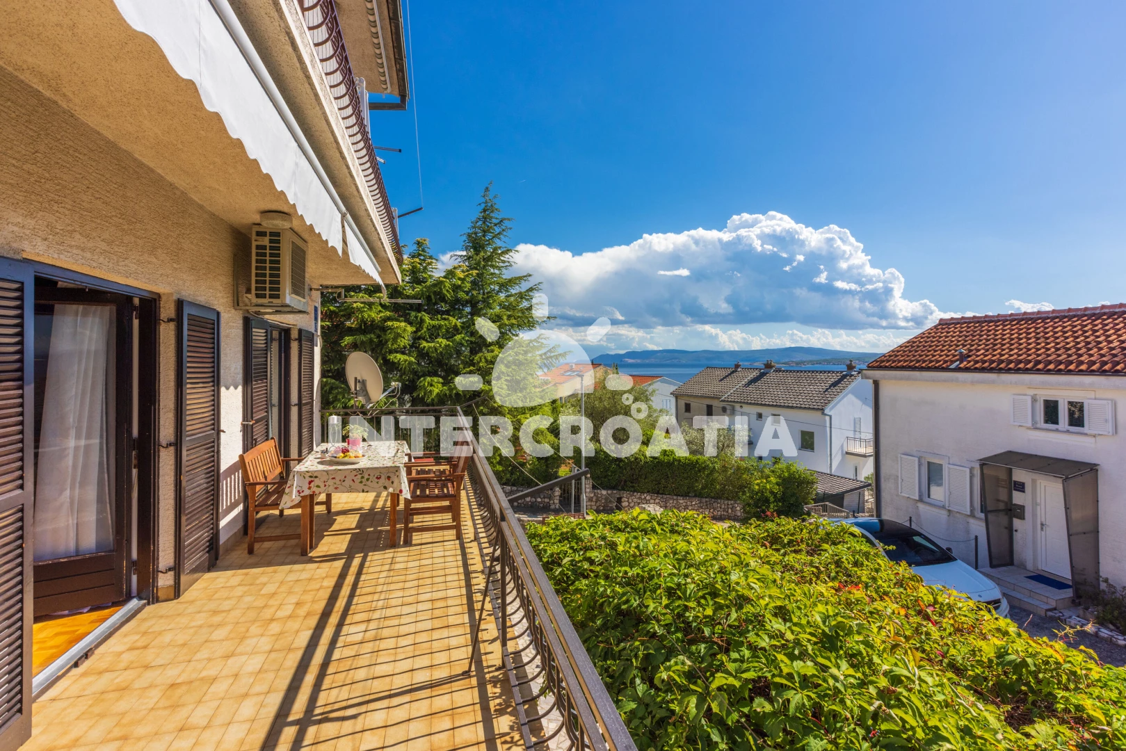 Vzdálenosti: Moře 300 m, pláž 300 m (skalnatá, oblázková, větší kamení a betonové desky), supermarket 300 m, bar 300 m, směnárna 300 m, veřejná doprava 300 m, restaurace 350 m, potápění 1,7 km, ambulance 2 km, centrum 3 km, lékárna 3 km, banka 3 km, diskotéka 3 km, pošta 3,2 km, letiště (Rijeka) 19 km,