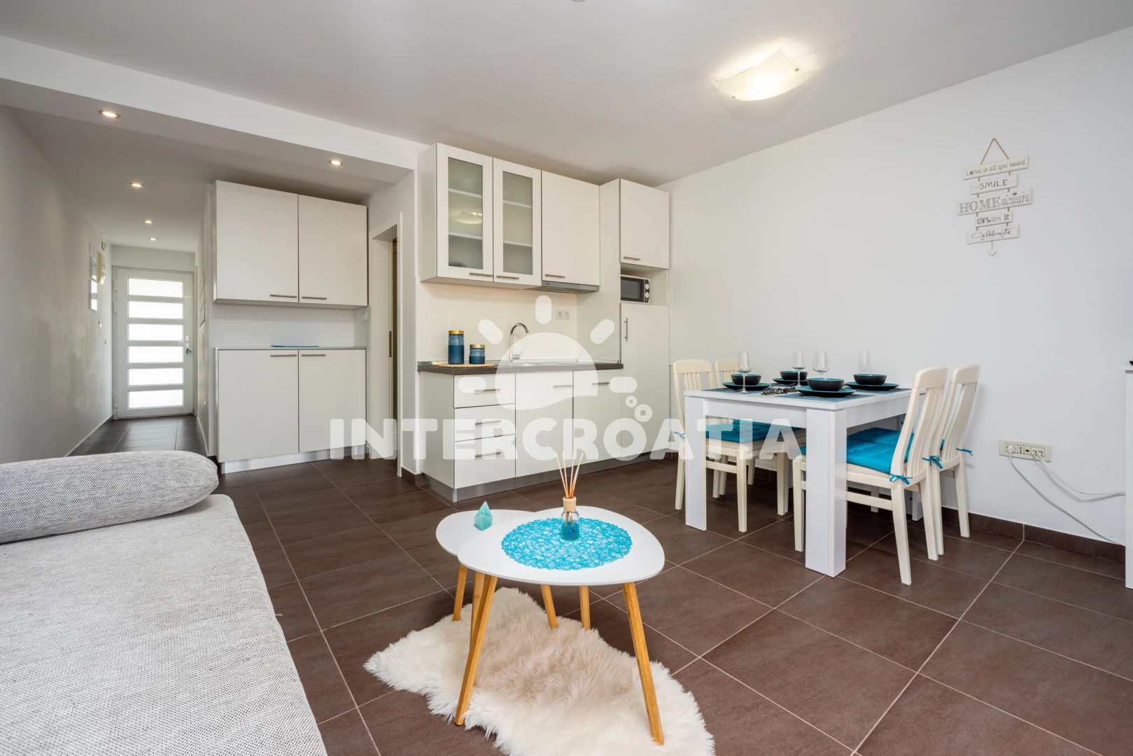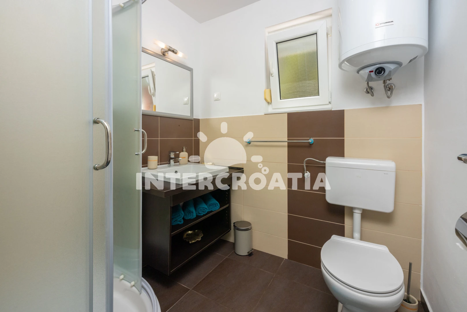 Apartmán se nachází 350 m od moře a pláže. Pláž je oblázková a větší kamení. U objektu je k dispozici společná zahrada s posezením a grilem. Parkování je před domem.