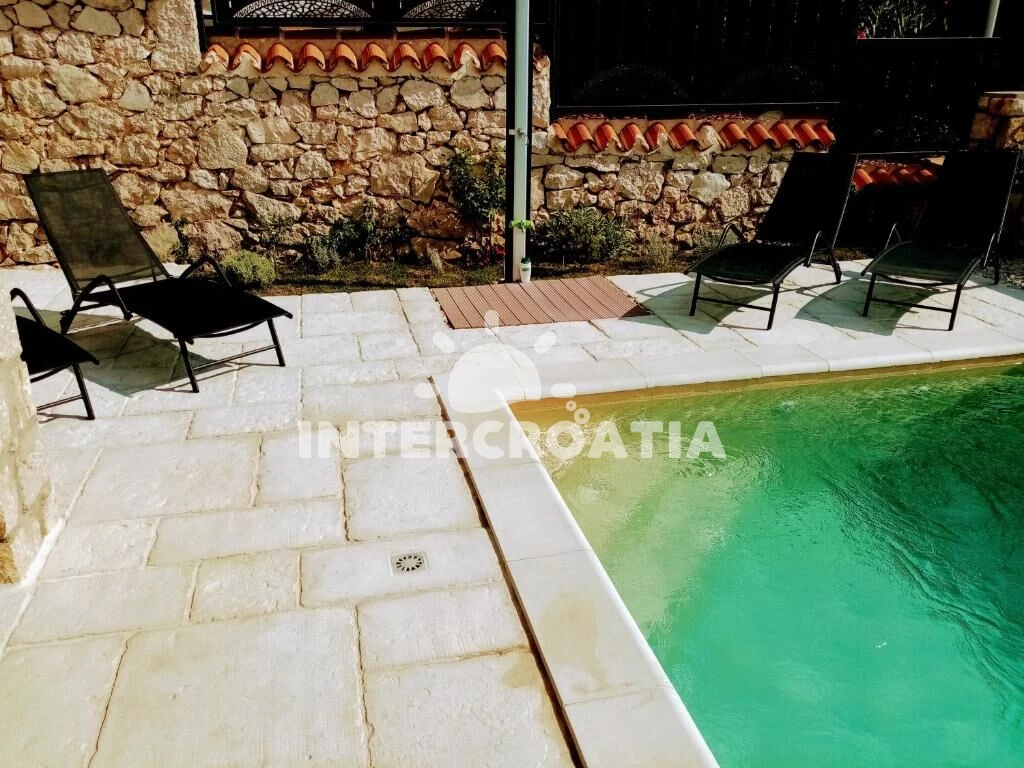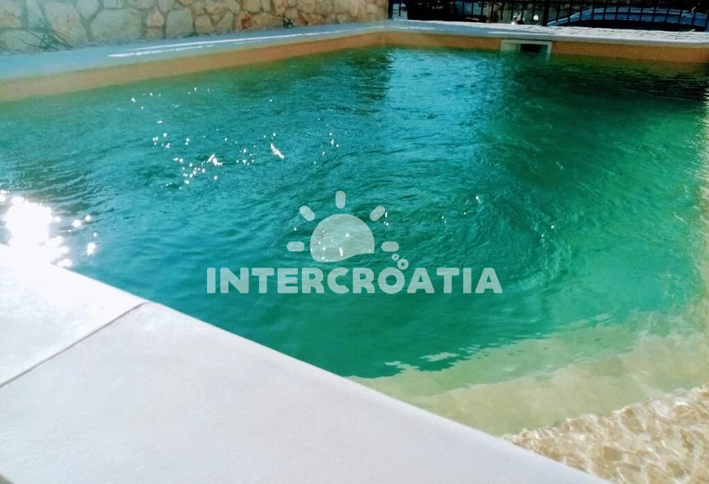 Apartmán se nachází 200 m od moře a pláže. Pláž je skalnatá, oblázková a betonové desky. Apartmán disponuje bazénem s lehátky pro ubytované hosty. U objektu je k dispozici společná zahrada s posezením a grilem. Parkování je před domem.