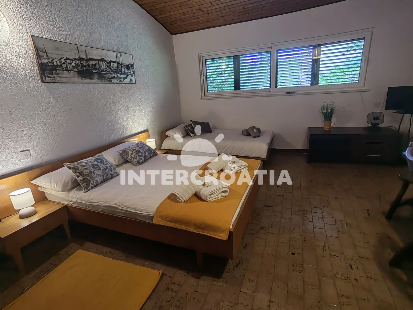 Domácí zvířata nejsou povolena. V ceně pobytu zahrnuto: WiFi, klimatizace (část místností), topení, povlečení, ručníky, závěrečný úklid, pobytová taxa. Pronajímatel se dorozumí chorvatsky, anglicky, německy, Pronajímatel vás bude očekávat po 14:00. V den odjezdu je nutné vyklidit apartmán do 10:00.