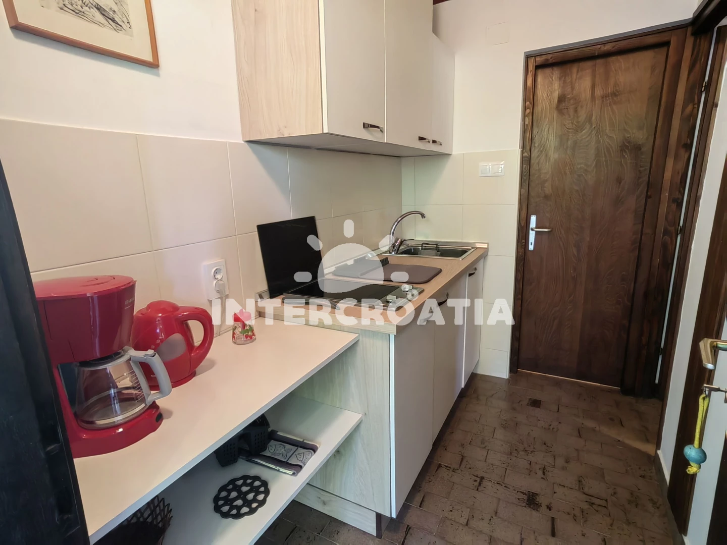 Apartmán typu studio (40 m2) s terasou. Kuchyňská linka je vybavena varnou deskou, kávovarem, toustovačem, rychlovarnou konvicí, nádobím, lednicí, mrazákem. K dispozici dvoulůžko, televize, žehlička.…