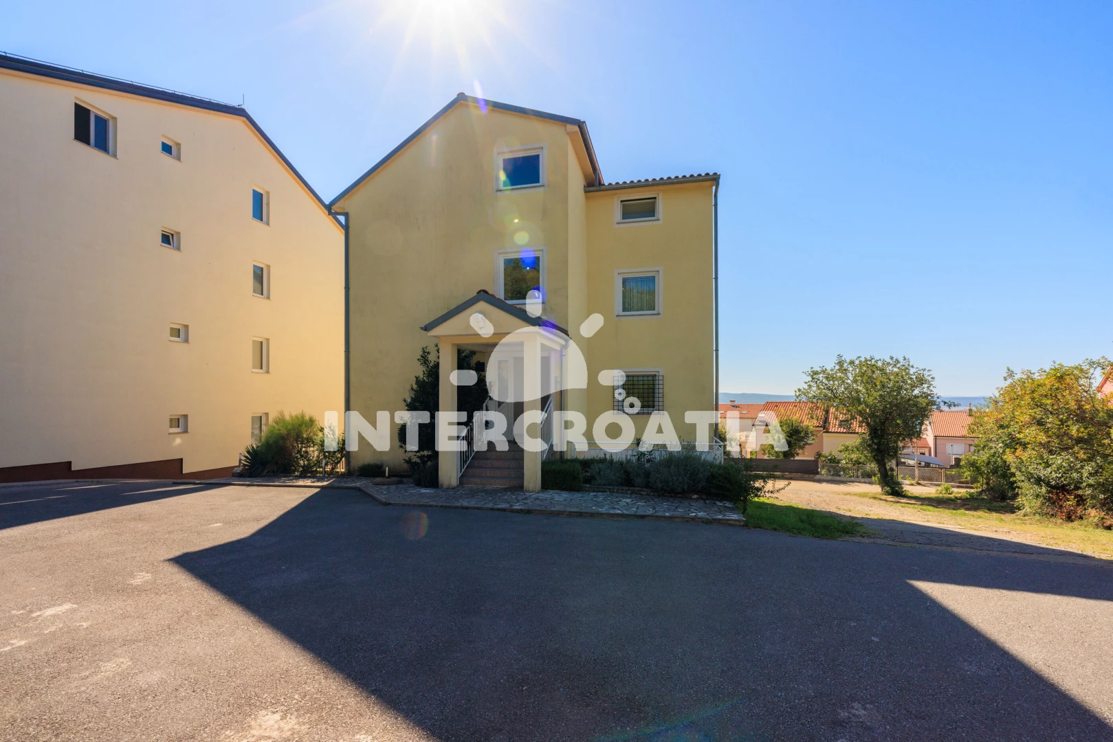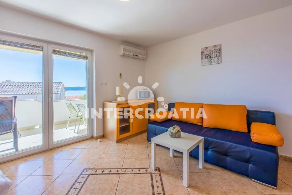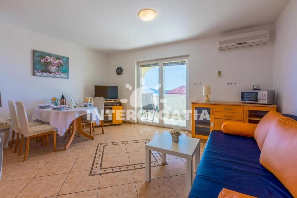 Apartmán se nachází 300 m od moře a pláže. Pláž je oblázková a betonové desky. U objektu je k dispozici společná zahrada s posezením a grilem. Parkování je před domem.