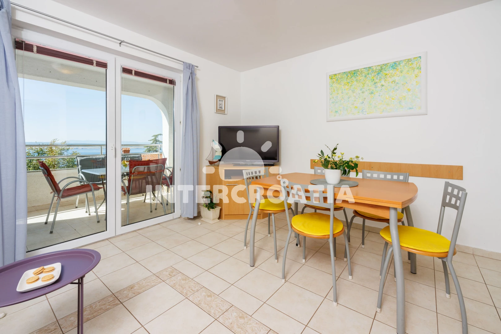 Vzdálenosti: Moře 280 m, pláž 350 m (skalnatá, oblázková a betonové desky), supermarket 100 m, veřejná doprava 100 m, směnárna 100 m, restaurace 200 m, bar 500 m, tenisové kurty 600 m, mini golf 600 m, pošta 1 km, centrum 3 km, lékárna 3 km, banka 3 km, diskotéka 3 km, ambulance 3,5 km, letiště (Rijeka) 25 km,
