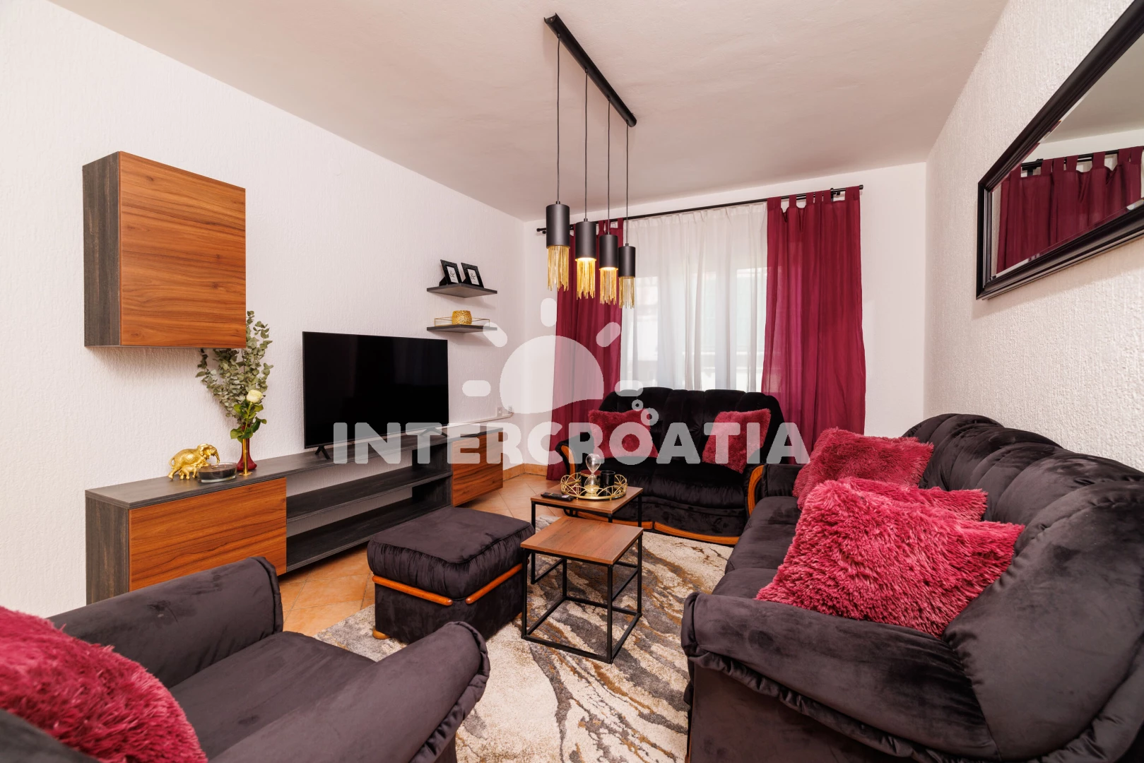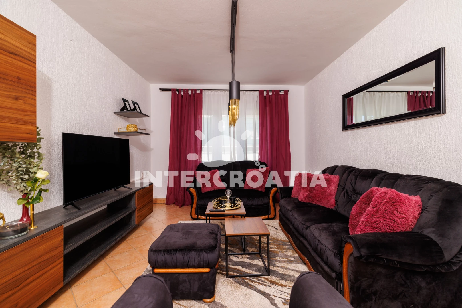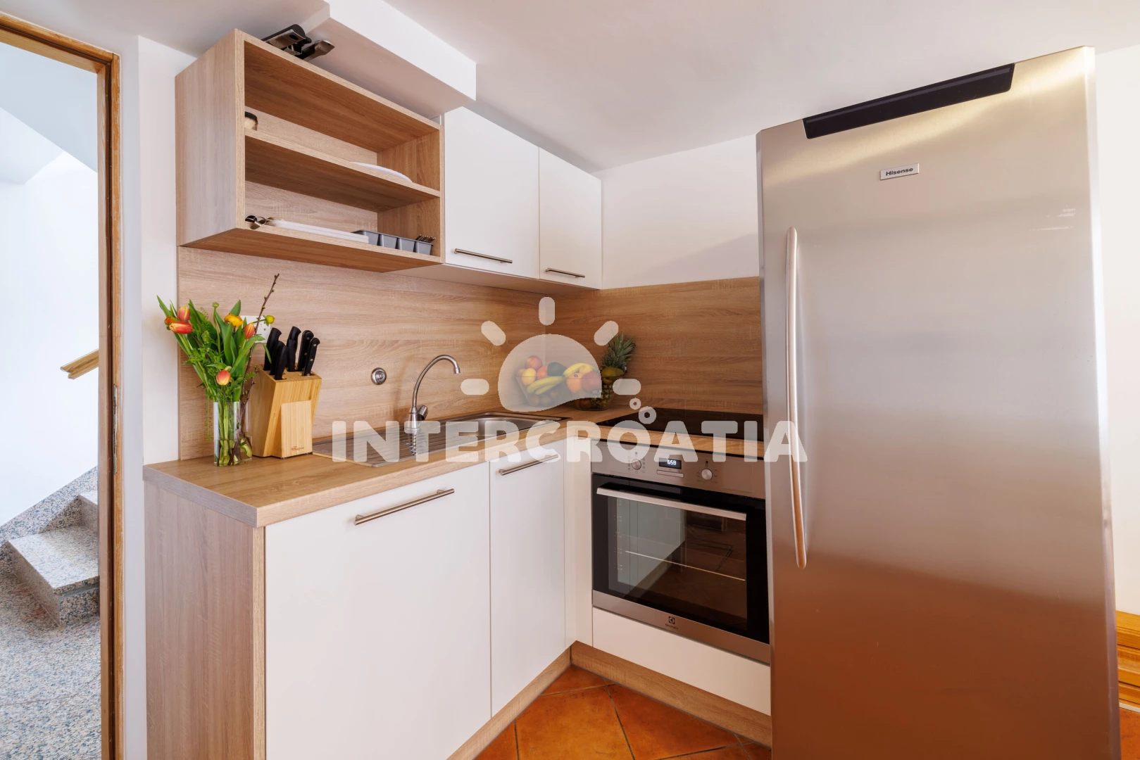Apartmán se nachází 32000 m od moře a pláže. Pláž je skalnatá, oblázková, větší kamení a betonové desky. U objektu je k dispozici společná zahrada s posezením a grilem. Parkování je před domem.