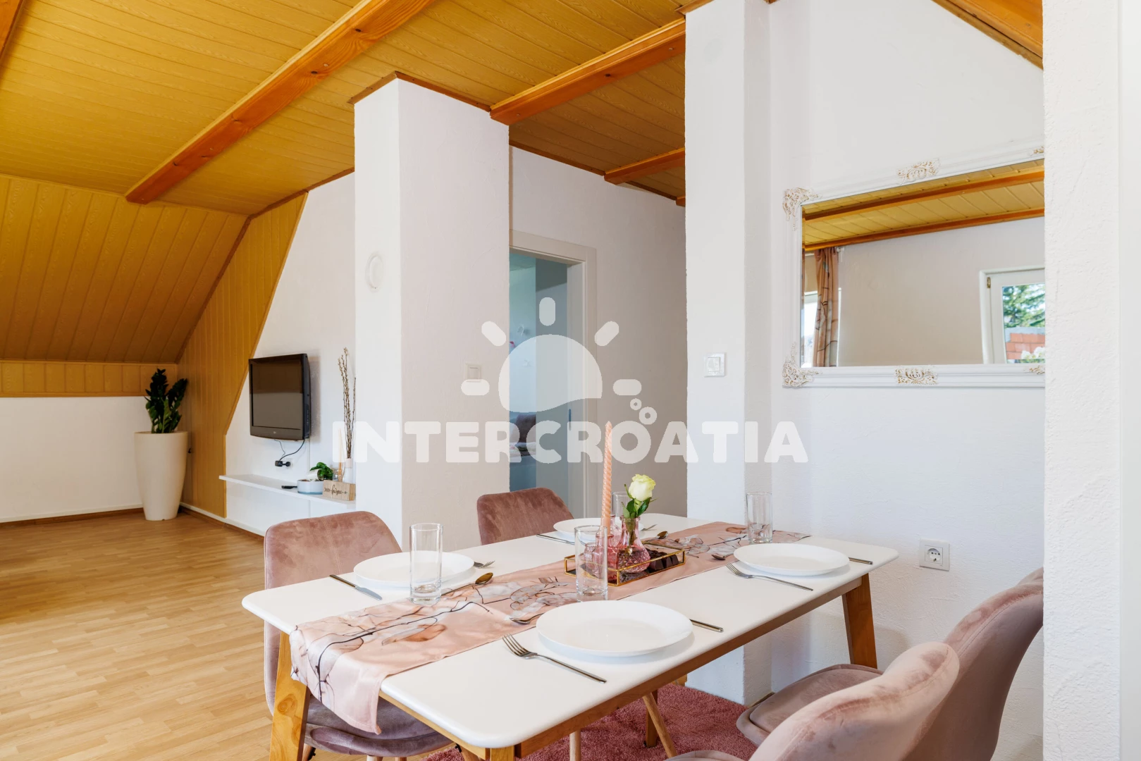 Apartmán (60 m2) s balkonem. Nachází se v podkroví objektu. Apartmán má 1 ložnici a je vhodný pro až 4 osoby. Kuchyňská linka je vybavena varnou deskou, troubou, myčkou na nádobí, rychlovarnou…