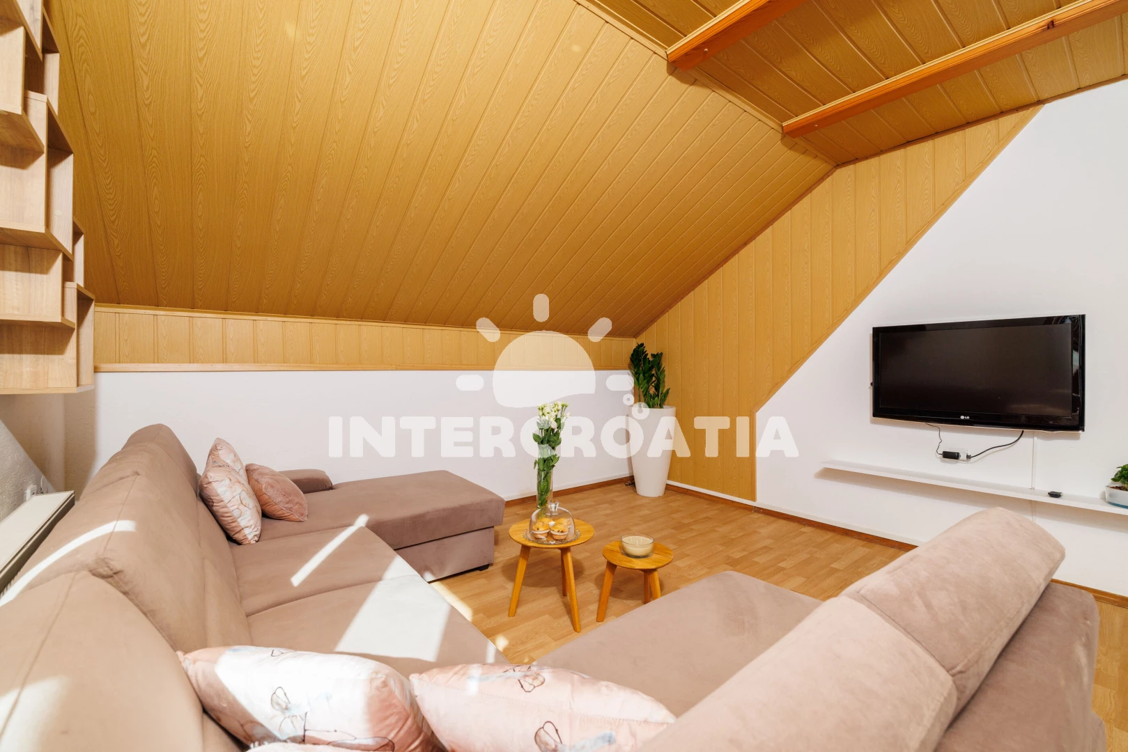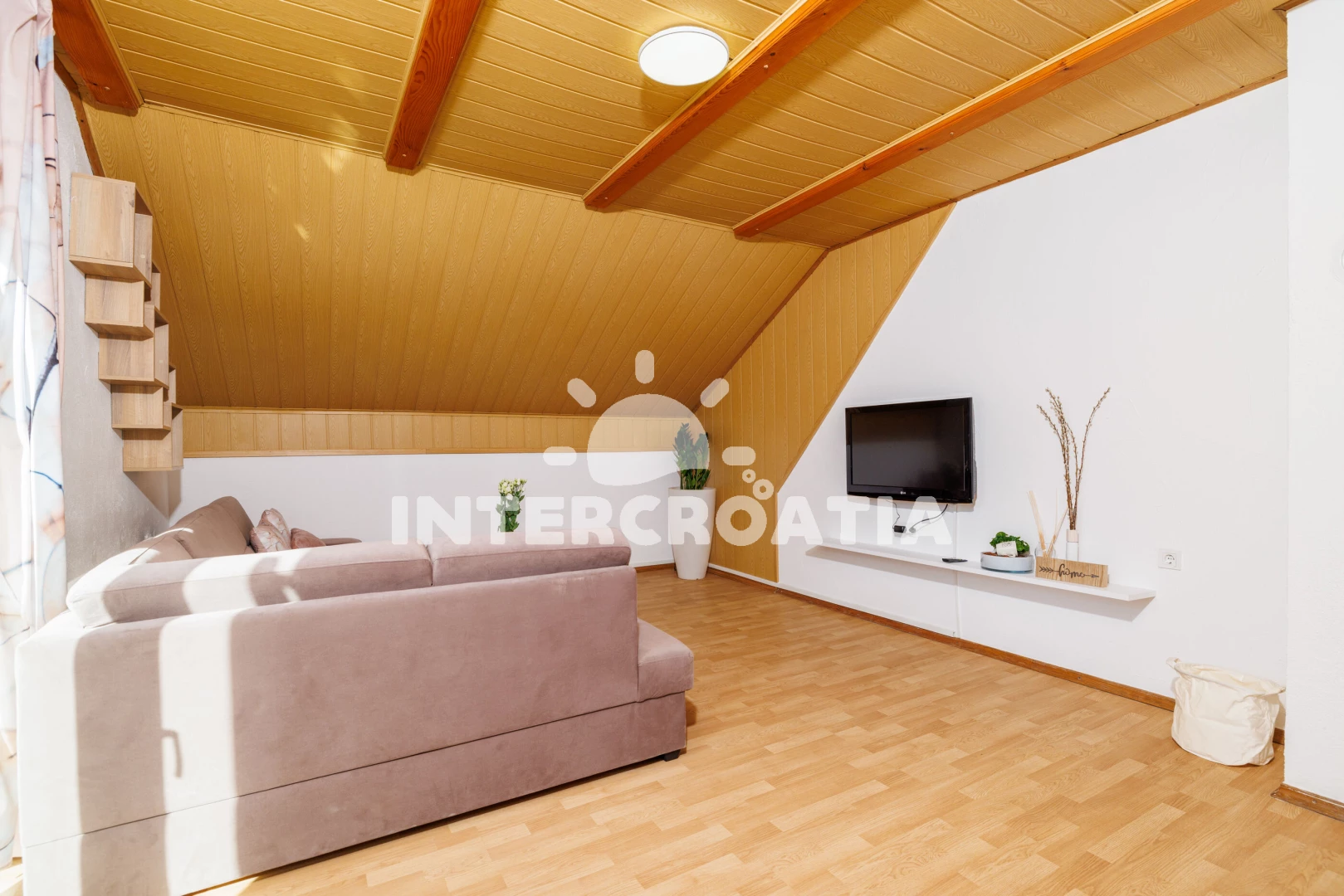 Apartmán (60 m2) s balkonem. Nachází se v podkroví objektu. Apartmán má 1 ložnici a je vhodný pro až 4 osoby. Kuchyňská linka je vybavena varnou deskou, troubou, myčkou na nádobí, rychlovarnou konvicí, nádobím, lednicí, mrazákem. V obývací místnosti je rozložitelná pohovka (extra lůžko pro 2 osoby). K dispozici televize se satelitním programem, žehlička. Ložnice s dvoulůžkem. Koupelna s vanou, umyvadlem, fénem a WC.