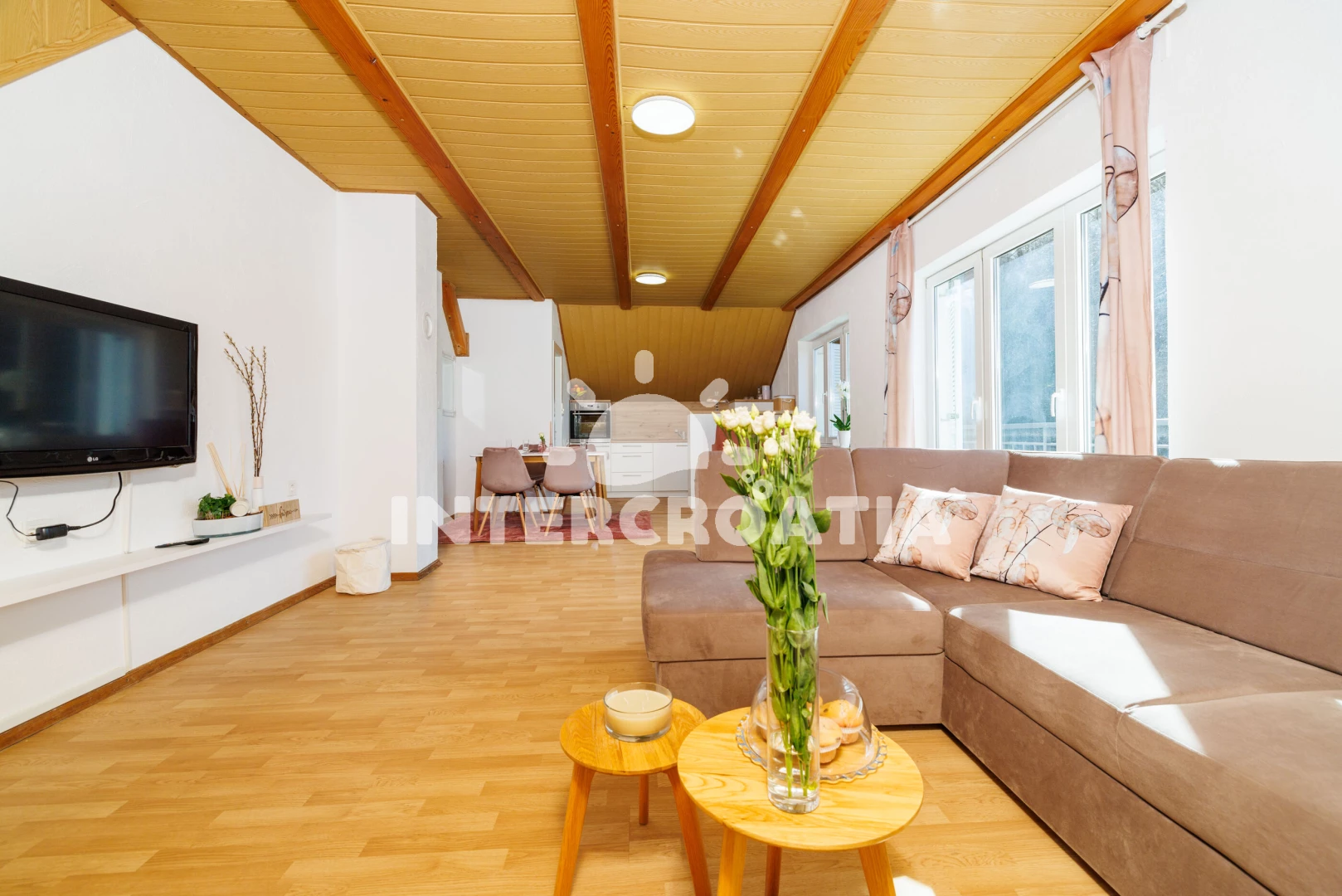 Apartmán se nachází 32000 m od moře a pláže. Pláž je skalnatá, oblázková, větší kamení a betonové desky. U objektu je k dispozici společná zahrada s posezením a grilem. Parkování je před domem.