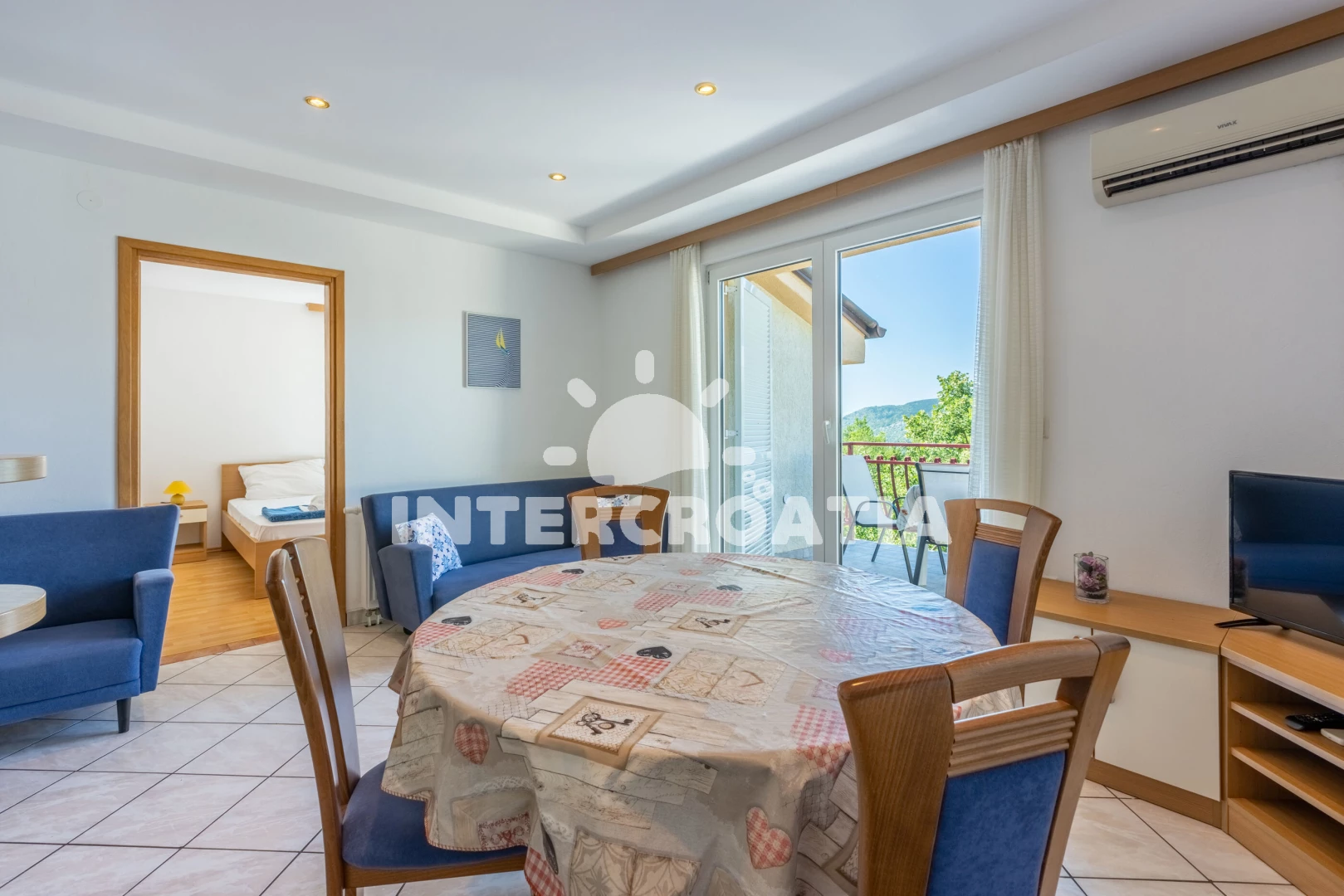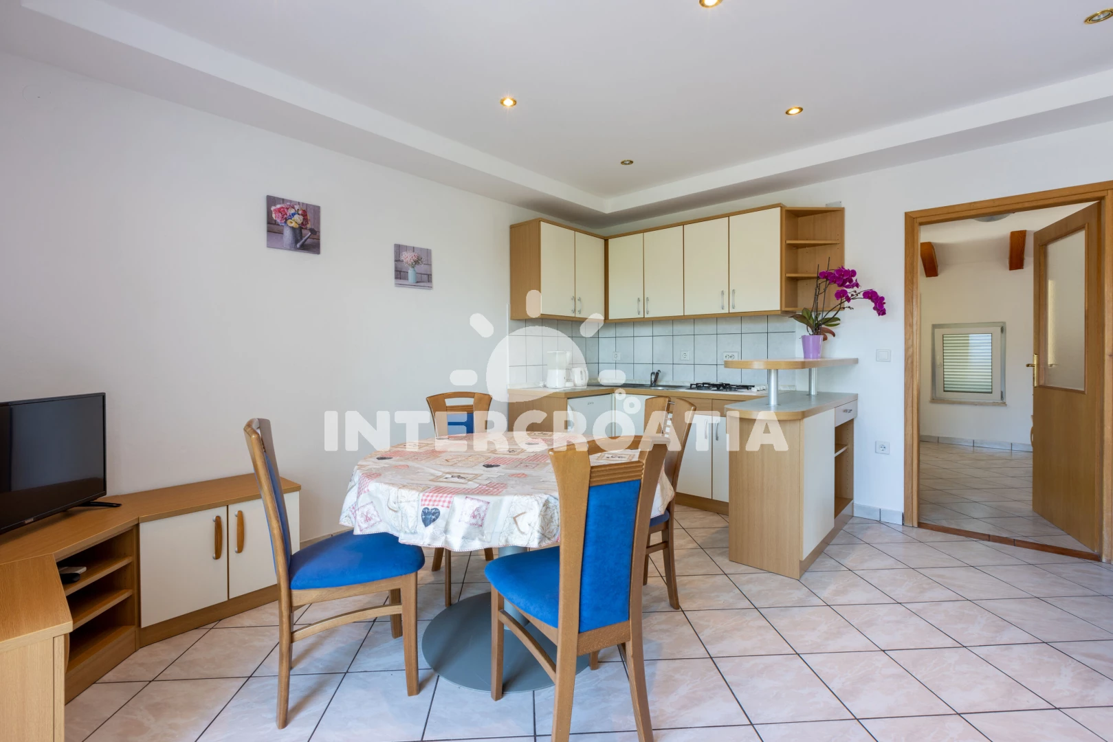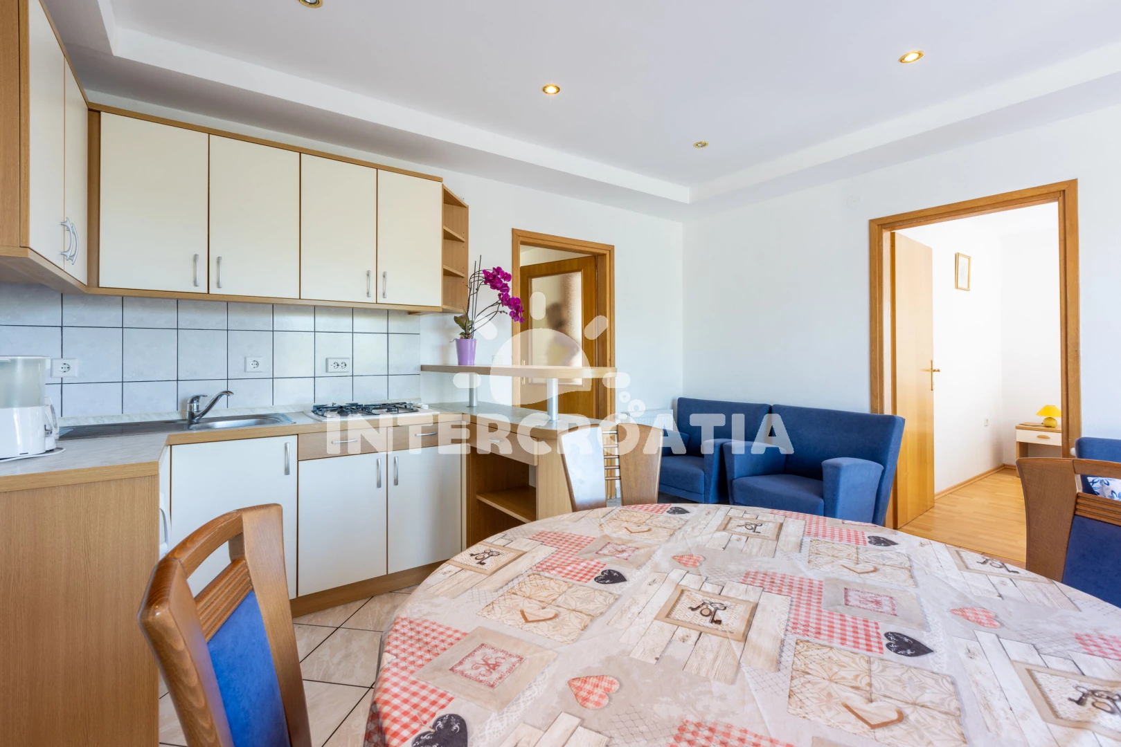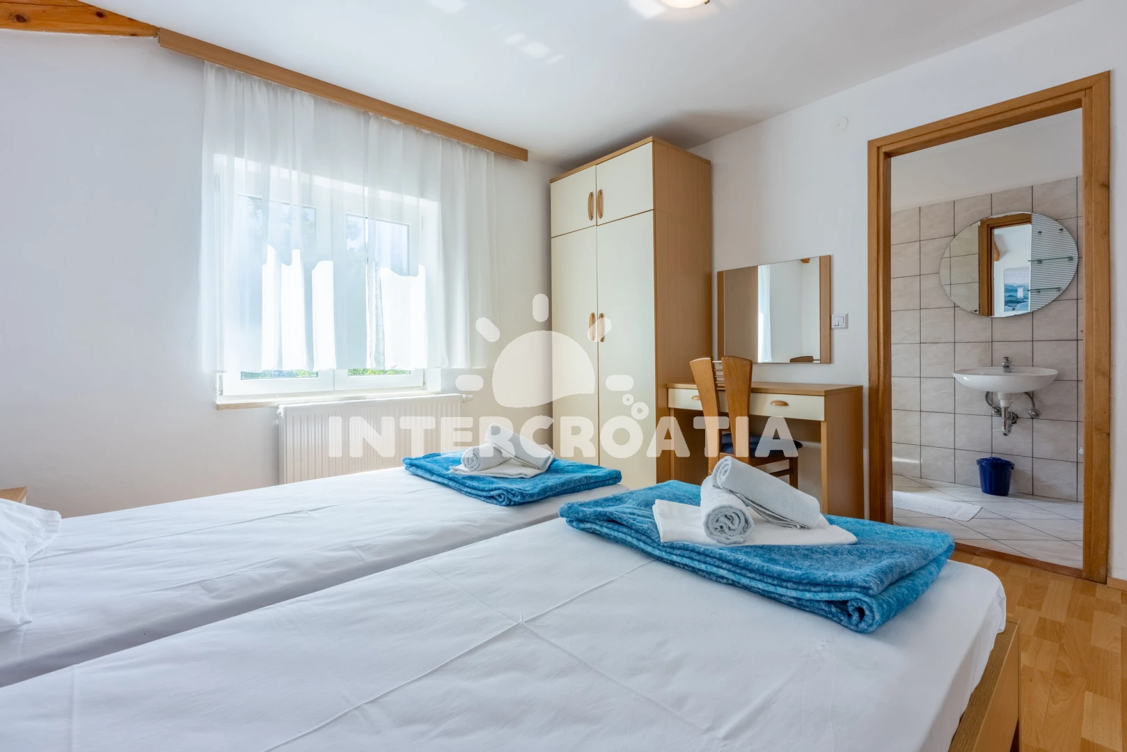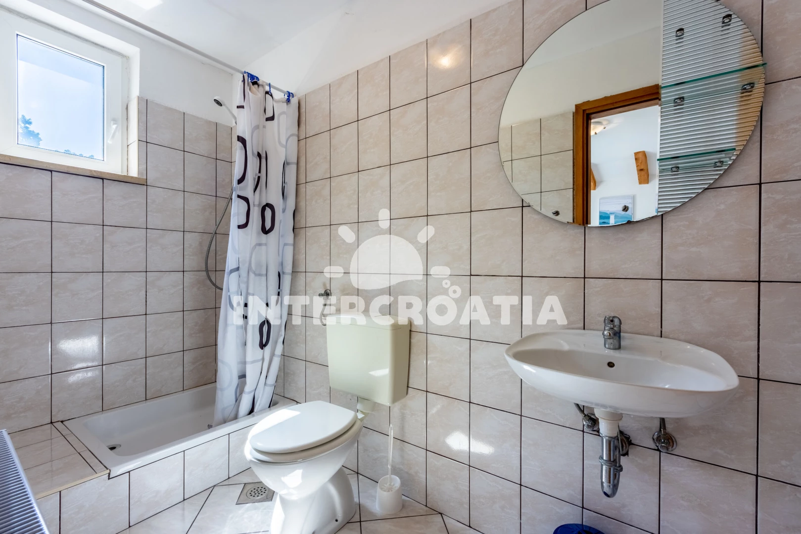 Byt ve 2. patře s balkonem byl pěkný a velký, čistý a prostorný. Hlavní ložnice s koupelnou a pokoj se 3 lůžky. V samostatné koupelně je dokonce pračka se saponátem. Chladnička nemá mrazicí přihrádku. Klimatizace byla dobrá, protože bylo 38 stupňů, ale bohužel stálo 6 EUR/den navíc. Je zde velmi klid, protože byt je na samotě. Nejbližší pláž v Novi Vinodolski nebo Crikvenici je 10-15 km daleko.