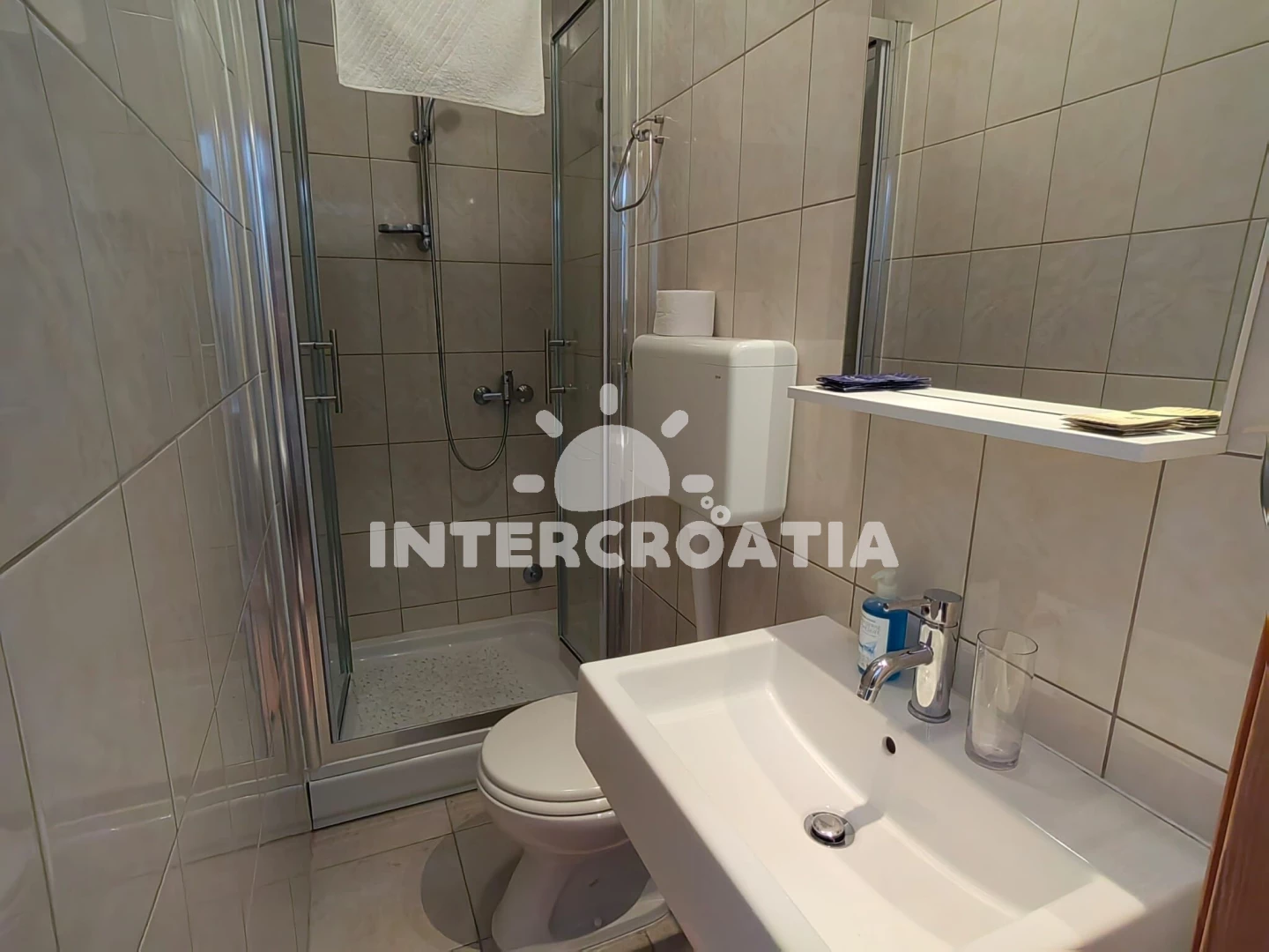 Apartmán se nachází 5000 m od moře a pláže. Pláž je oblázková a betonové desky. U objektu je k dispozici společná zahrada s posezením a grilem. Parkování je před domem.