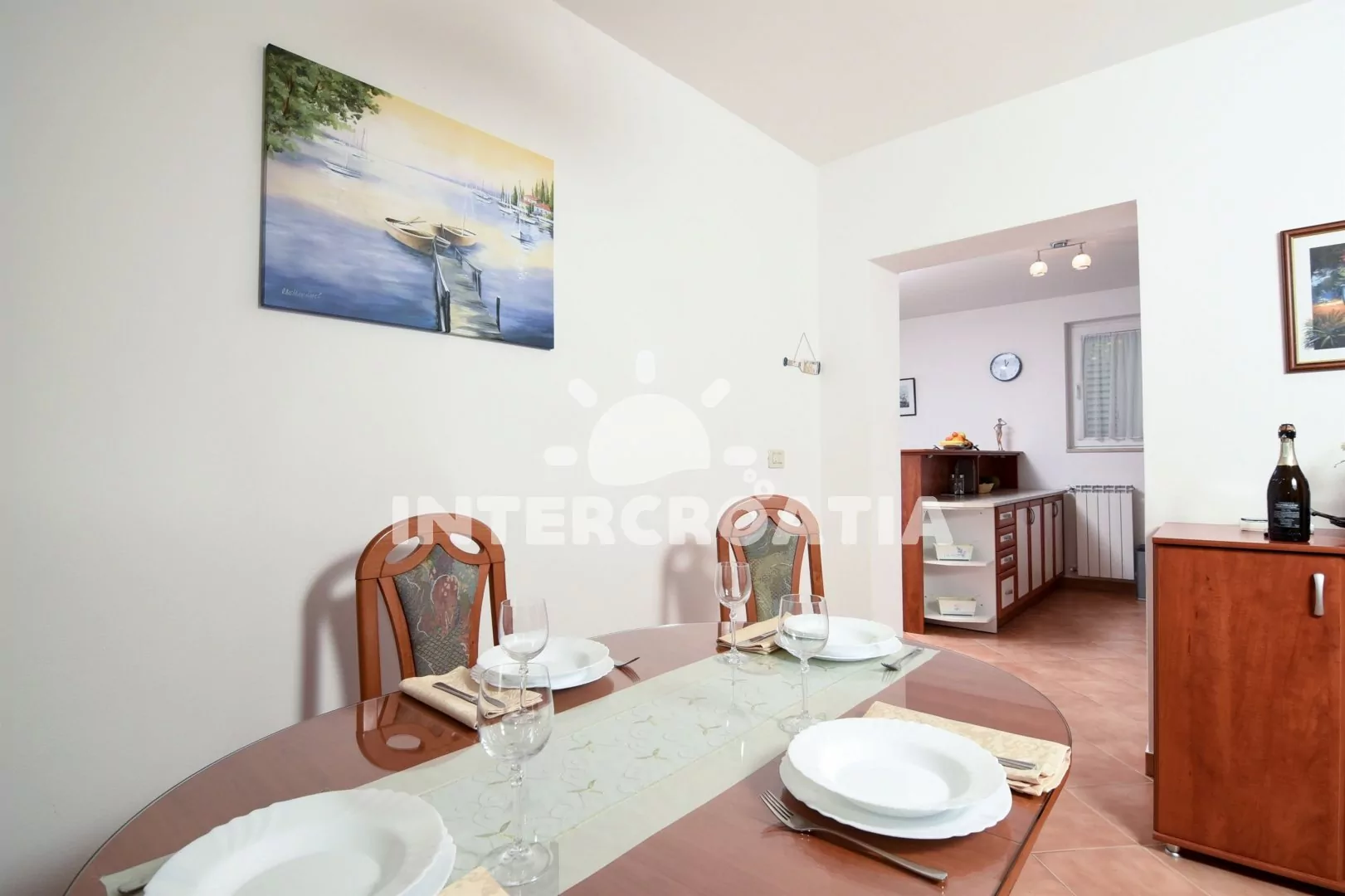 Apartmánová vila s upravenou zahradou, terasou, venkovním posezením a grilem. Vila se nachází 1,5 km pěší chůzí a 3 km jízdy autem od moře. Parkovací místa přímo u objektu.