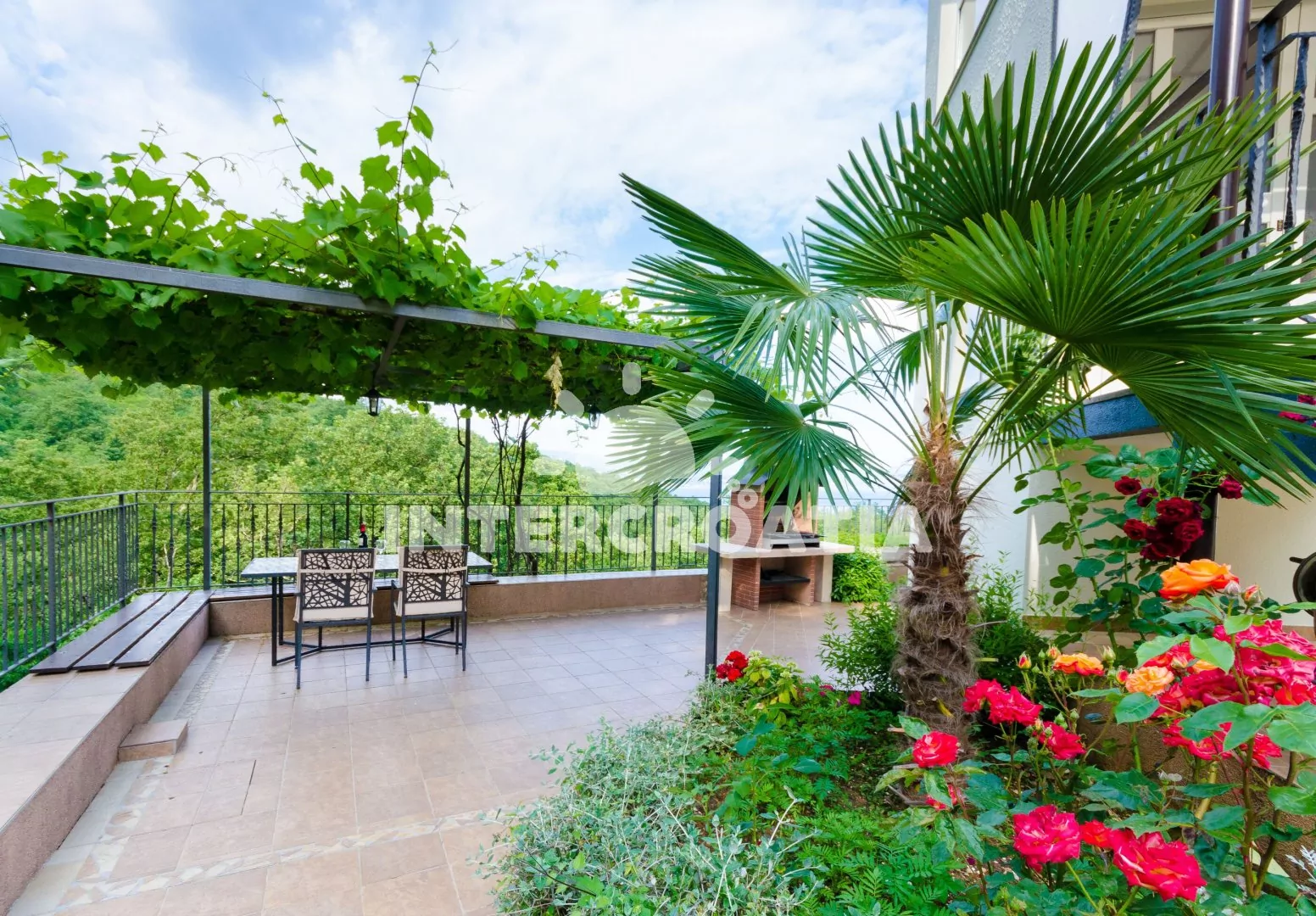 Apartmán (60 m2) s terasou se nachází v 2. patře vily a je vhodný pro 2 až 4 osoby. Obývací pokoj je spojený s kuchyní. Kuchyňská linka je vybavena sporákem, troubou, digestoří, myčkou na nádobí,…