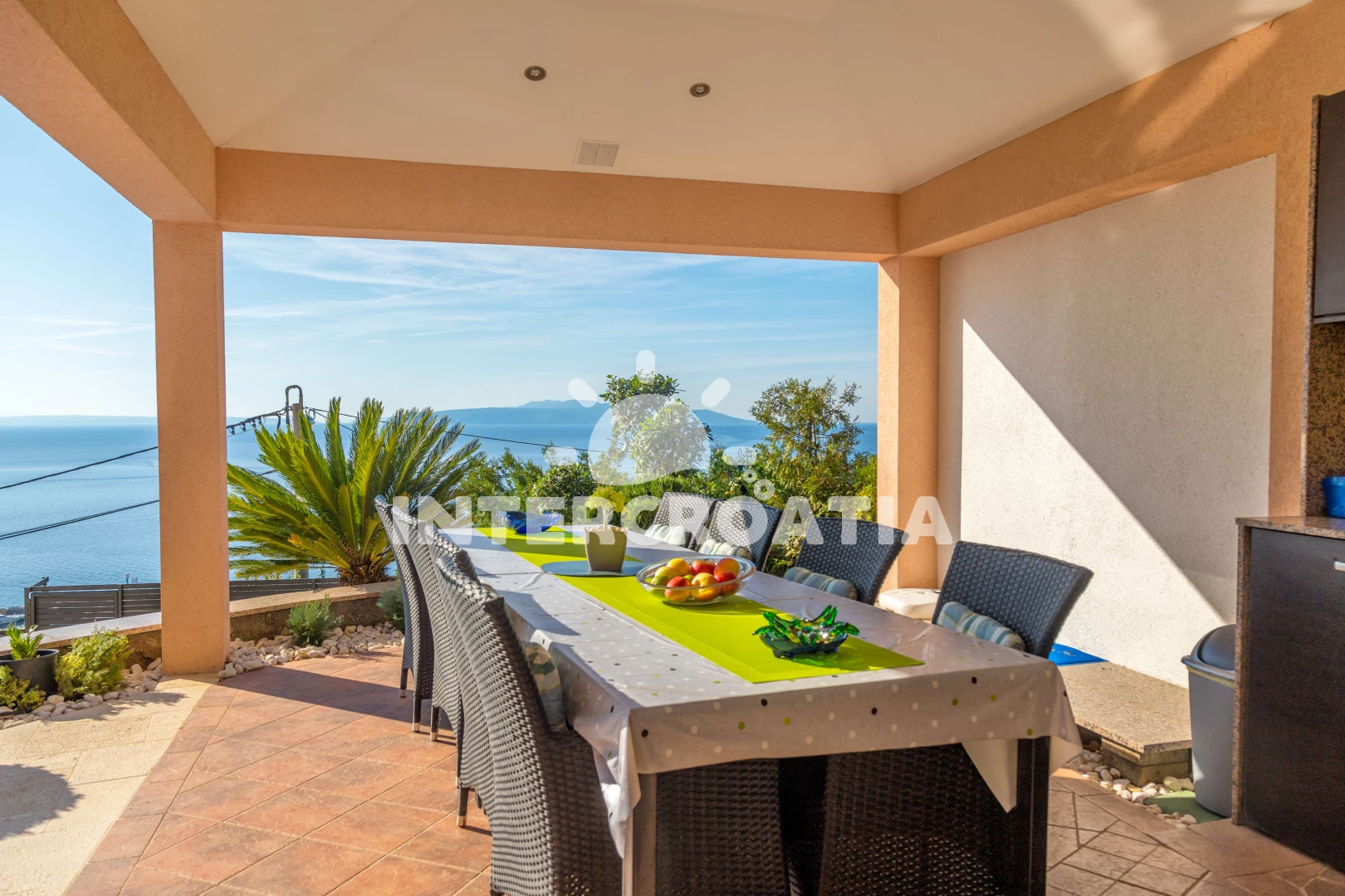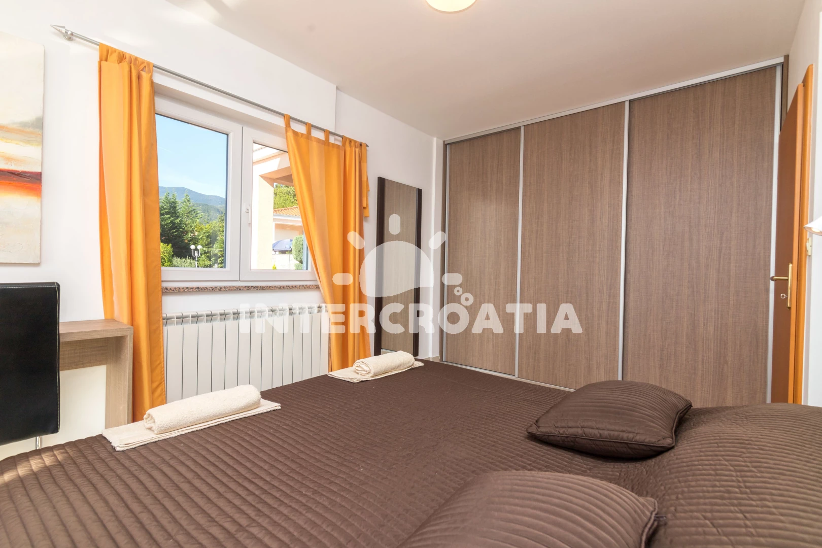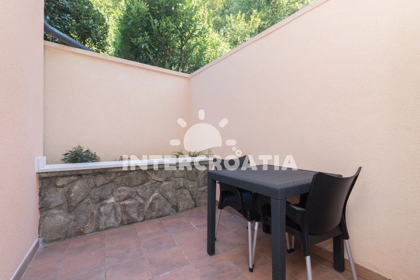 Vzdálenosti: Moře 300 m, pláž 500 m (oblázková a betonové desky), veřejná doprava 30 m, směnárna 200 m, supermarket 200 m, ambulance 200 m, lékárna 200 m, centrum 200 m, marina 300 m, muzeum 300 m, potápění 300 m, tenisové kurty 300 m, půjčovna kol 300 m, bar 300 m, restaurace 300 m, pošta 300 m, půjčovna motorových člunů 300 m, banka 300 m, čerpací stanice 300 m, kotviště pro čluny 400 m, diskotéka 1 km, trajekt (Rijeka) 15 km, letiště (Rijeka) 35 km,