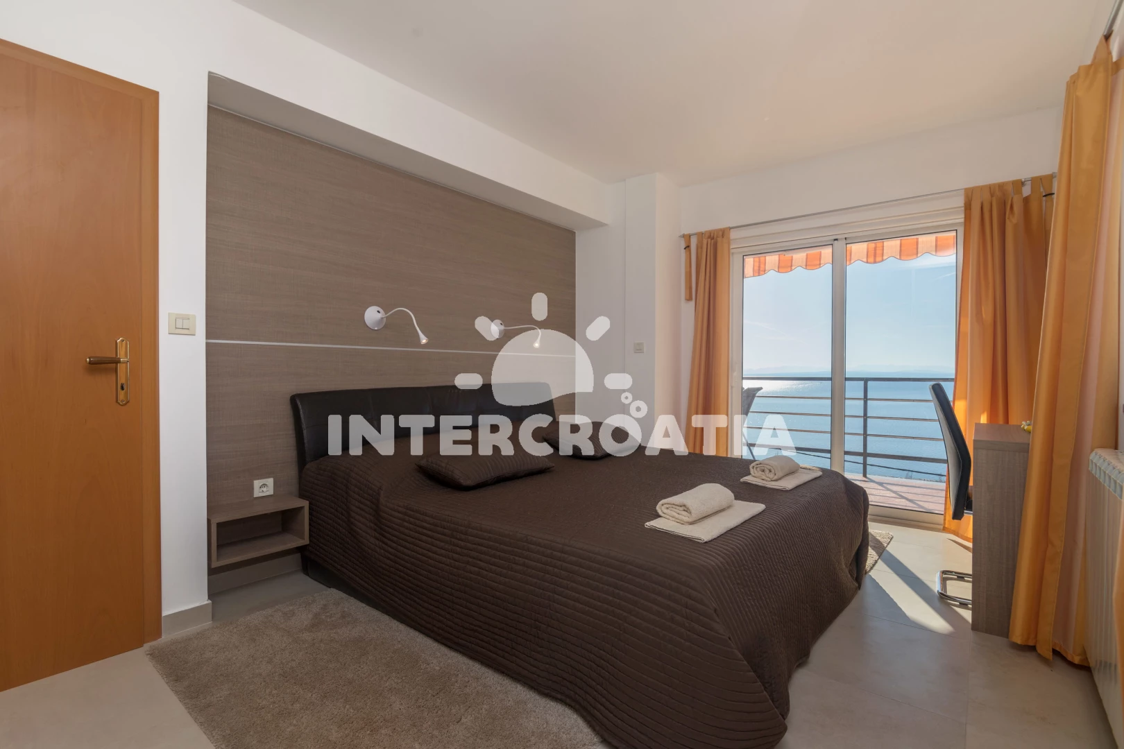 Apartmán (75 m2) s balkonem, s terasou, a výhledem na moře. Nachází se v 1. patře objektu. Apartmán má 2 ložnice a je vhodný pro až 4 osoby. Kuchyňská linka je vybavena varnou deskou, troubou, kávovarem, mikrovlnnou troubou, rychlovarnou konvicí, nádobím, lednicí, mrazákem. K dispozici televize se satelitním programem, sejf, žehlička. První ložnice s dvoulůžkem. Druhá ložnice s dvoulůžkem. První koupelna se sprchovým koutem, umyvadlem, fénem a WC. Druhá koupelna se sprchovým koutem, umyvadlem, fénem a WC.