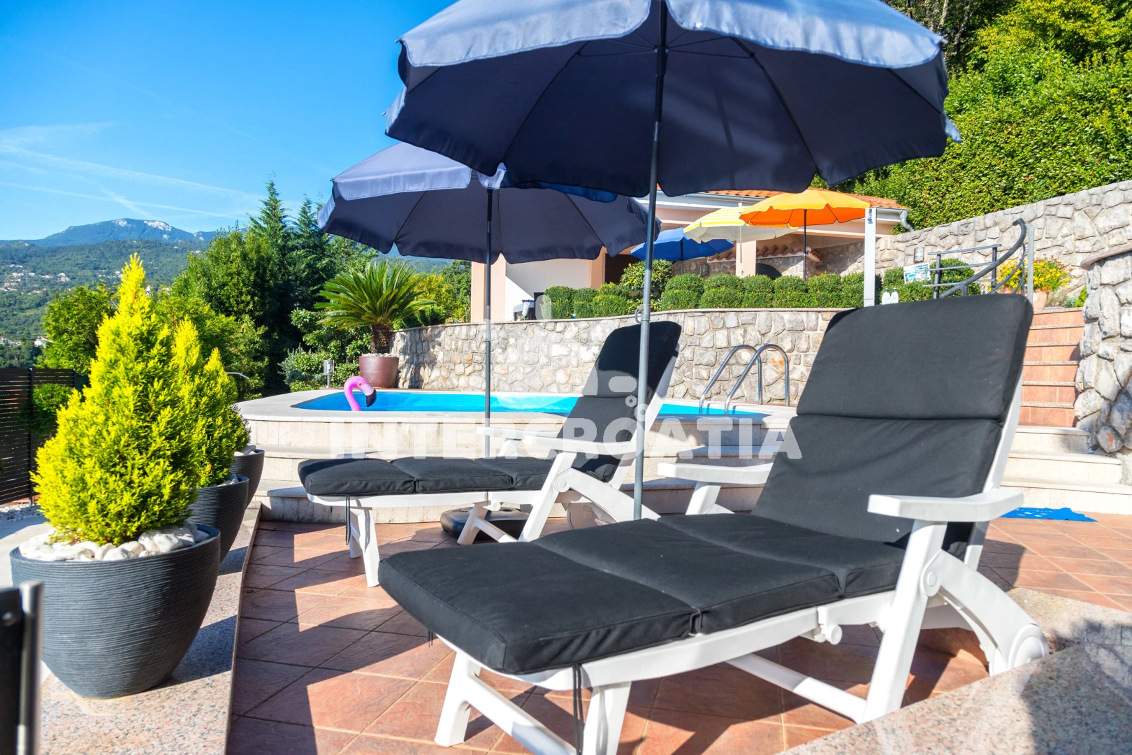 Die Wohnung liet oberhalb von Icici ganz nah bei Opatija, mit dem Auto kein Problem, mit Fahrrrad und zu Fuss anstrengend, aber tolle Aussicht auf Kvarner Bucht. Schöne Aussenanlage mit Pool. Eigentümr sehr freundlich.