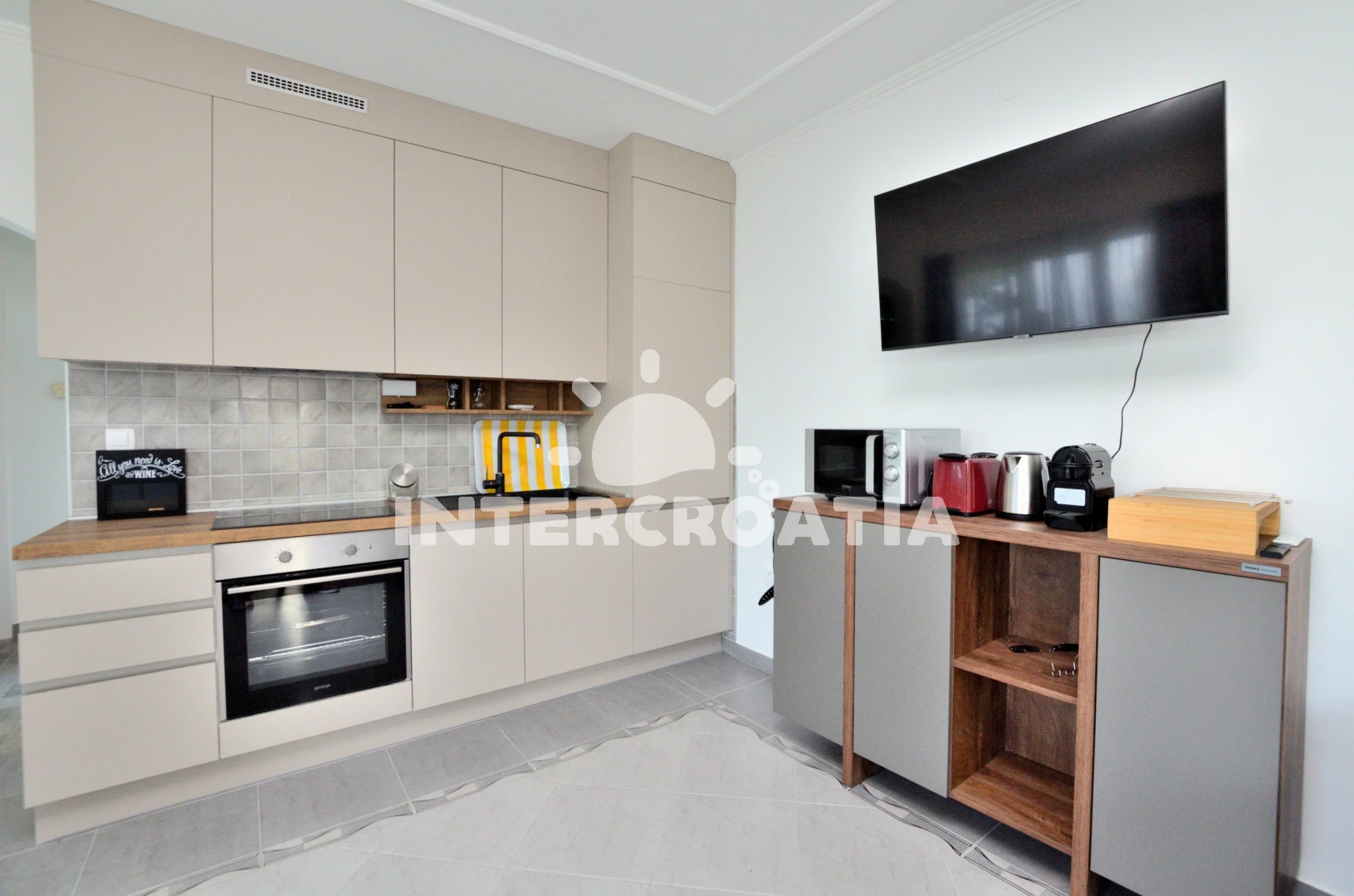 Apartmán (2) s terasou. Nachází se v objektu. Apartmán má 1 ložnici a je vhodný pro až 0 osoby. Kuchyňská linka je vybavena varnou deskou, toustovačem, kávovarem, troubou, myčkou na nádobí,…