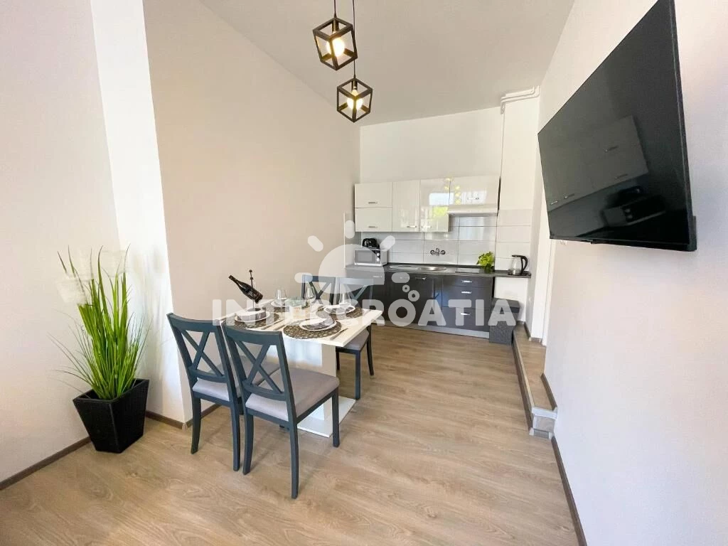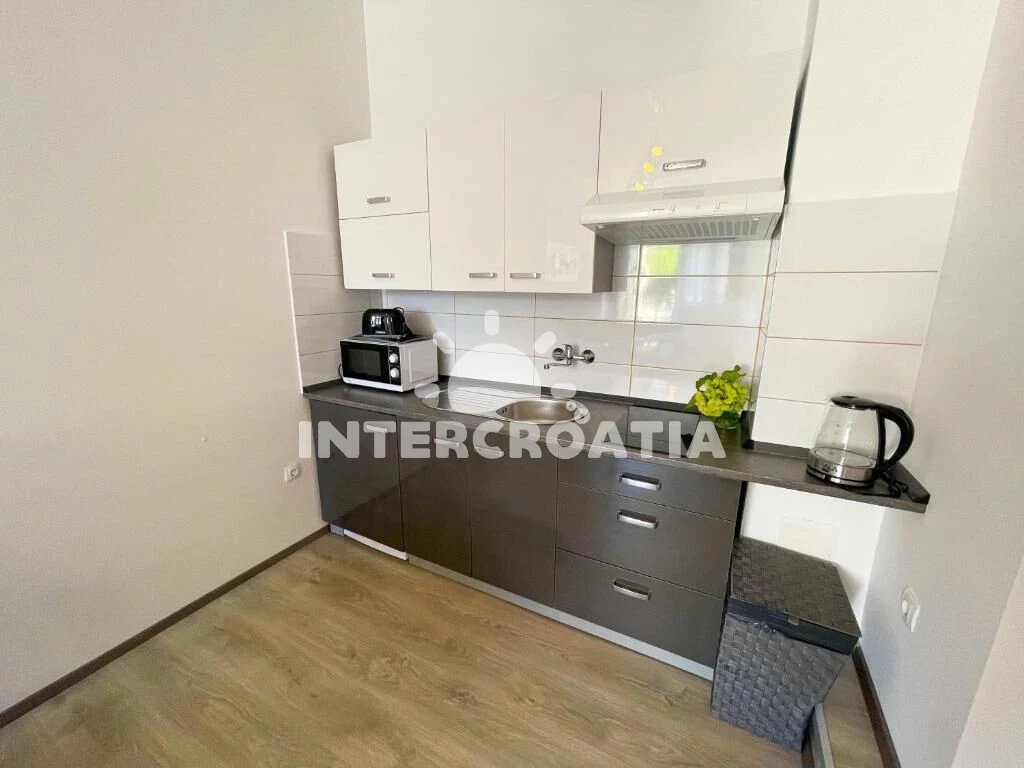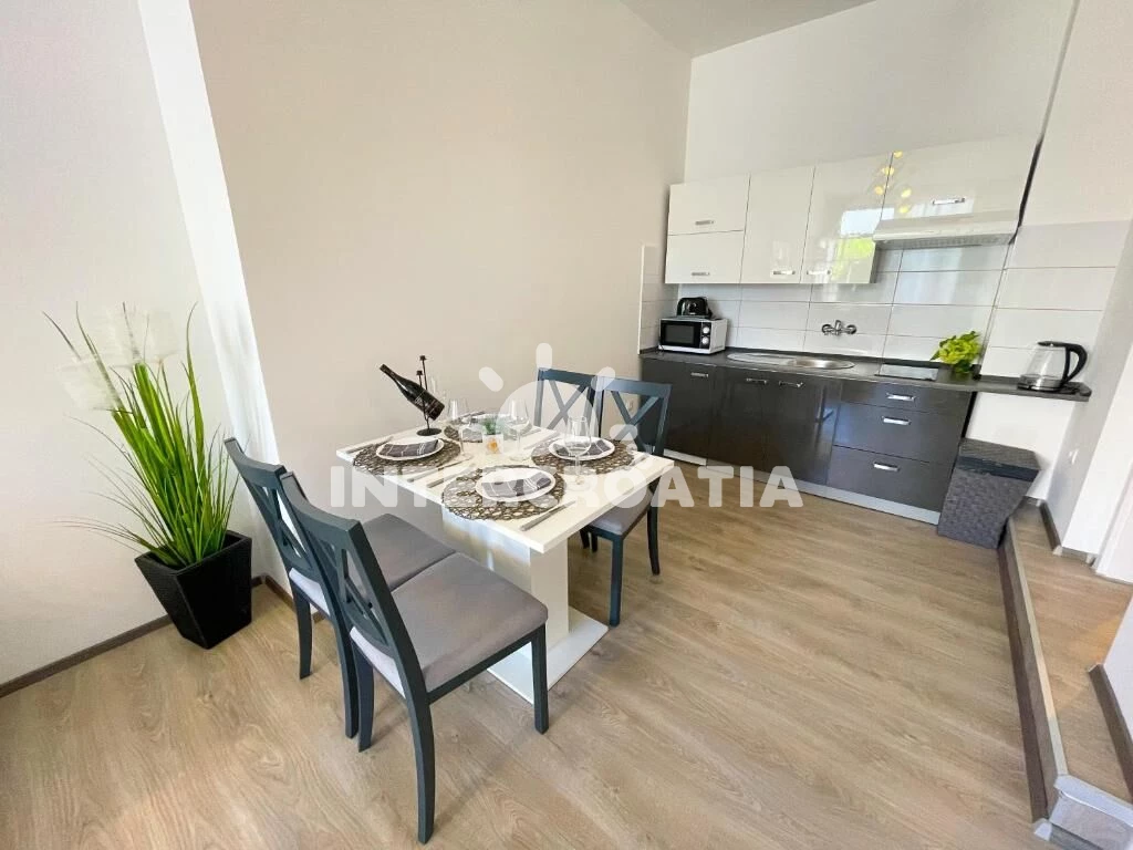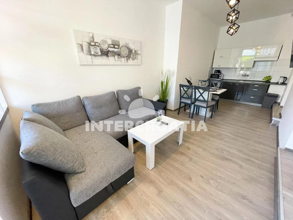 Apartmán (40 m2) s terasou. Nachází se v přízemí objektu. Apartmán má 2 ložnice a je vhodný pro až 4 osoby. Kuchyňská linka je vybavena varnou deskou, toustovačem, mikrovlnnou troubou, rychlovarnou konvicí, nádobím, lednicí. K dispozici televize. Druhá ložnice s dvoulůžkem. První ložnice s dvoulůžkem. Koupelna se sprchovým koutem, umyvadlem, fénem a WC.