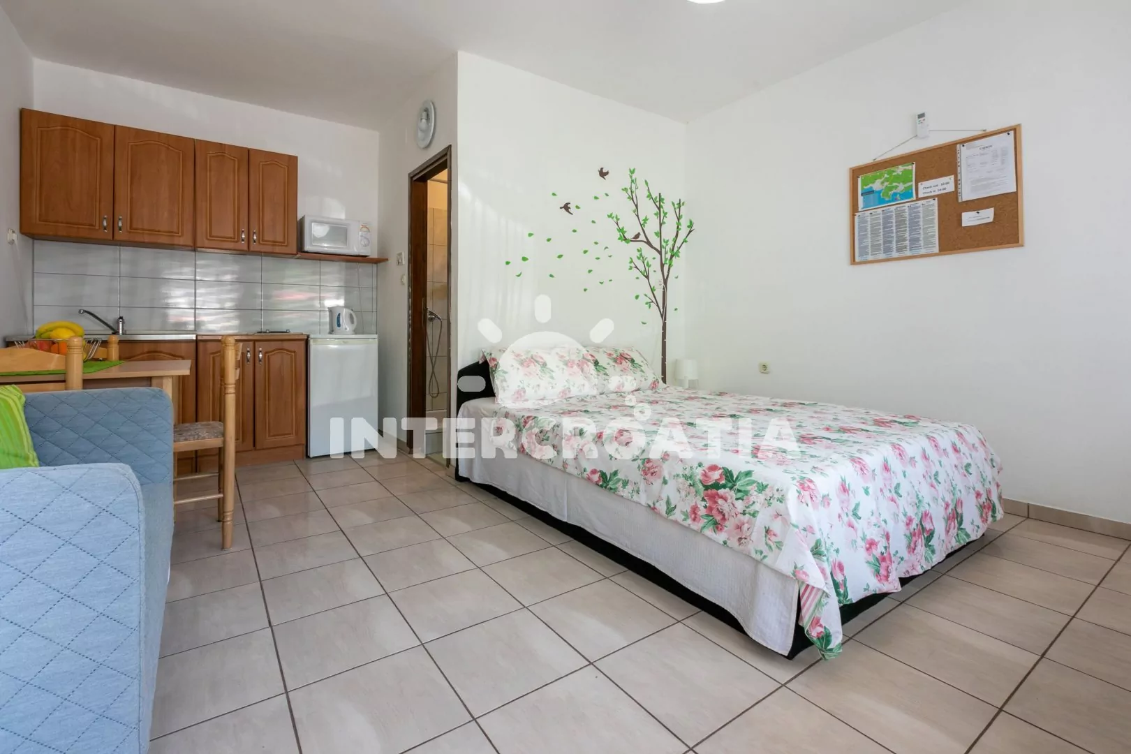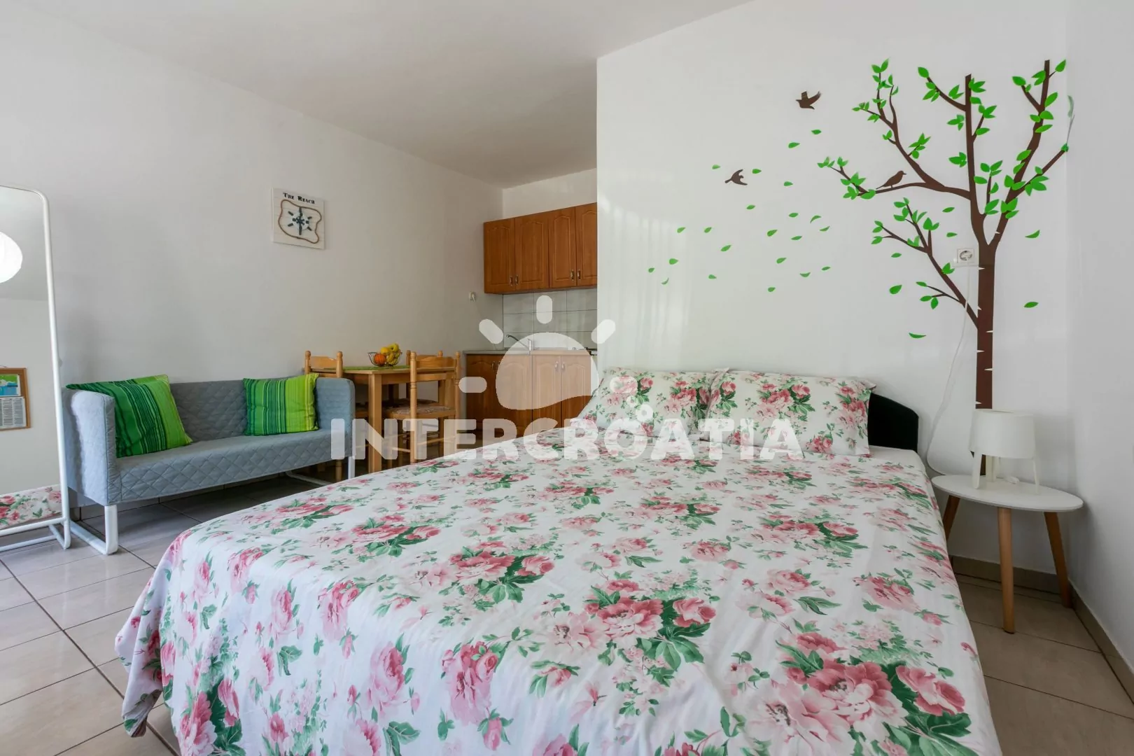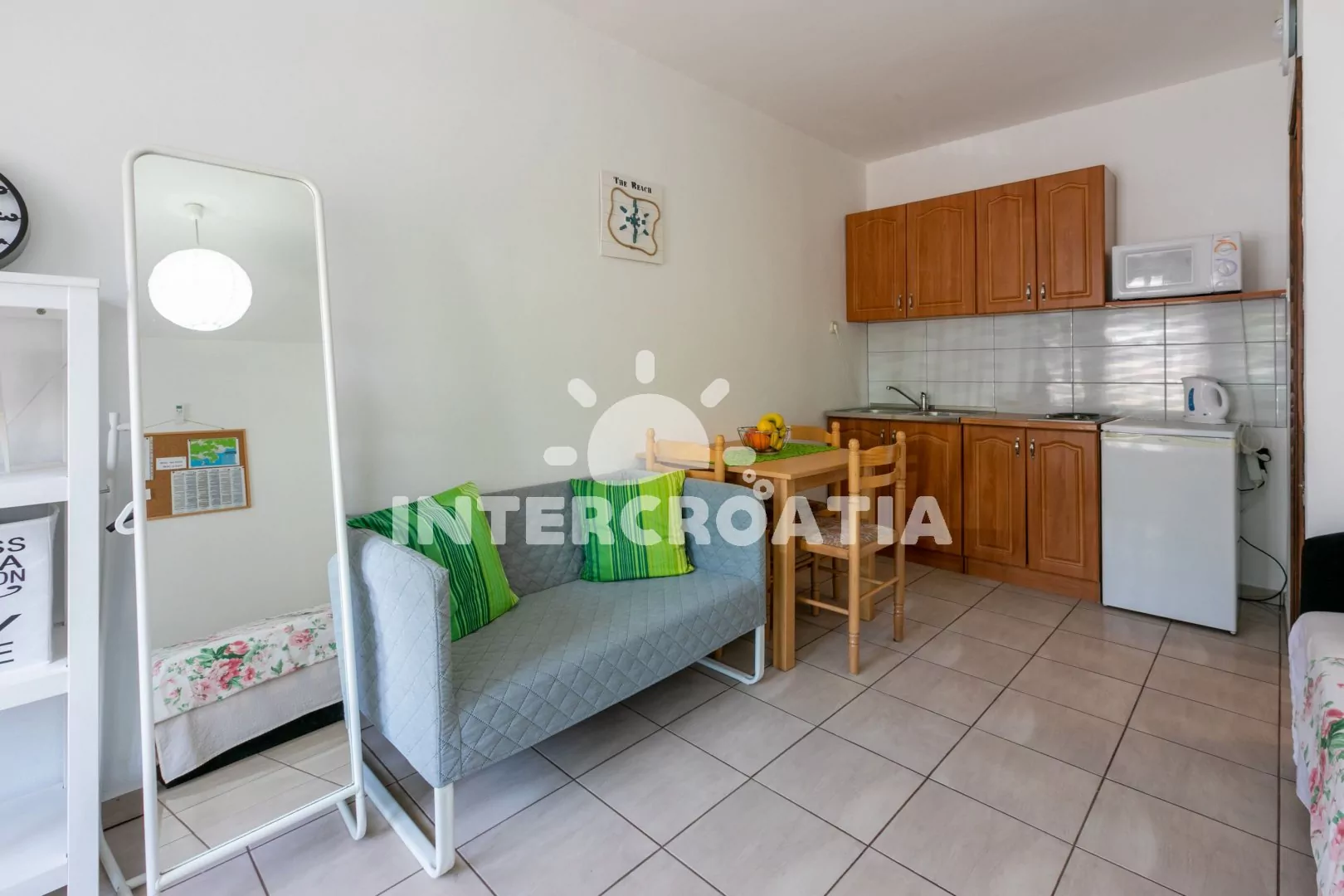 Útulný apartmán typu studio s balkonem, nacházející se v přízemí. Vstup, obývací pokoj s jídelním stolem pro 2 osoby, dvoulůžkem a televizí se satelitem. Kuchyňská linka s dvouplotýnkovým vařičem,…