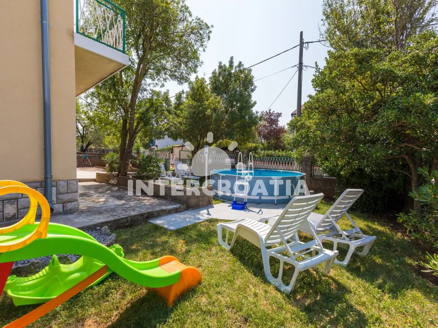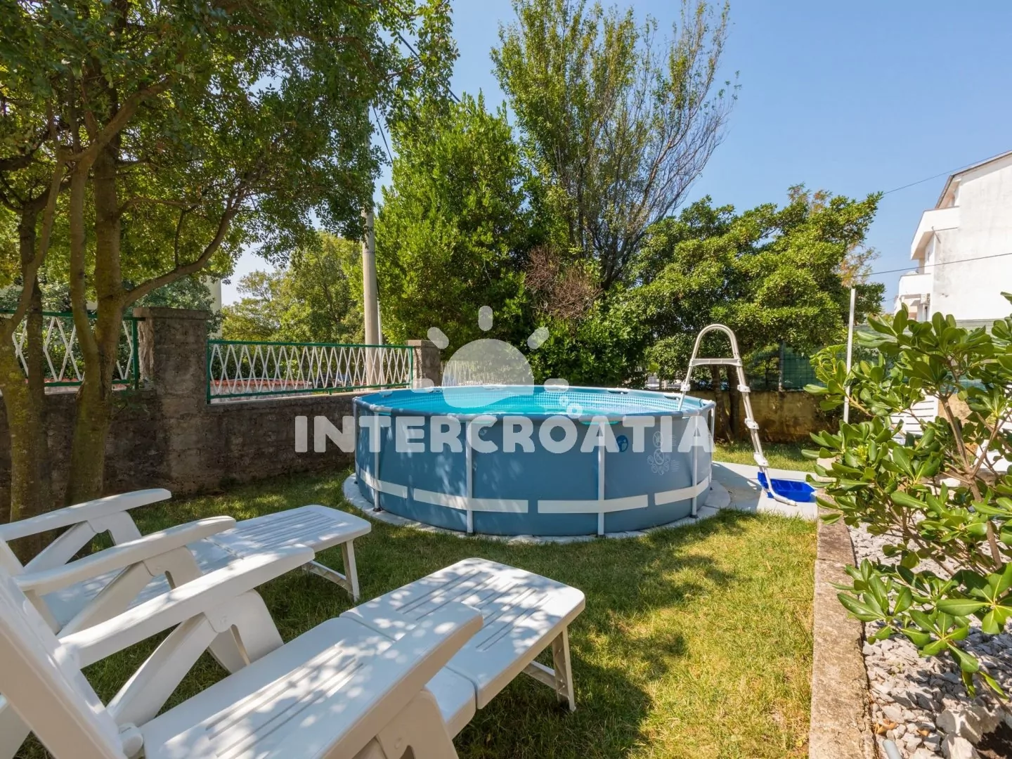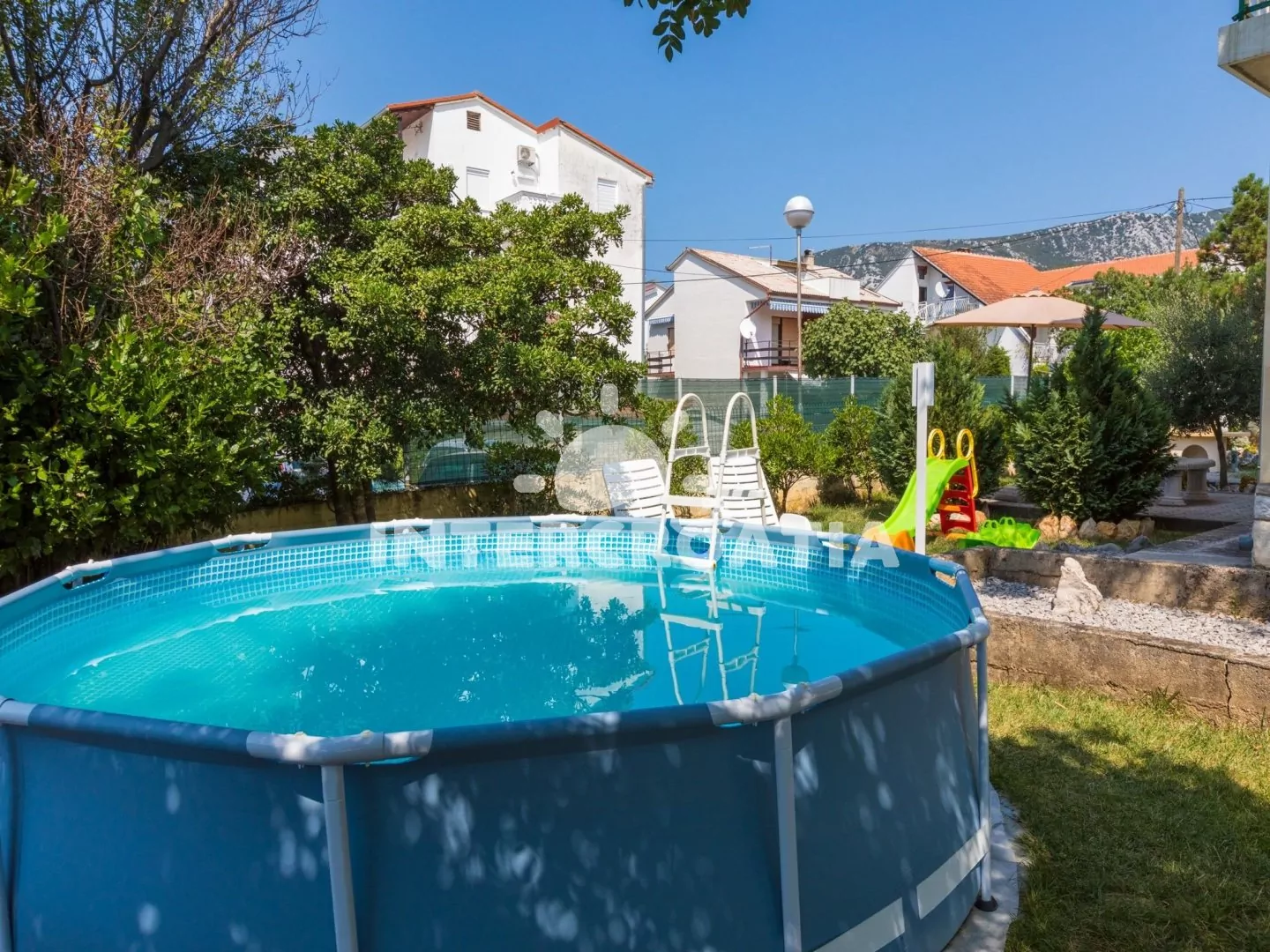 Dům s dvěma apartmány, bazénem, zahrádkou a terasou s venkovním posezením se nachází v klidné lokalitě. Parkovací místa u domu.
