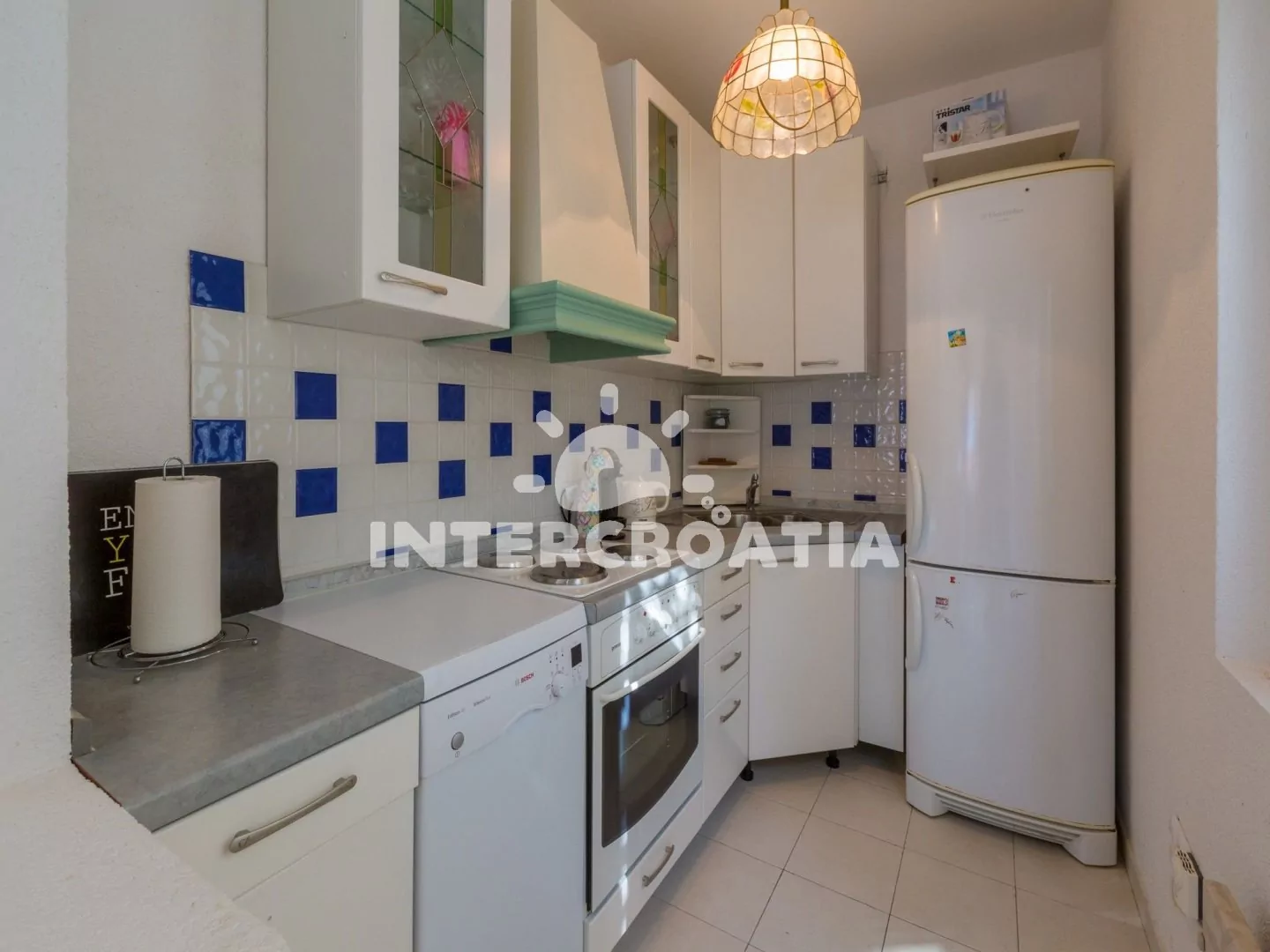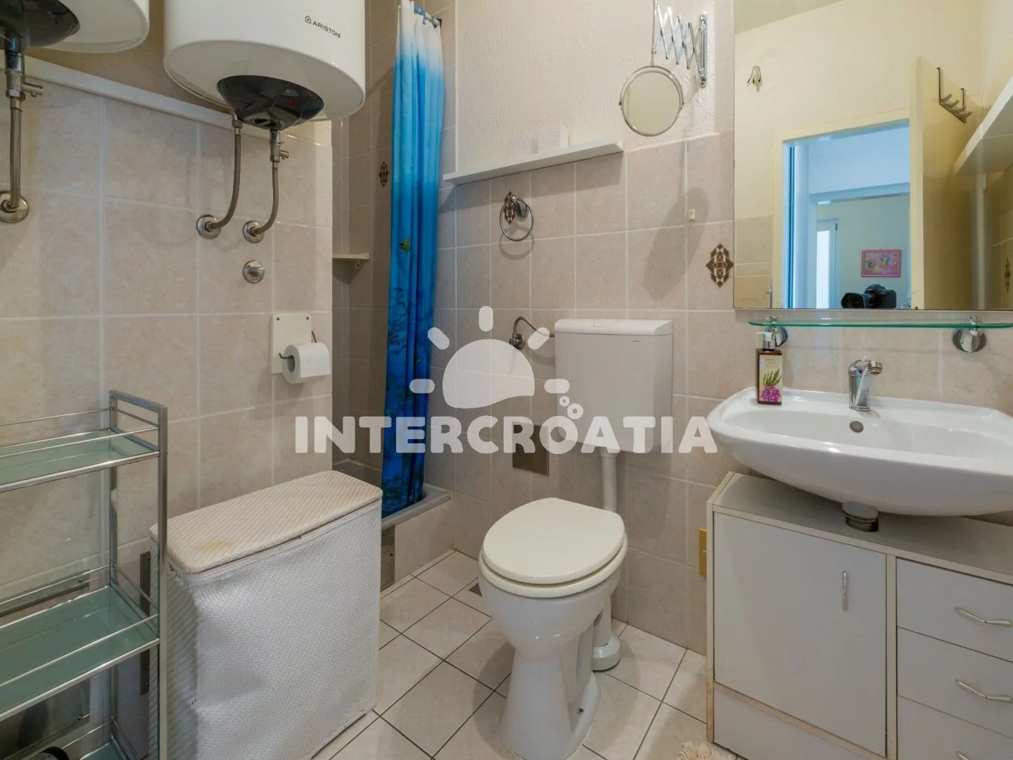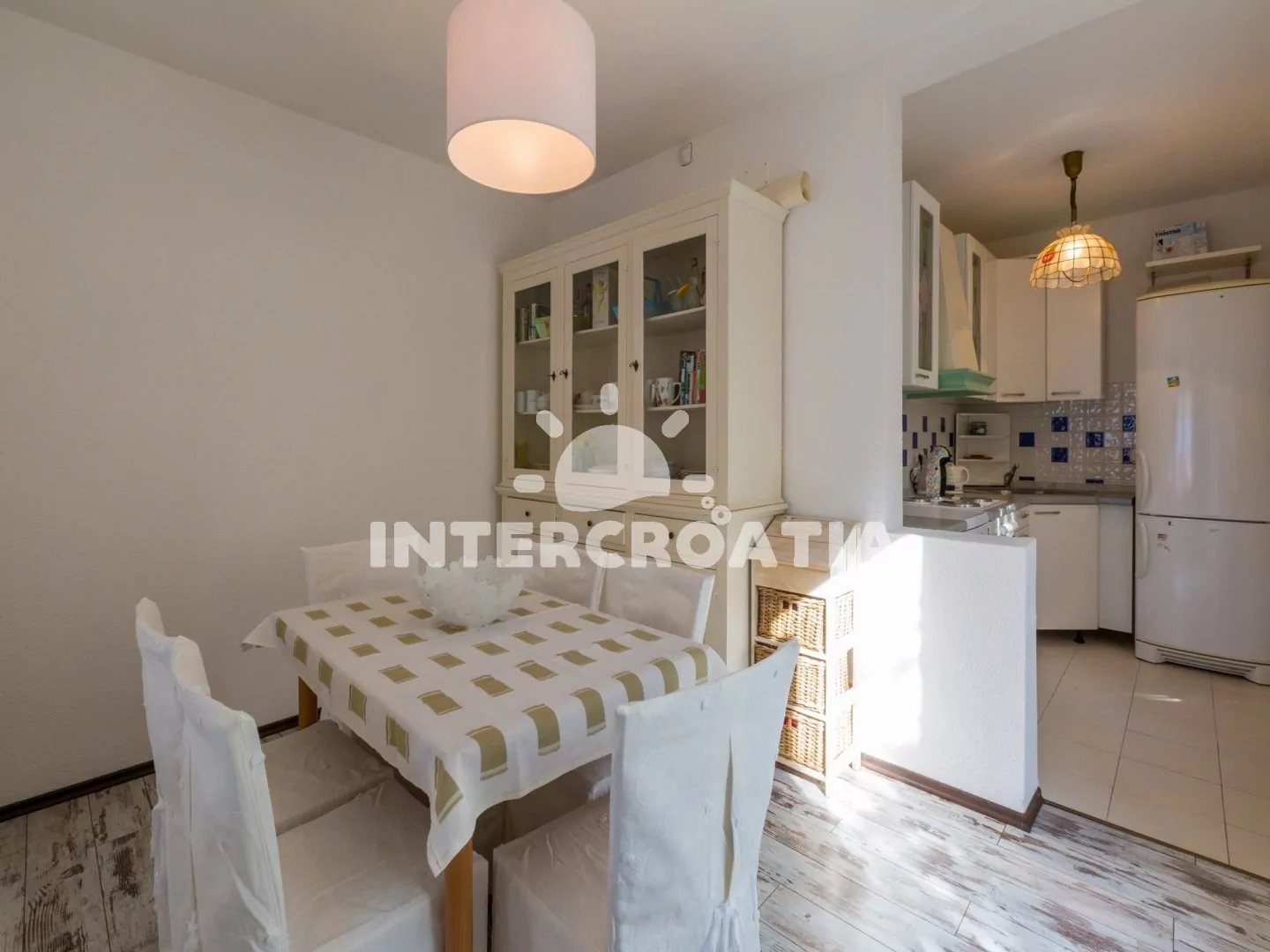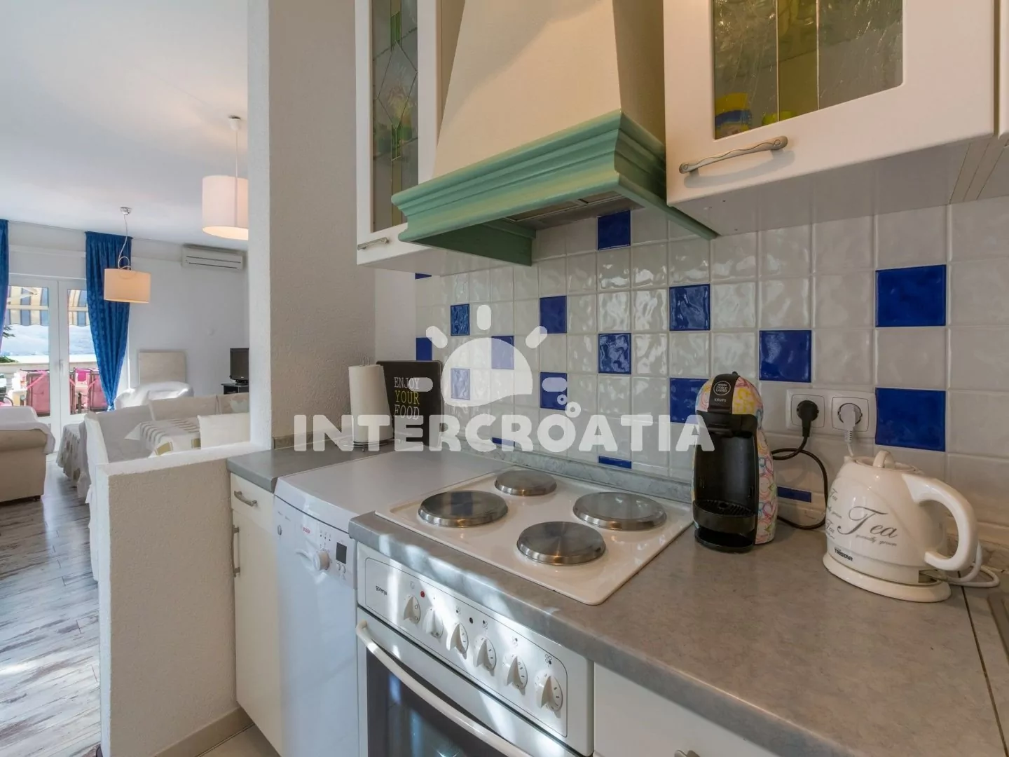 Hezký apartmán (80 m2) v druhém patře vily s vlastní terasou a výhledem na moře je vhodný až pro 6 osob. Obývací pokoj je spojený s kuchyní. Kuchyňská linka je vybavena sporákem, digestoří, troubou,…