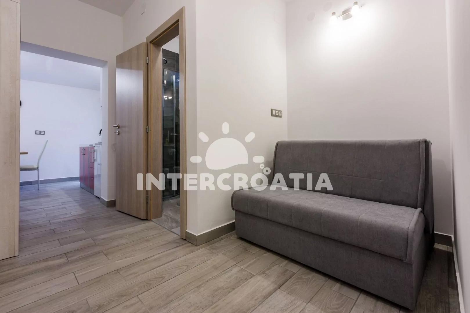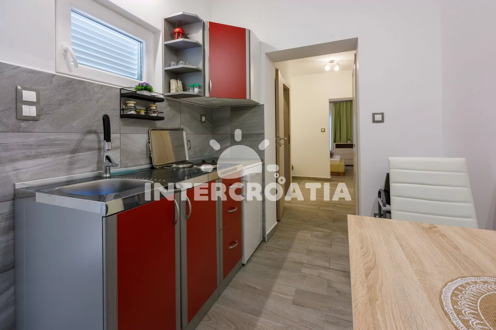 Vkusně zařízený apartmán typu studio (22 m2), s terasou a venkovním posezením. Apartmán se nachází v přízemí domu a je vhodný pro 2 až 3 osoby. Obývací místnost je spojena s kuchyní. Kuchyňská linka… Více informací